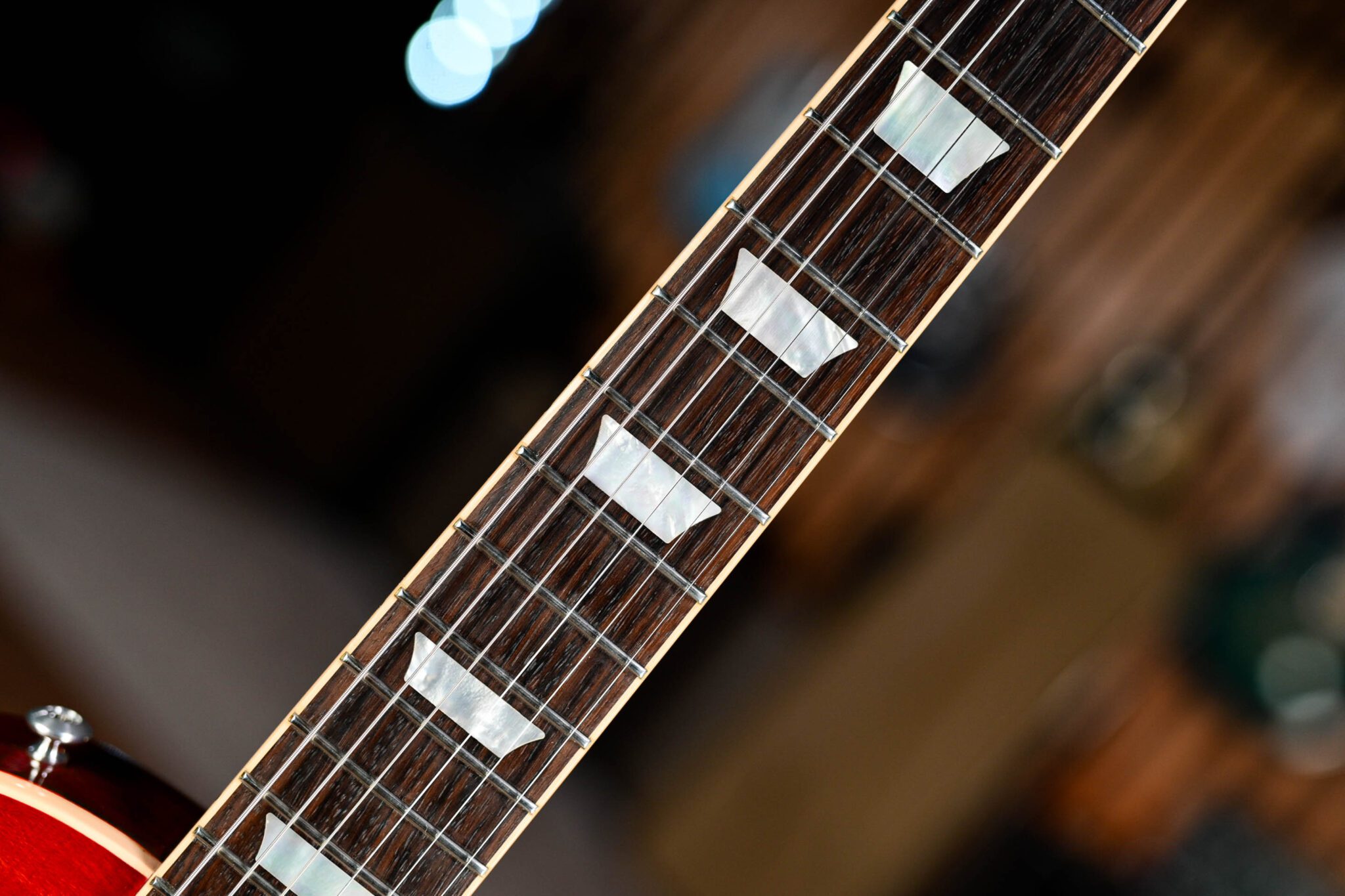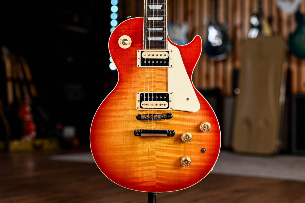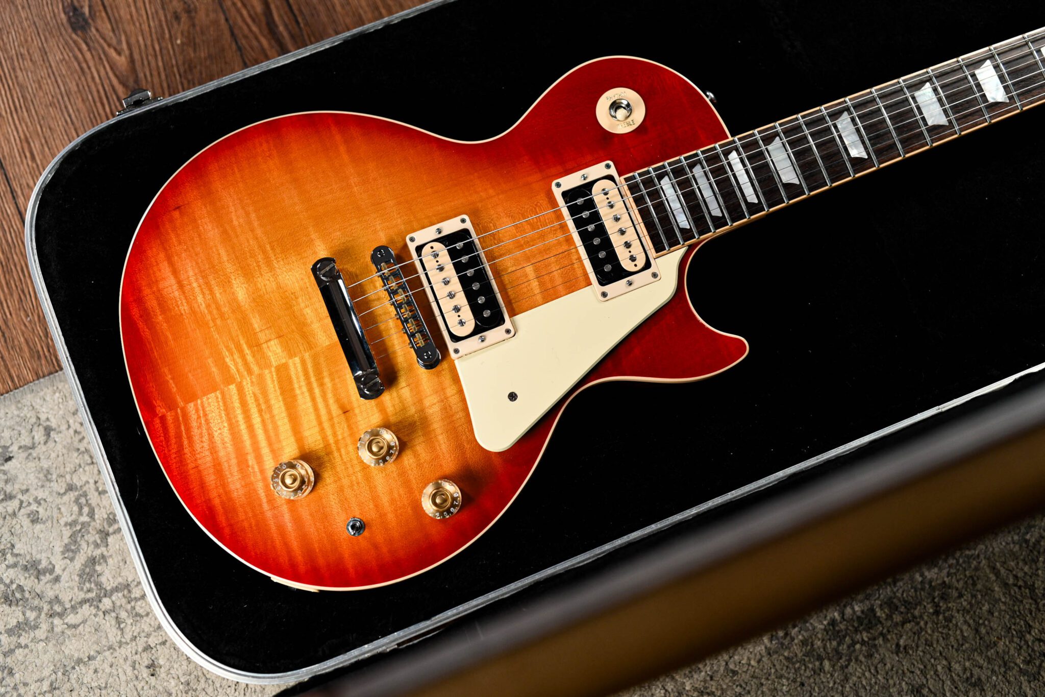 With a mahogany body, set mahogany neck and of cause that maple top and a pair of Gibson humbuckers this has the baseline features we look for in a Les Paul. Beyond the classic attributes, it’s an instrument with a huge and lively tone with huge resonance and sustain! With the 15dB preamp boost at the flick of a switch, a boost in your solo tone and saturation is at your fingertips!