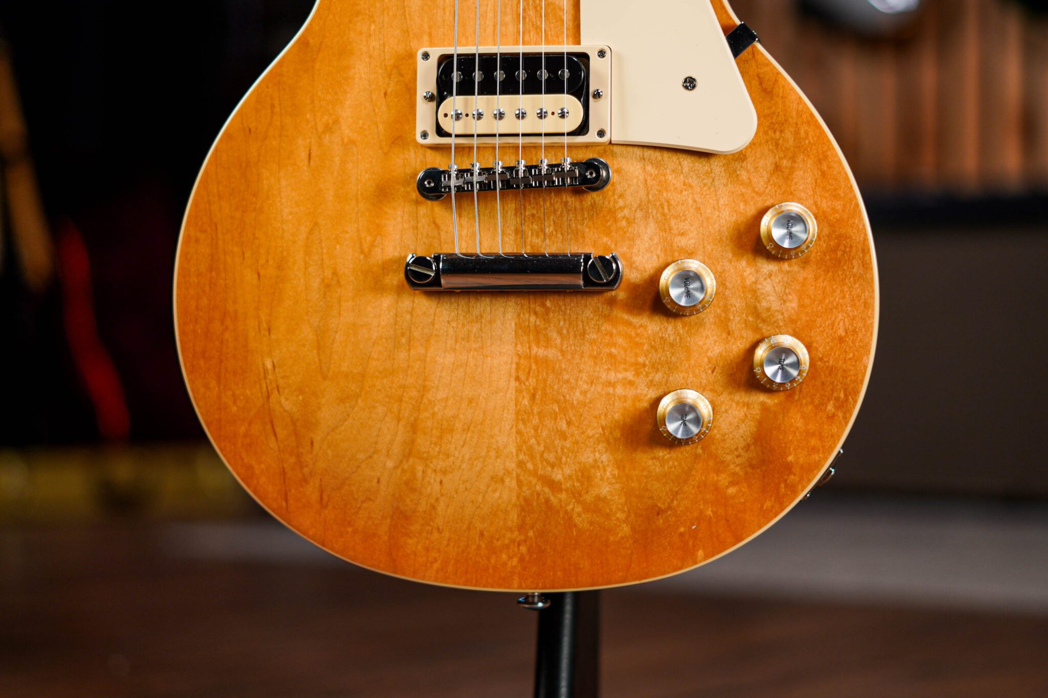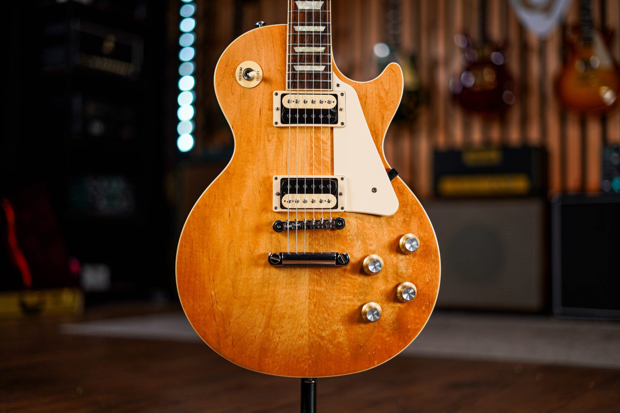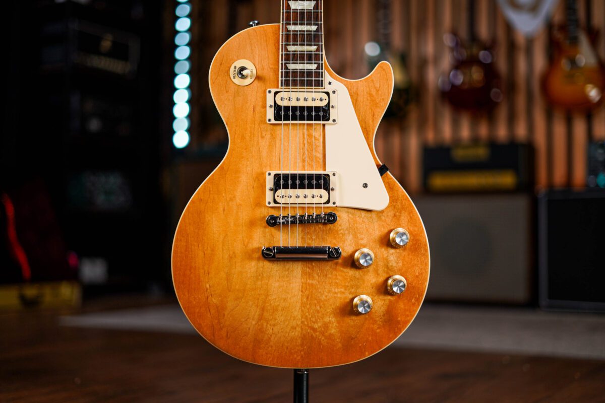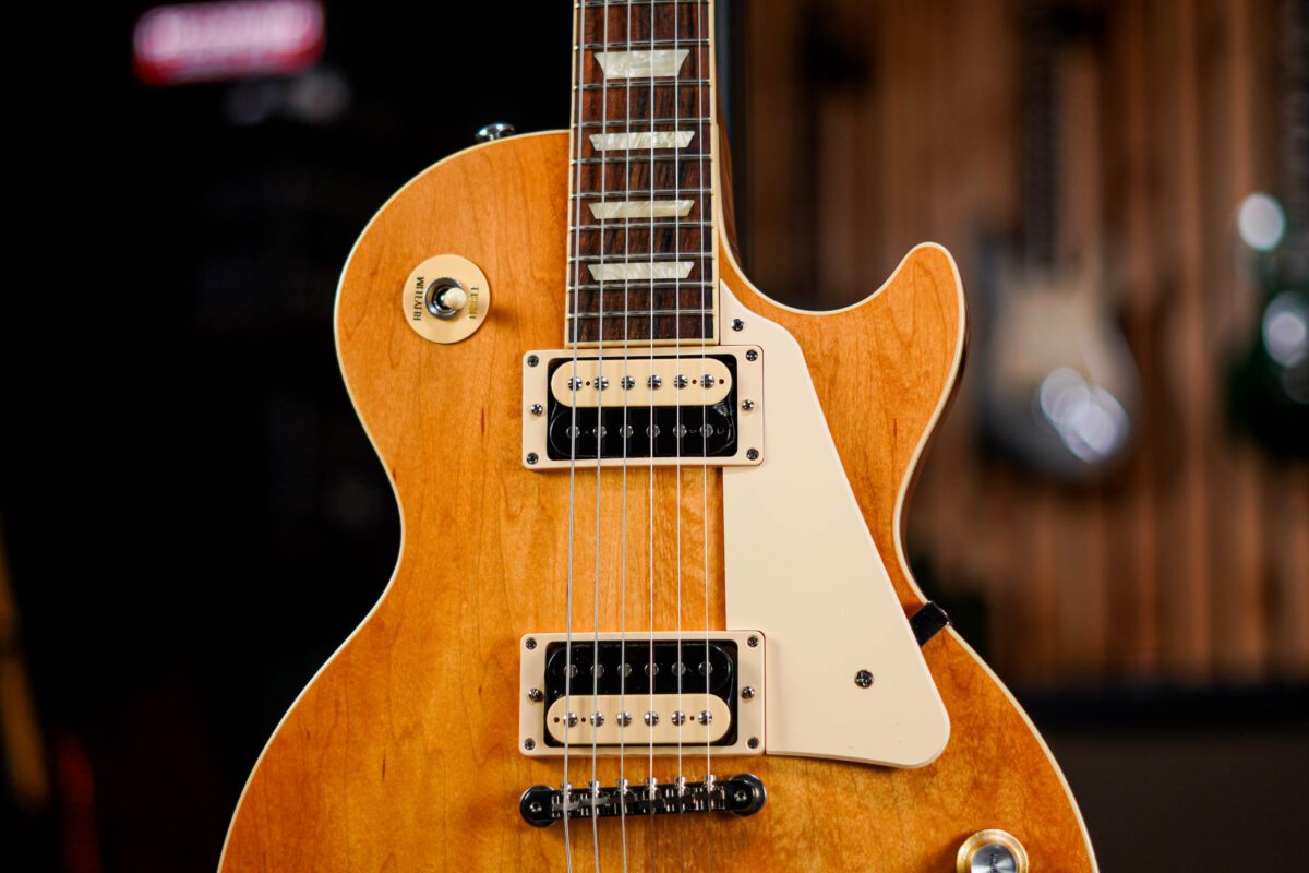 With classic mahogany body, set mahogany neck and of cause that maple top and a pair of powerful Gibson humbuckers, this has all the main components you would look for in a Les Paul. Beyond the classic features it’s an instrument with a huge and lively tone with great midrange and sustain, combined with the slim taper neck this a super-fast and inspirational guitar to play.