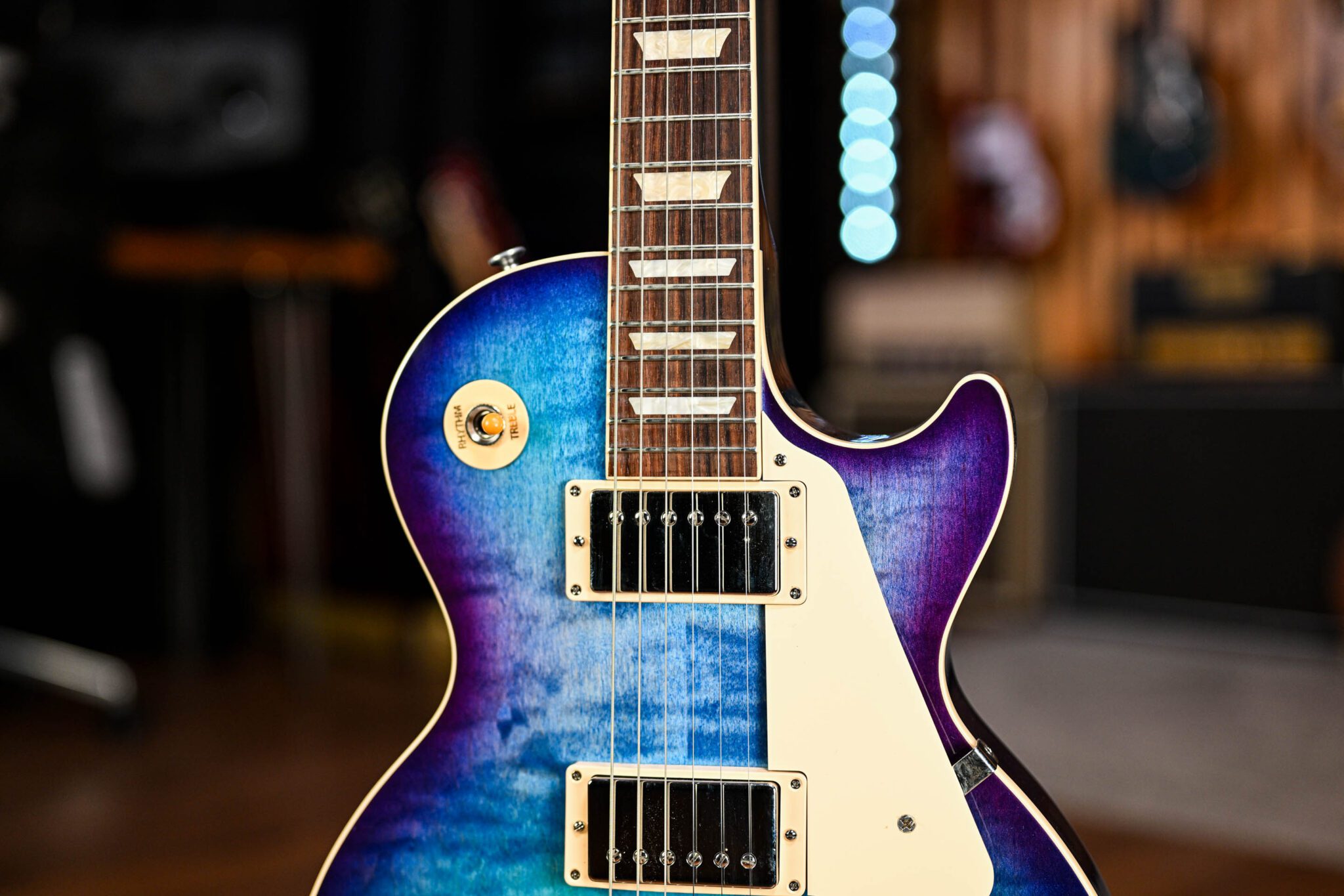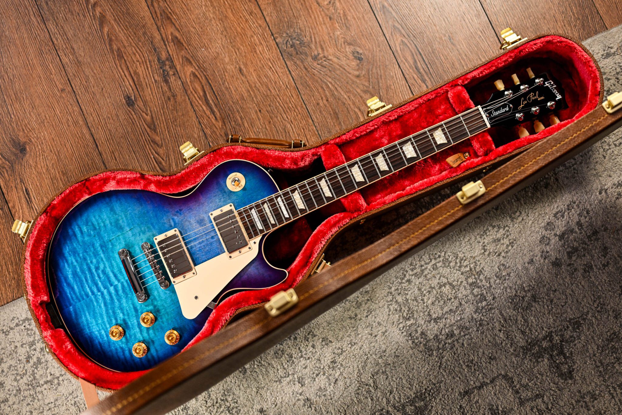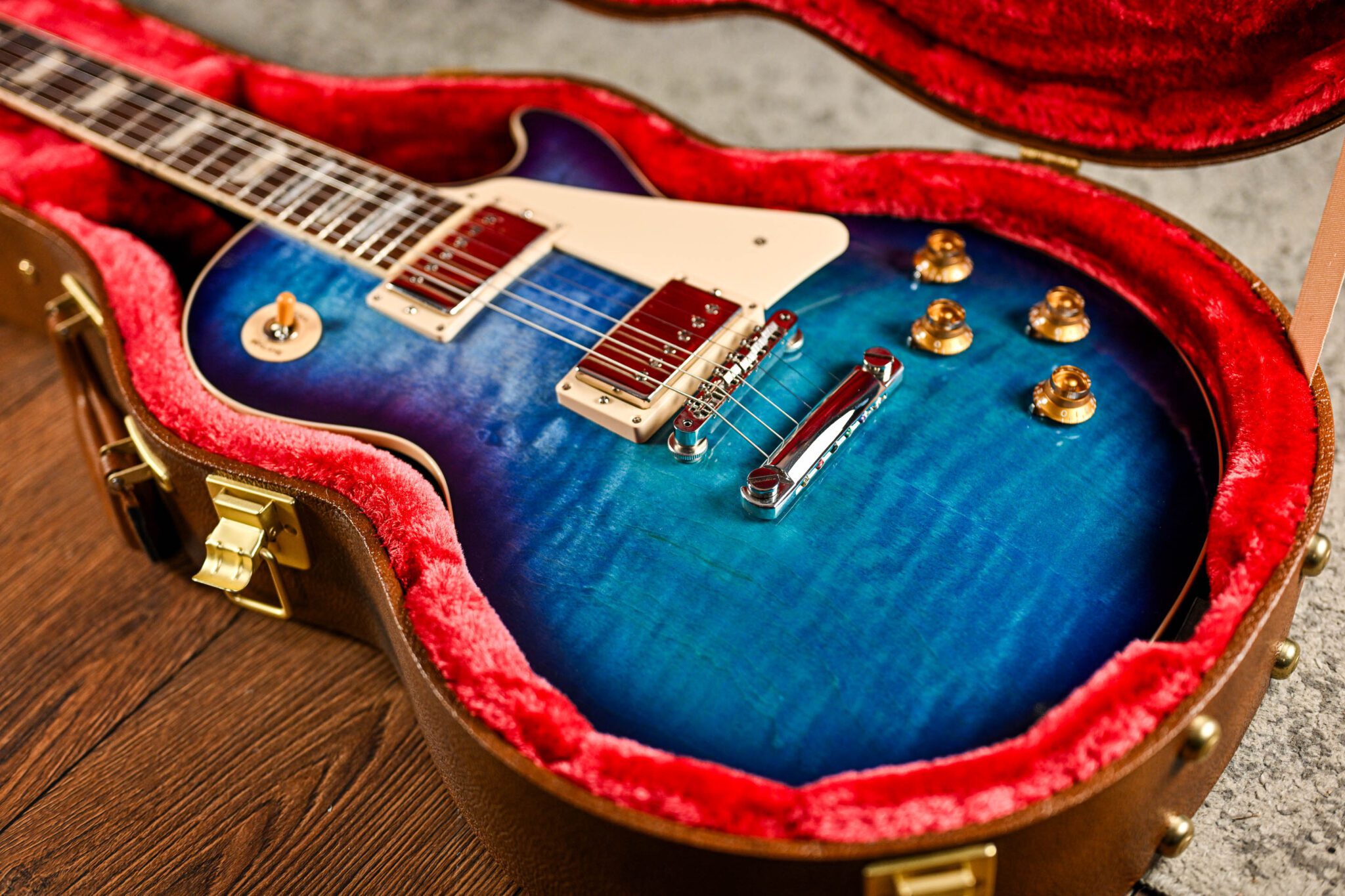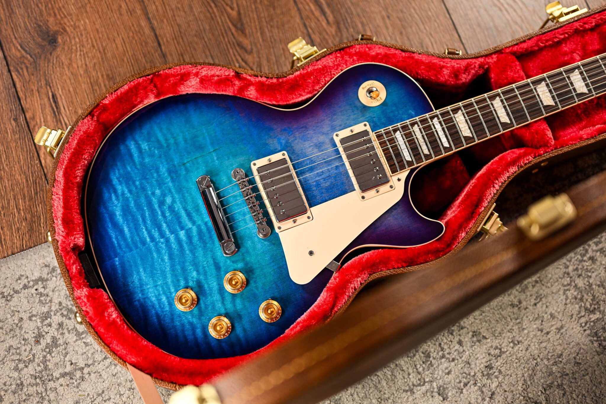 A rare treat indeed, a 50’s Les Paul Standard Figured Top in Blueberry Burst!