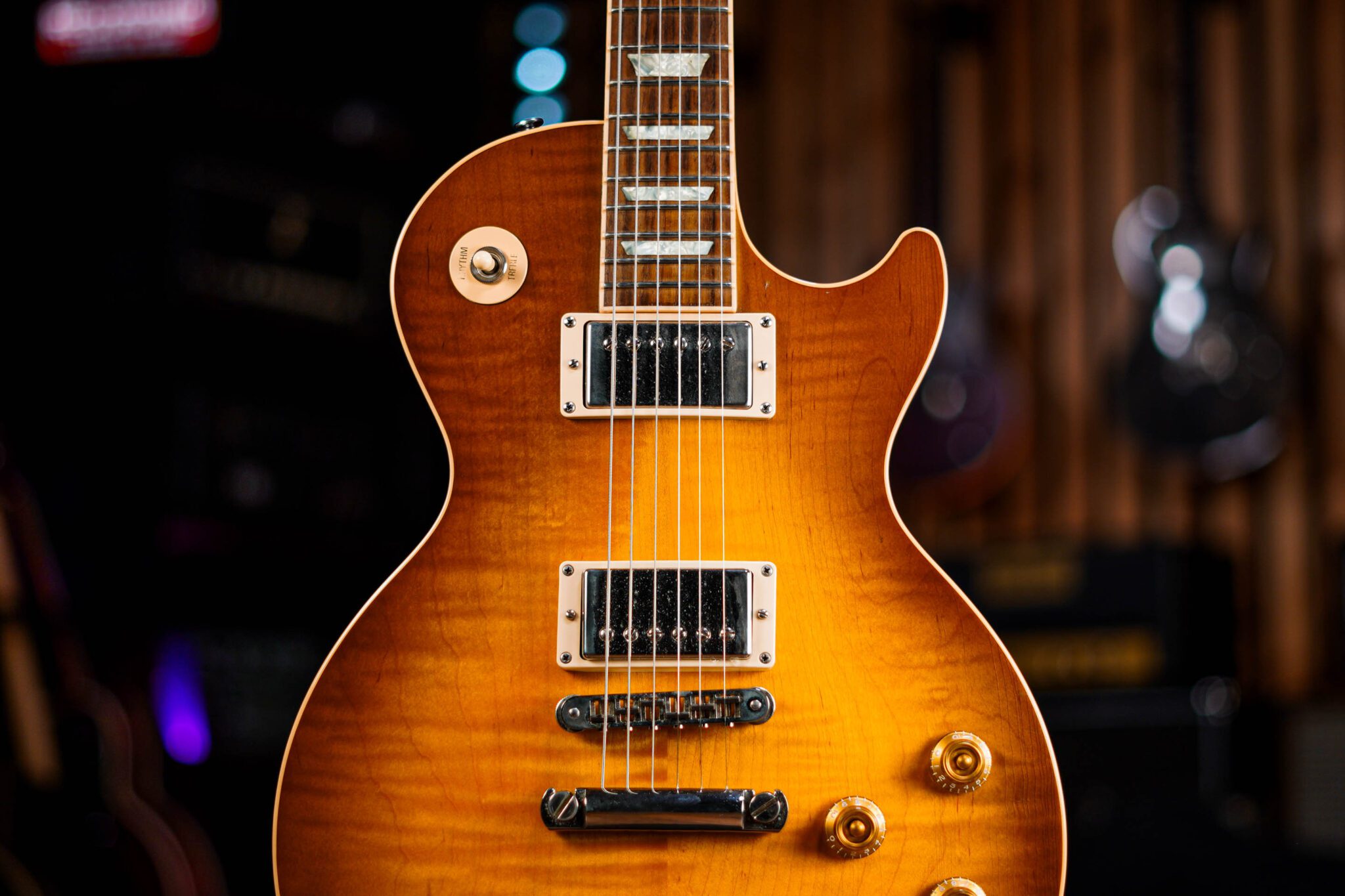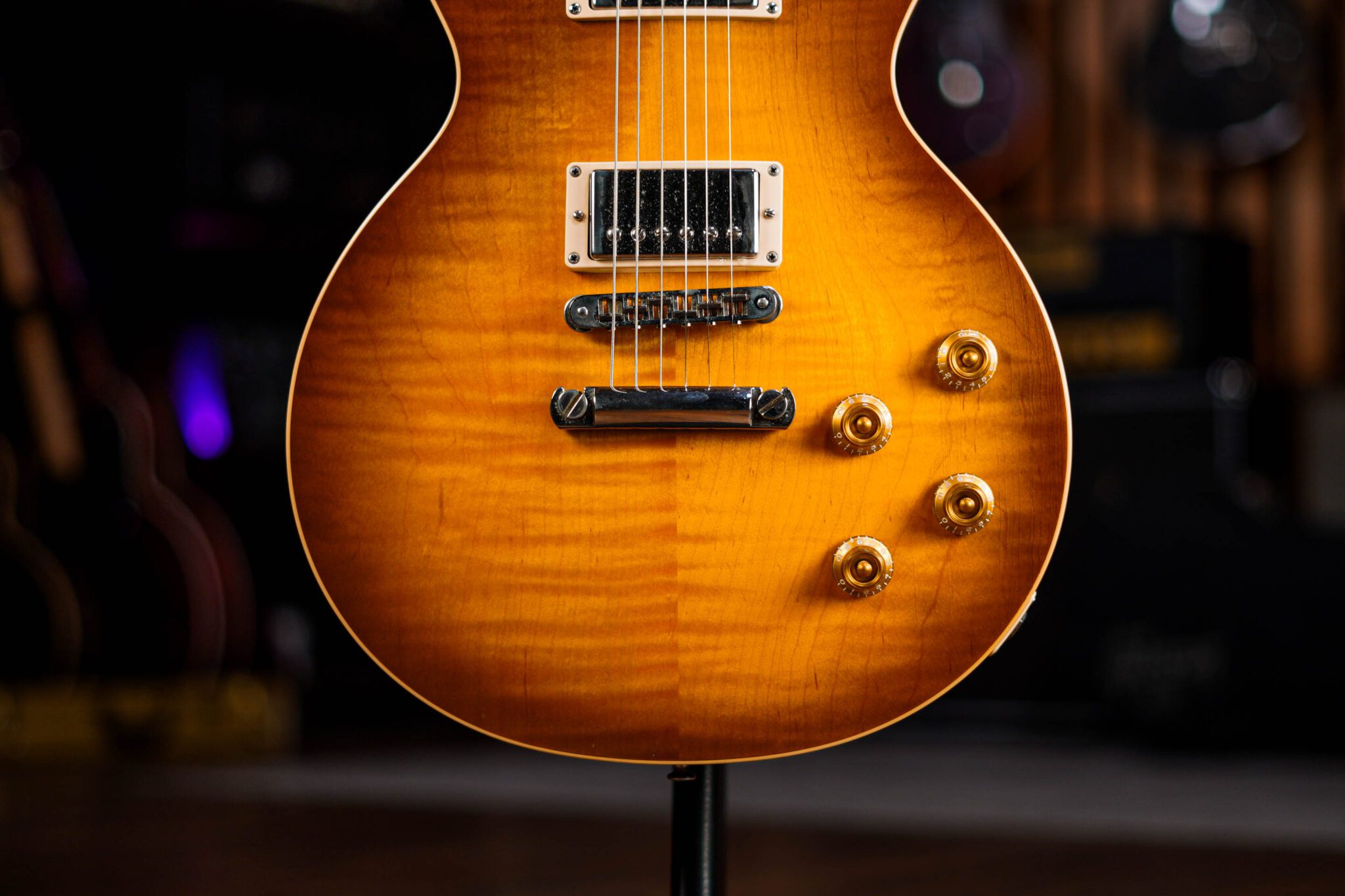 Built in one of the finest eras of Gibson, renowned for high quality woods, outstanding build quality and tone, this Les Paul represents the best of it. With a mahogany body and neck, rosewood board and powered by two vintage inspired Burstbucker humbucking pickups the guitar has an outstanding clarity while being able to produce a huge punch and sustain and we absolutely love it!