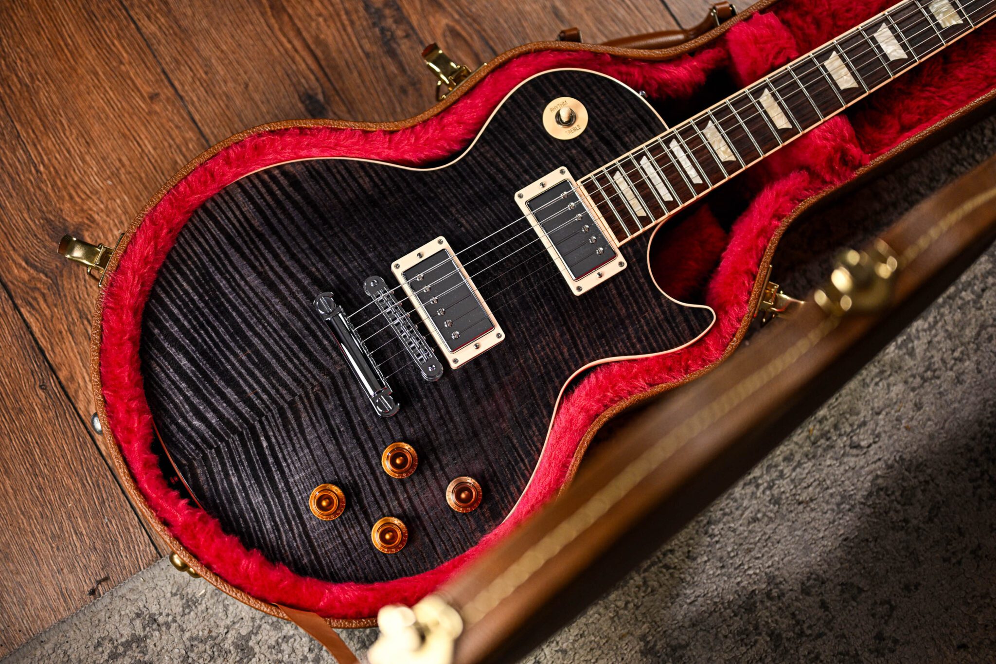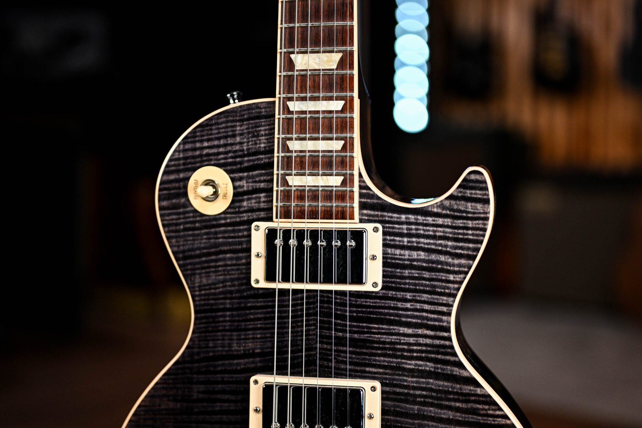 The core ingredients that make the Les Paul so legendary are fully represented in this Standard T, alongside some subtle modern updates ready for the modern player. Benefiting from a compound-radius rosewood fingerboard, AAA flame maple top, Burstbucker Pro pickups, that deliver a tone that is full while being bright alongside a mid-rich and singing sustain that just inspires you every time to pick up the guitar!