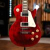 With this Gibson Les Paul Studio T in Cherry, all key components are present and correct; mahogany body, set mahogany neck and two powerful Gibson humbuckers all hand crafted in the USA. In its delicious Cherry nitrocellulose finish, the guitar looks totally stunning and without the binding has a totally Rock and Roll look and smooth playability. Sound wise it has all the punch and midrange we expect from a Les Paul and is a classic in its own right!