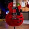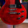 All the key components are here; solid mahogany body, set mahogany neck and two powerful Gibson Humbuckers all hand crafted in the USA. In its nitrocellulose Wine Red finish this guitar looks totally stunning and without the binding has a full-on Rock and Roll look. Sound wise it has all the punch and midrange we expect from a Les Paul with the added playing benefit of longer frets due to the removal of binding making this is a total players guitar that looks and sounds incredible!