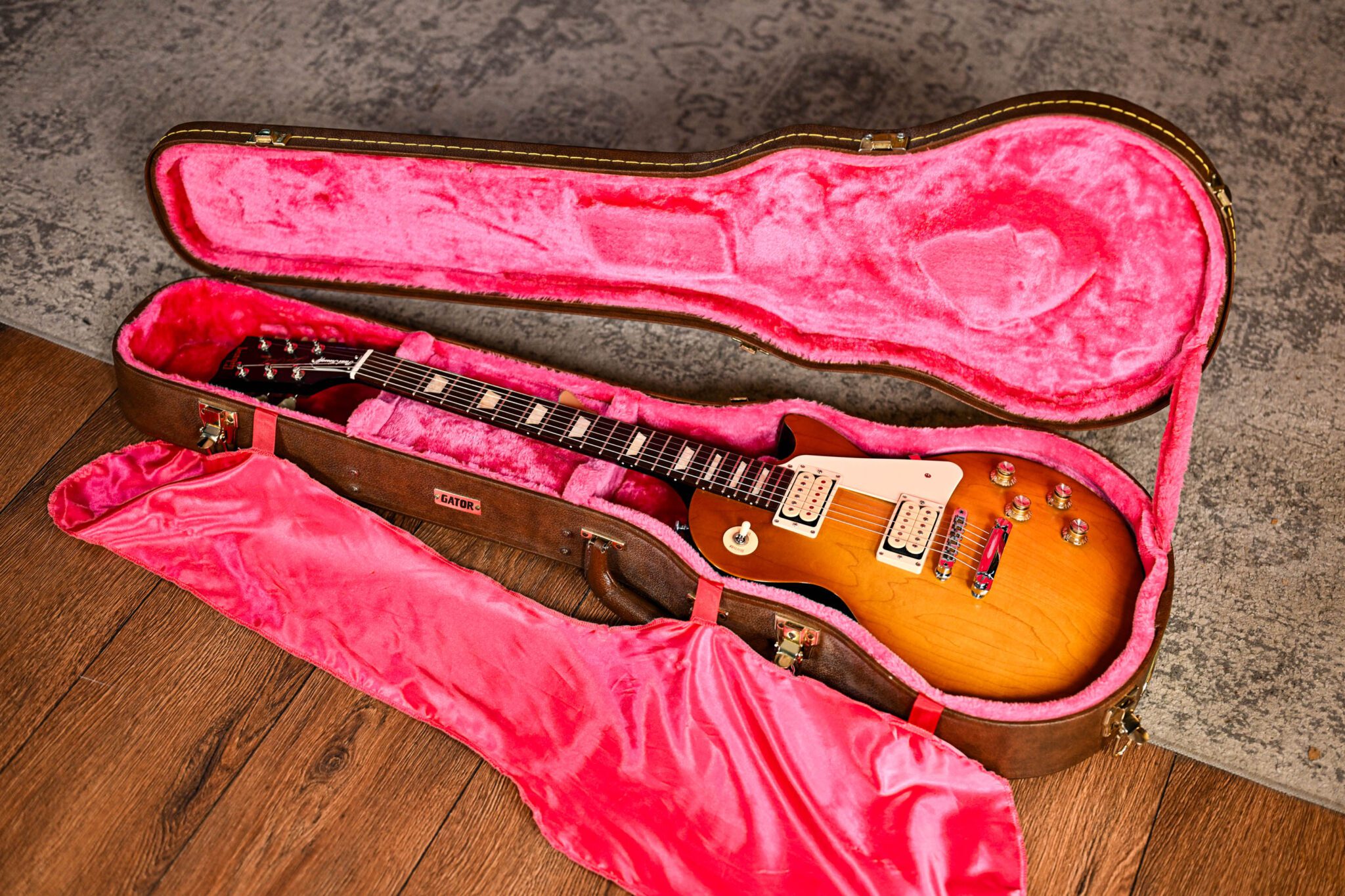 Featuring a maple top, mahogany body, set neck, rosewood fretboard and a satin finish, this is a vintage-style Les Paul with huge character and style. With a pair of upgraded DiMarzio 36th Anniversary PAF pickups and the classic wood combination we have a guitar that delivers legendary Les Paul tone and punch you look for. Included is a Signed Andy Powell from Wishbone Ash rear cover and concert ticket from 2006 in case alongside a Paul Kossoff truss rod cover (easily changed for a standard one should you wish..) Why you ask? Why not!