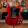 A total classic since its arrival in 1960 (when called a Les Paul…), the Gibson SG has a been a go to guitar for those looking for mid rich rock and blues tones with unlimited fret access for 60 years!