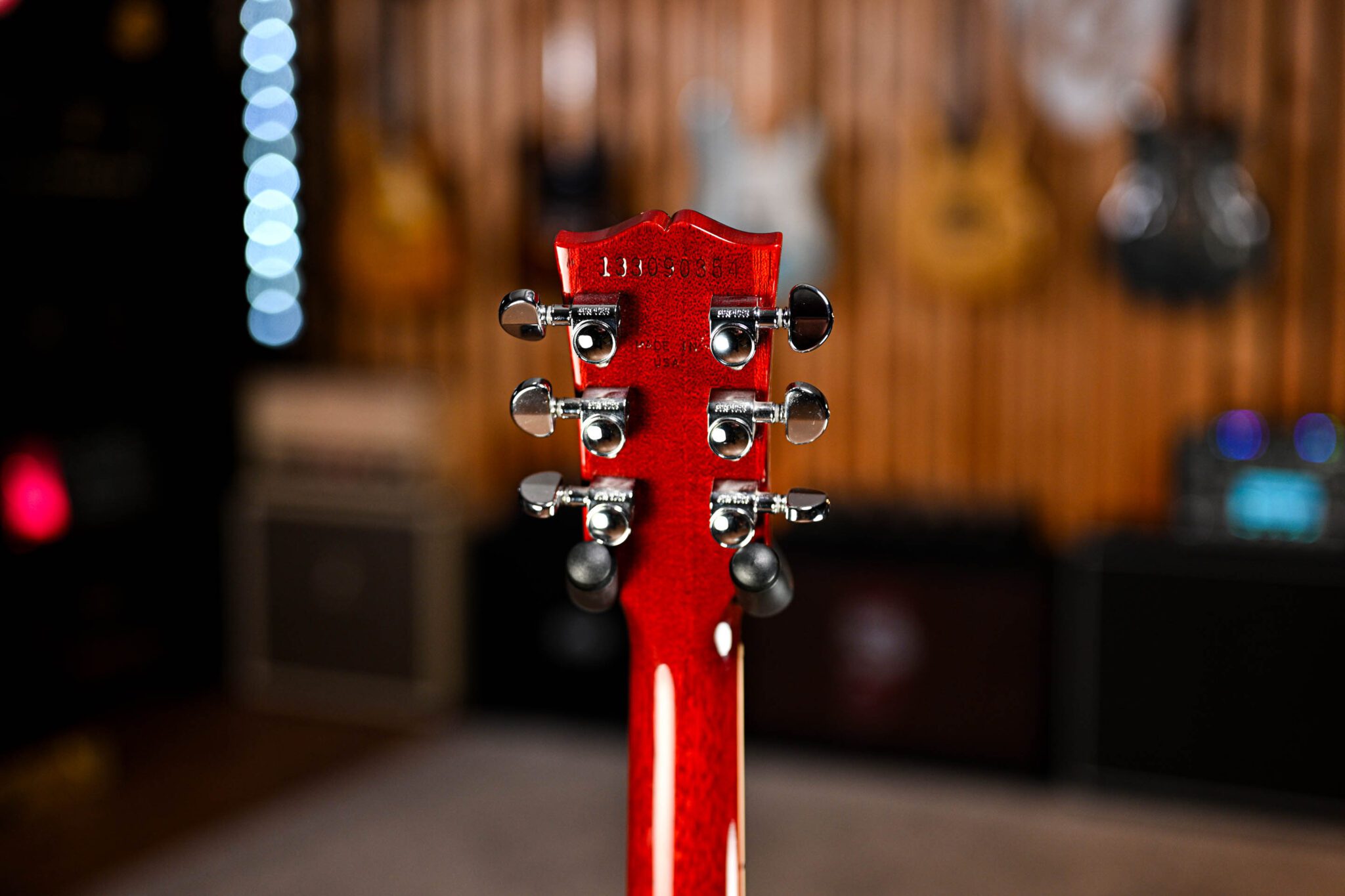 What we have here is a stunning example of this classic guitar, set up and ready to rock. With its solid mahogany body and neck, rosewood fretboard and two Gibson humbuckers this is a full fat powerhouse of a guitar that we absolutely love. Put this thing through a cranked amp and you will soon know what we are talking about.
