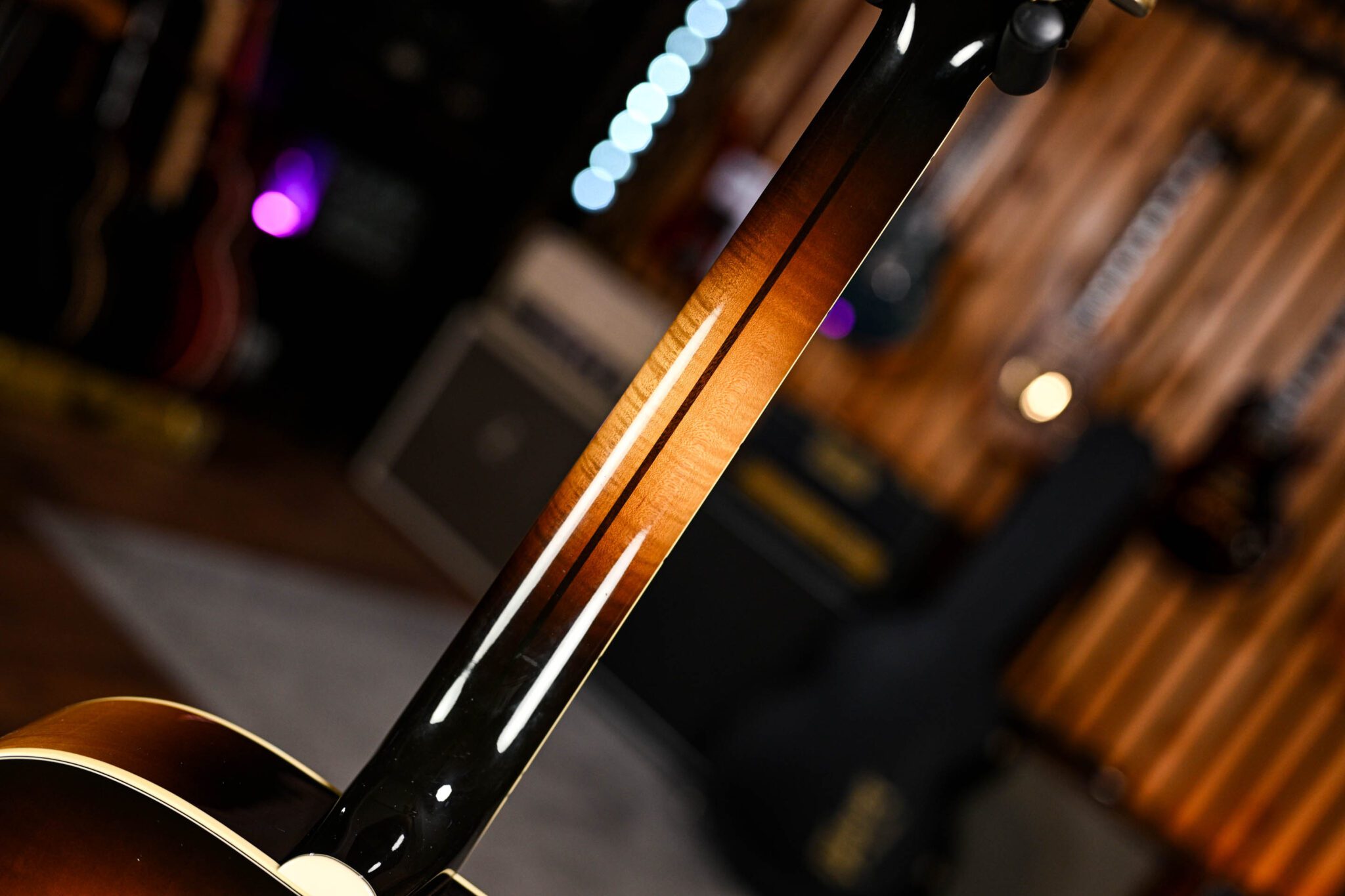 One of the most renowned acoustic guitars of all time, since its introduction in 1937 the SJ-200 has been seen in the hands of some of the most legendary guitarists in the world, its bright sound is unmistakable either acoustically or through a PA via the excellent LR Baggs pickup system. Due to the maple/spruce construction and jumbo body this is a guitar that has both brightness and low end with a projection no other acoustic guitar can match. Adorned with a flame maple back and sides, stunning spruce top, mother-of-pearl graduated crowns, multi ply binding and outstanding build quality coming out of the Gibson factory.