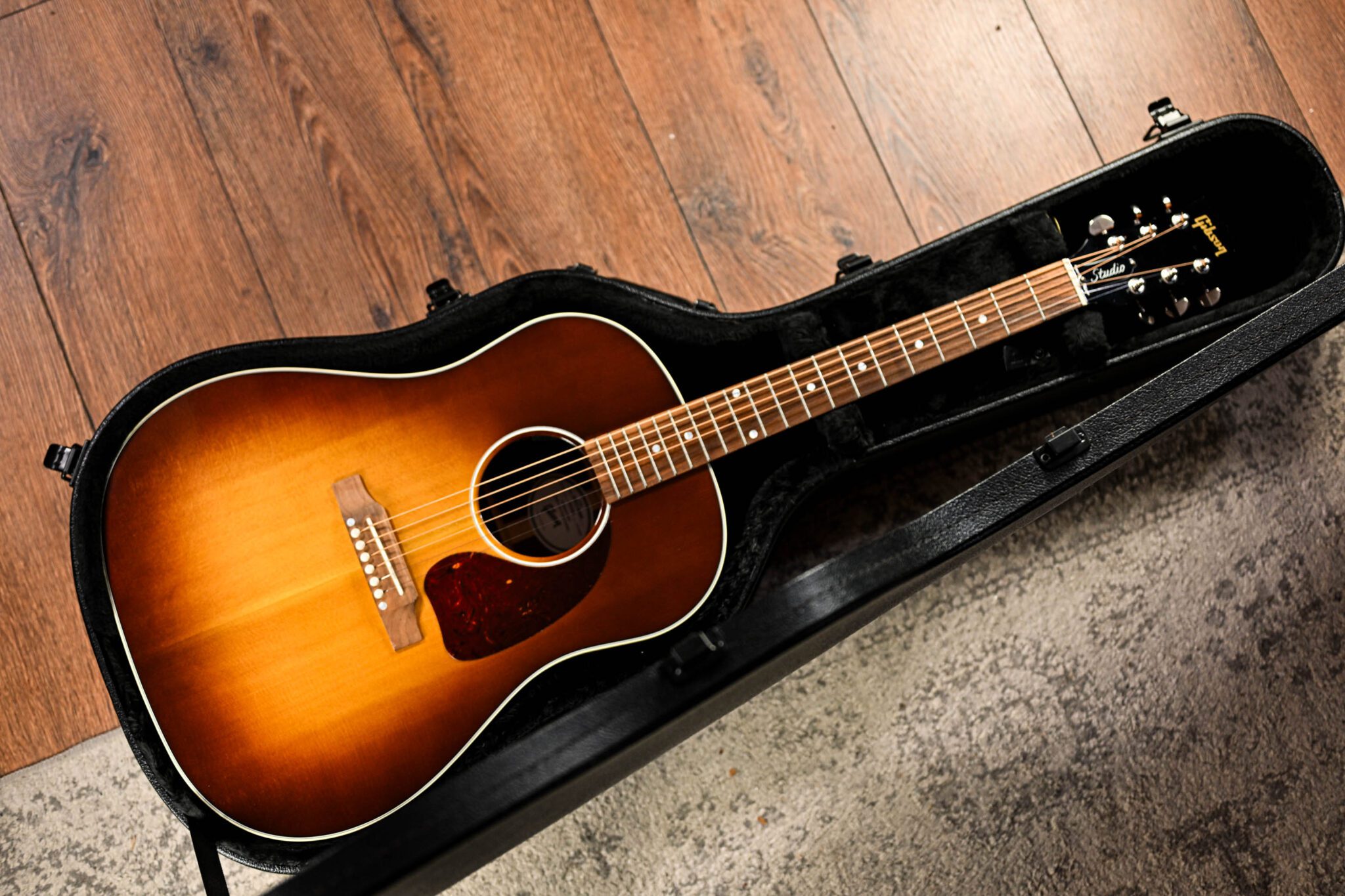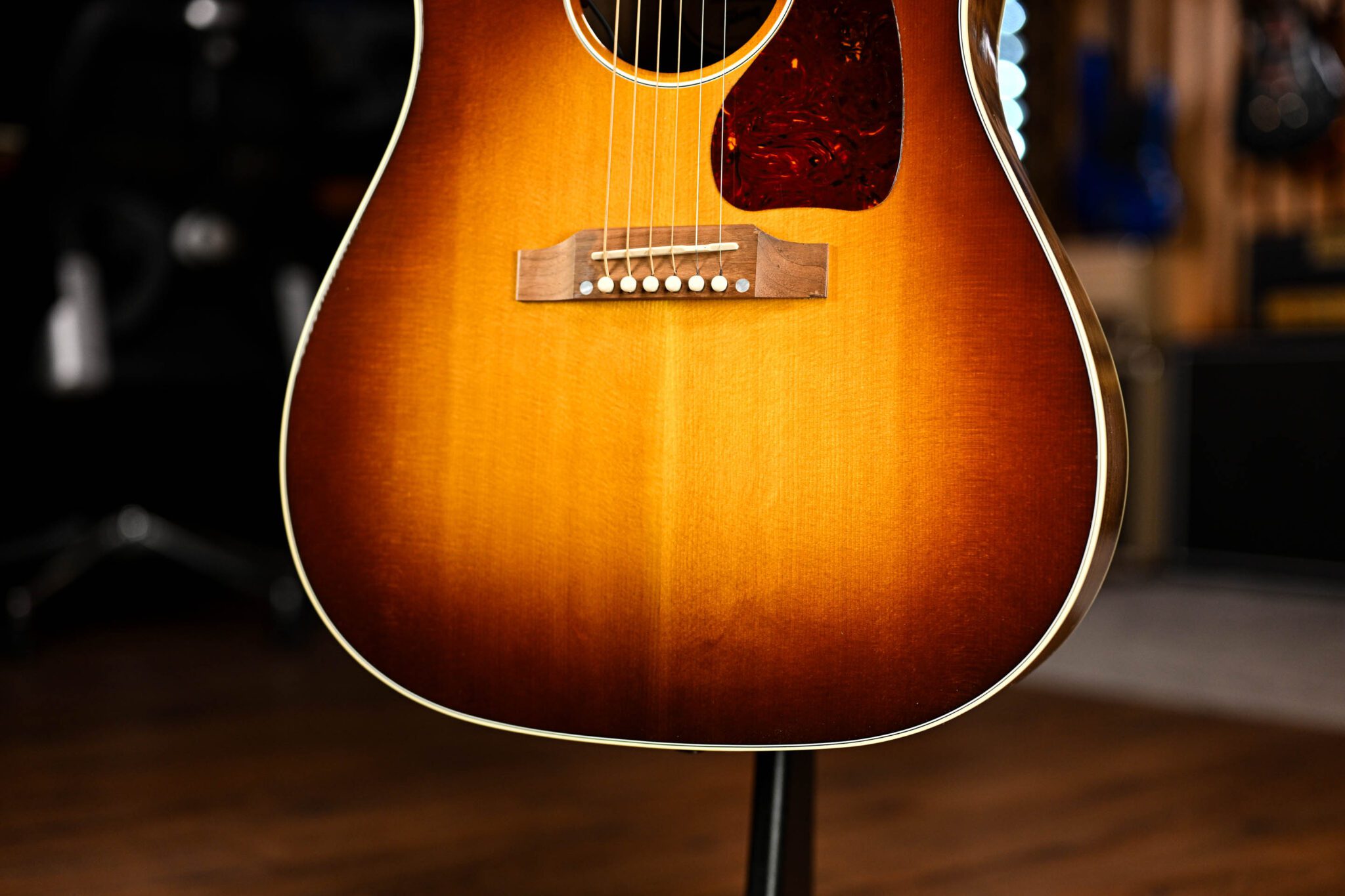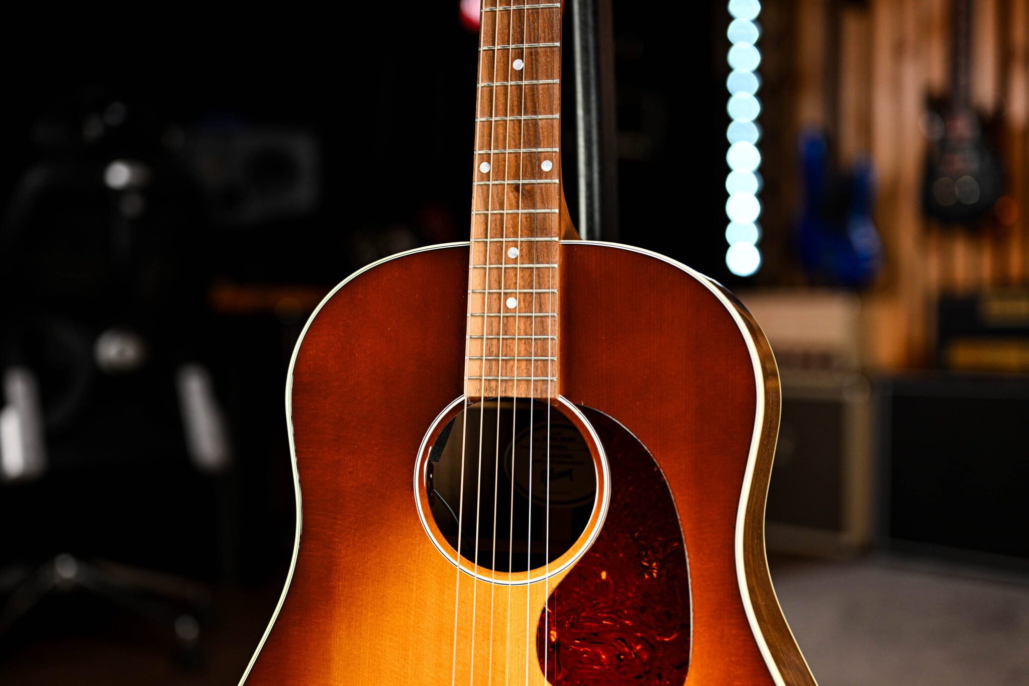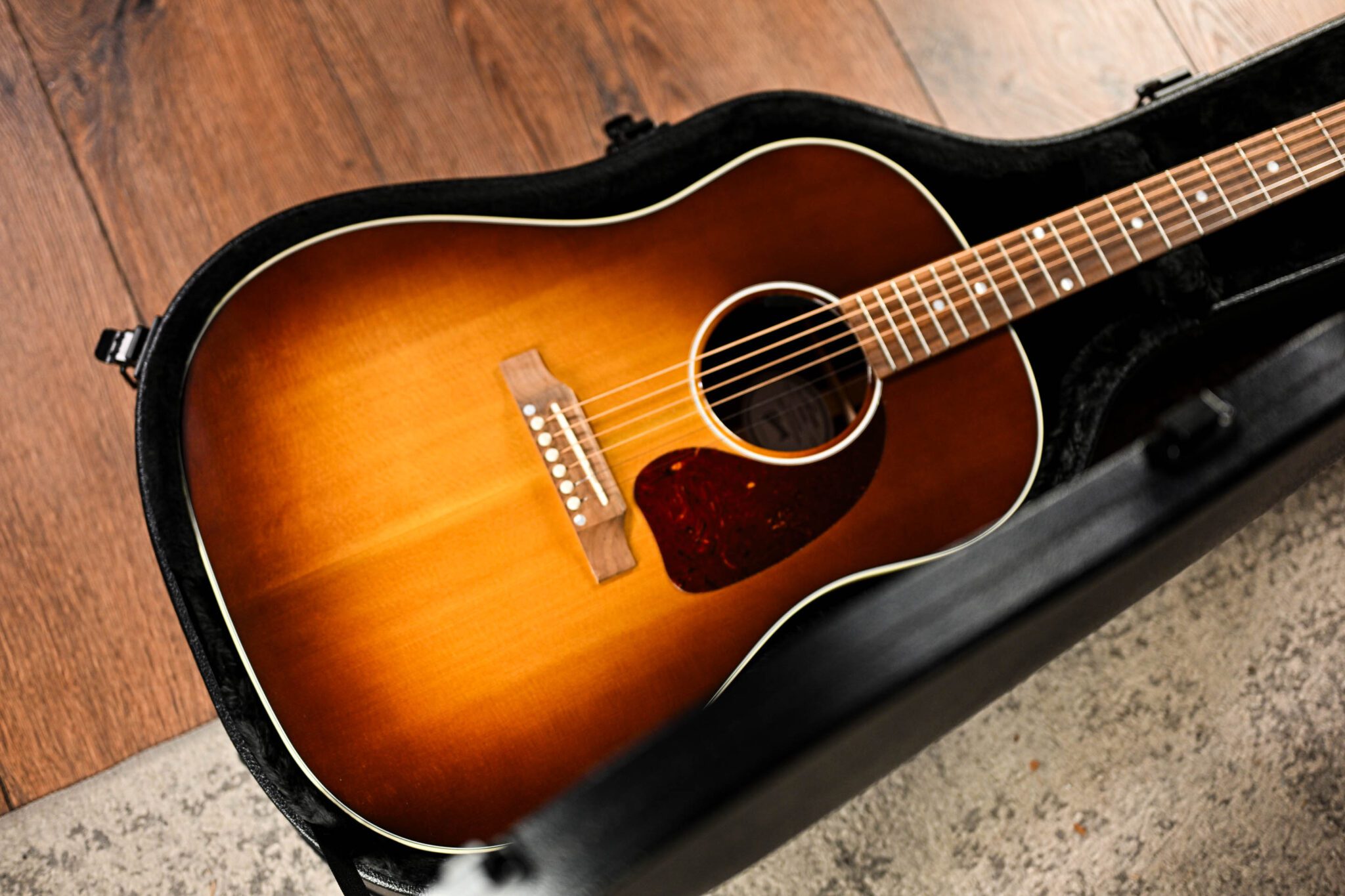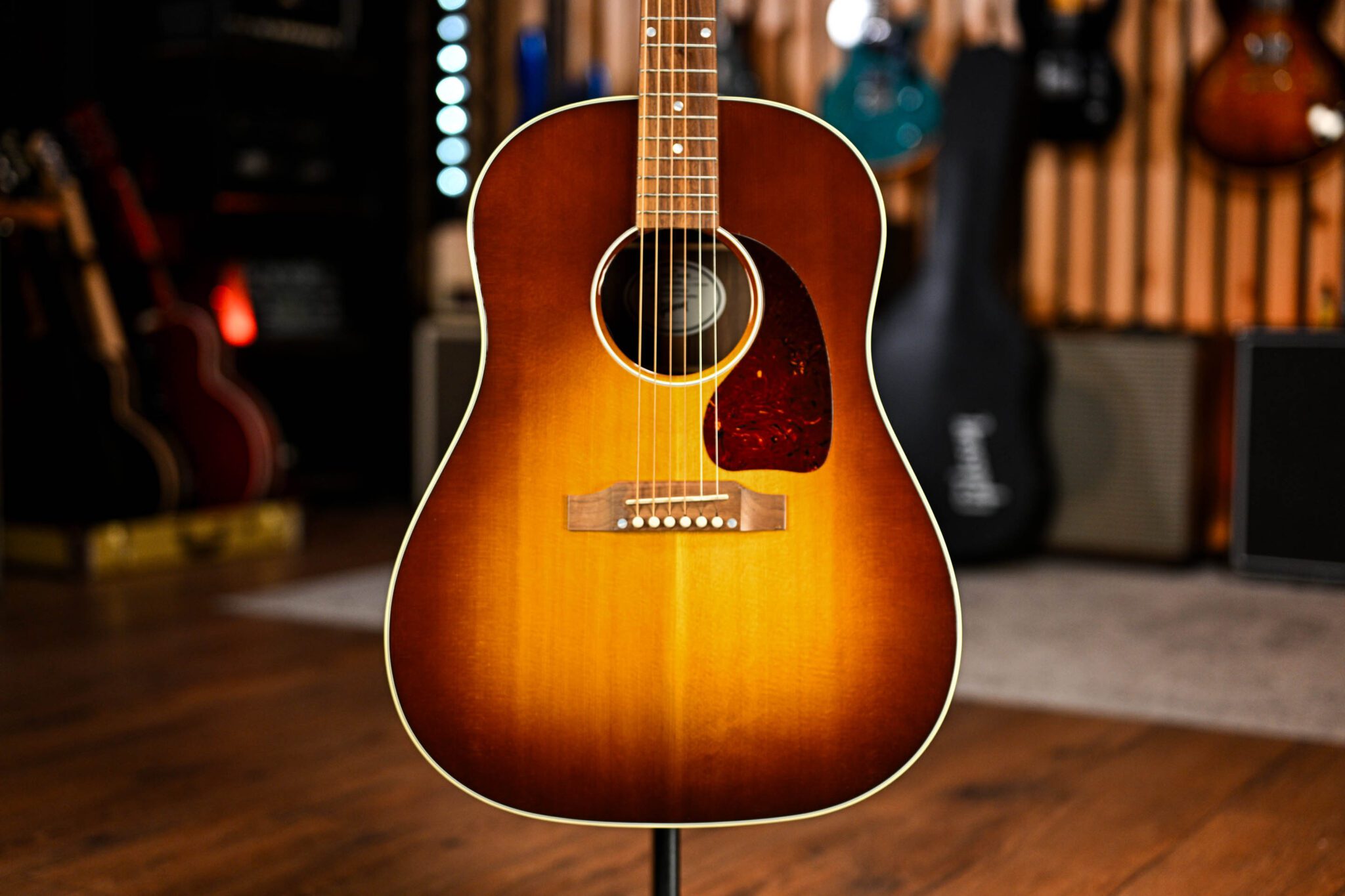 The Gibson J-45 is one of the most iconic acoustic guitars of all time and presented here in studio format. Since its release back in 1942, it has developed a reputation as the finest workhorse acoustic around, with its full, rich tone and effortless playability it’s easy to understand why. It features walnut back and sides and fuses it with the tonal quality of Sitka Spruce. The Mahogany Slim Taper neck is super comfortable and great for both bold chordal work and subtle fingerstyle playing and sure you can tell it’s one of our favourites!