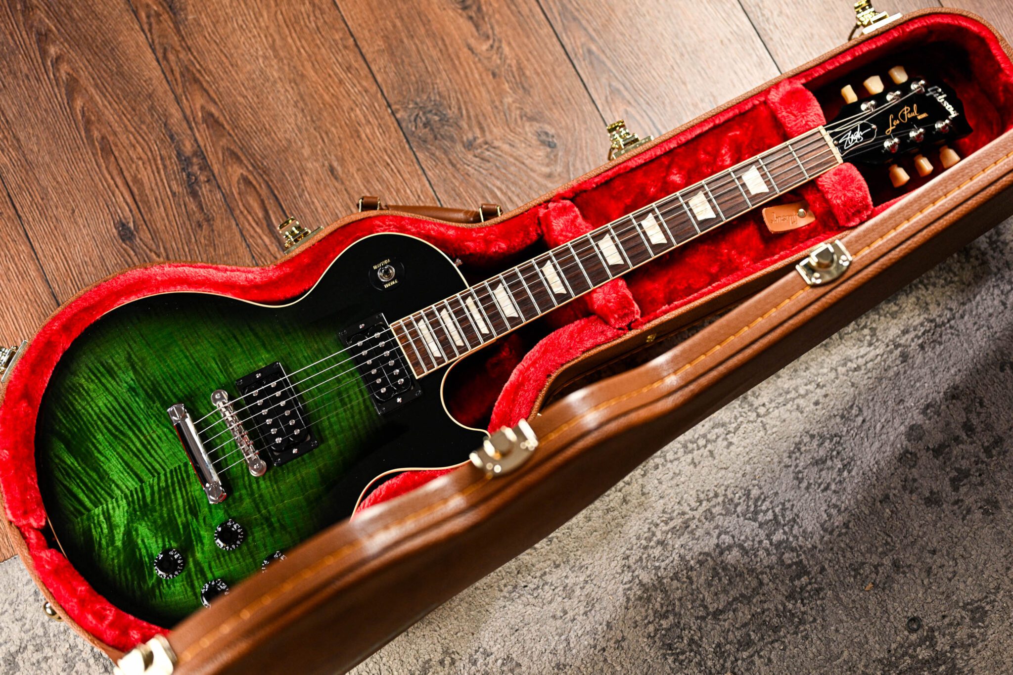Whether you’re a huge Slash fan or not this guitar stands out for itself! You have a beautiful AAA flame maple top covering a solid mahogany body, 50s shape neck, all powered by a pair of stunning Custom Burstbucker Alnico II pickups producing all the classic Les Paul tones we love. Presented in stunning Anaconda Burst with a AAA maple top this is a totally stunning tribute to the legends love of the Les Paul, add to that his “Scully” signature drawing on the back of the headstock and Slash’s signature on the truss rod cover and its one special guitar package.