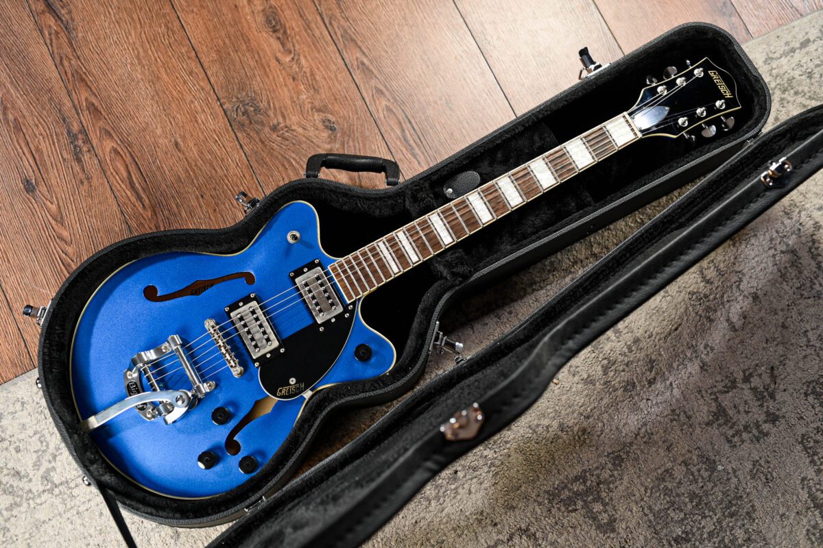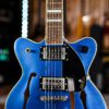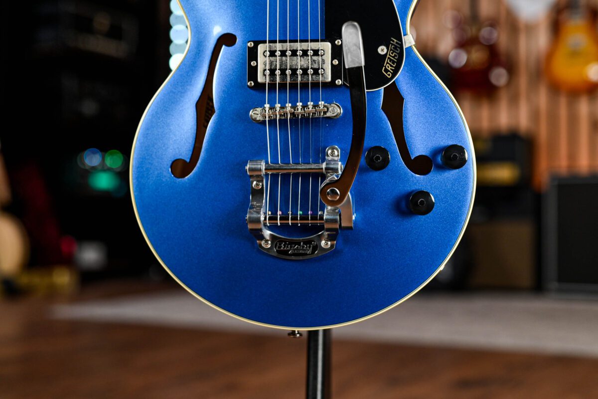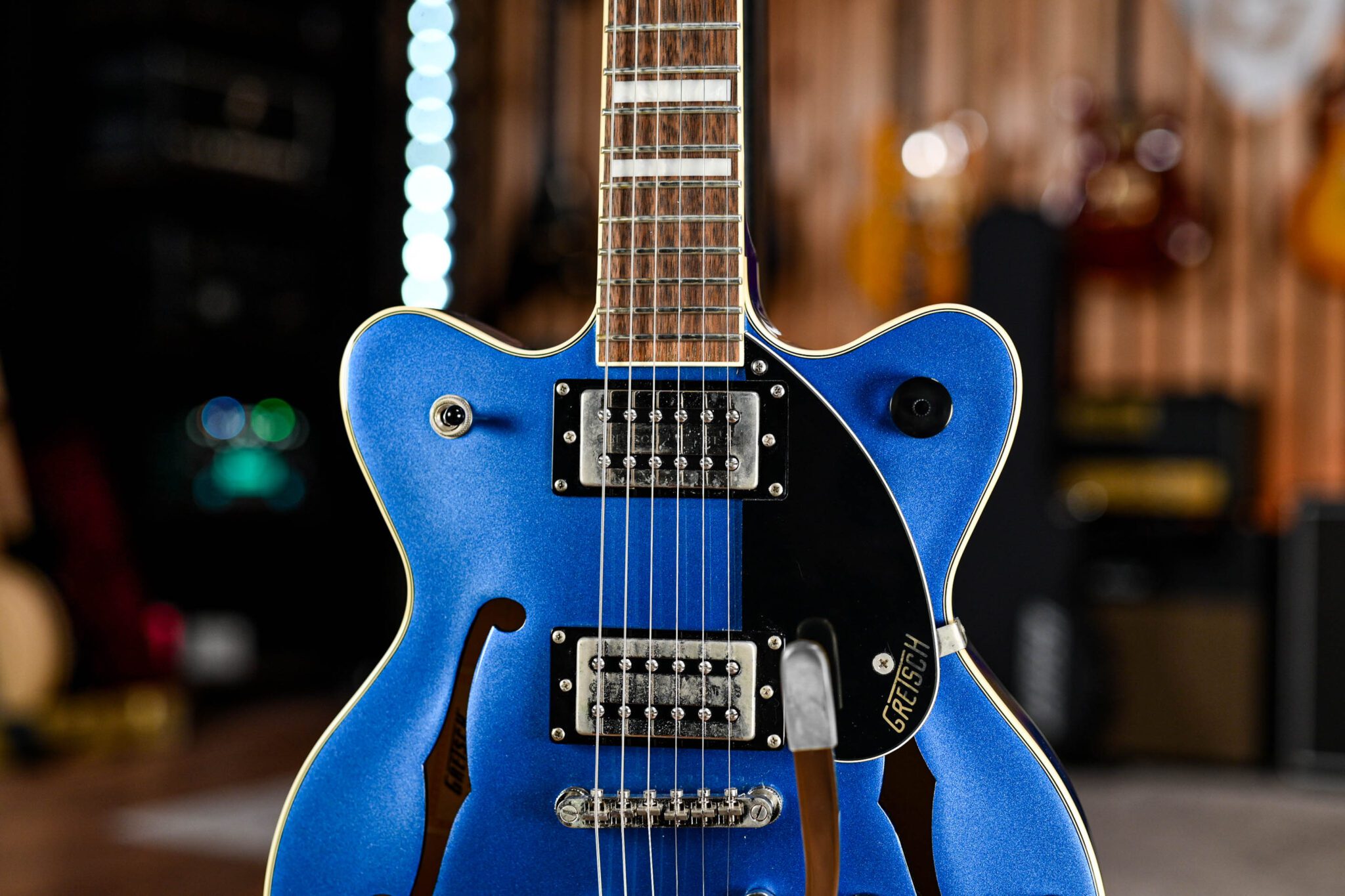 The G2655T Streamliner Center Block Jr. Double-Cut with Bigsby bursts into the modern era with powerful sound and style in a smaller package. The sleek G2655T is designed for the guitarist who demands more than the mundane from an instrument—more performance, more style and most importantly, more volume—while retaining everything you expect from a Gretsch.