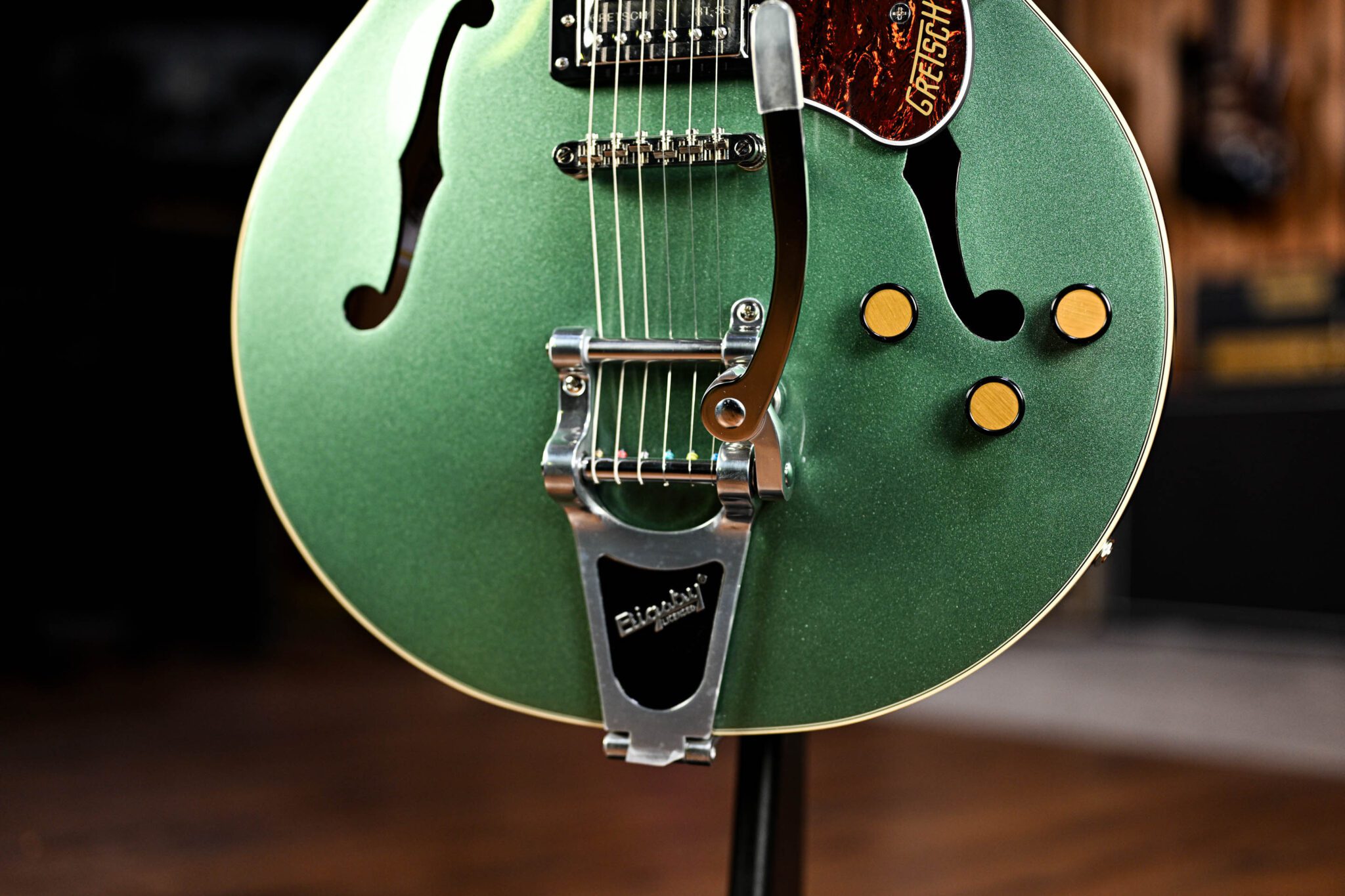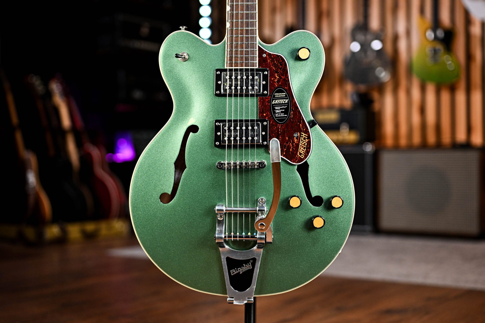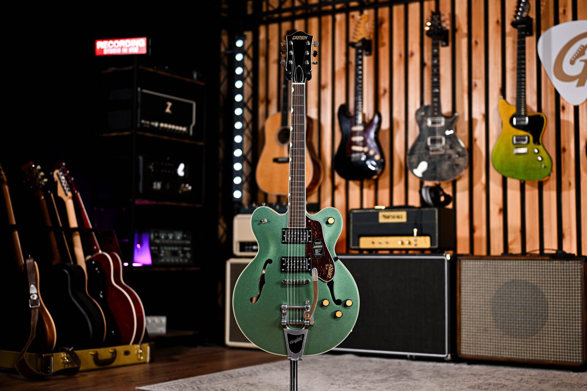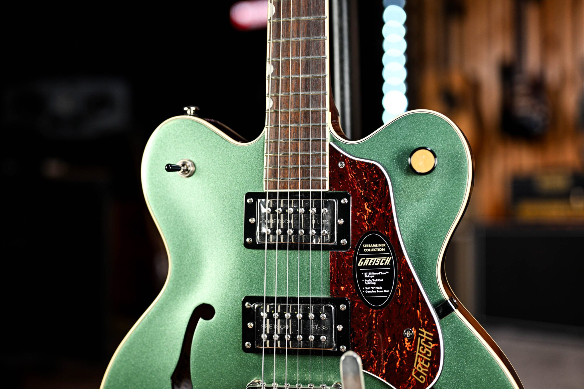 Introducing the G2622T Streamliner Center Block Double-Cut with Bigsby, a dynamic force in the modern era. This sleek instrument unleashes powerful sound and captivating style. Crafted for guitarists who crave more than the ordinary from their instrument, the G2622T delivers heightened performance, exceptional style, and, above all, impressive volume. It retains all the qualities you expect from a Gretsch guitar while embracing a spirit of musical exploration.