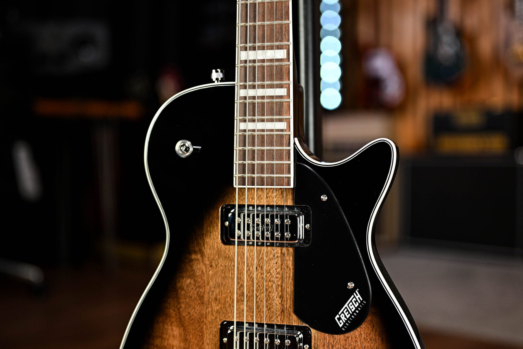 The Gretsch G5260 Electromatic Jet Baritone is a sleek, powerful extended-range guitar designed for deep, rich tones. With a long 29.75″ scale, solid mahogany body, and dual mini humbuckers, it delivers tight low-end clarity perfect for heavy riffs, surf, or modern blues textures—all wrapped in classic Gretsch style.