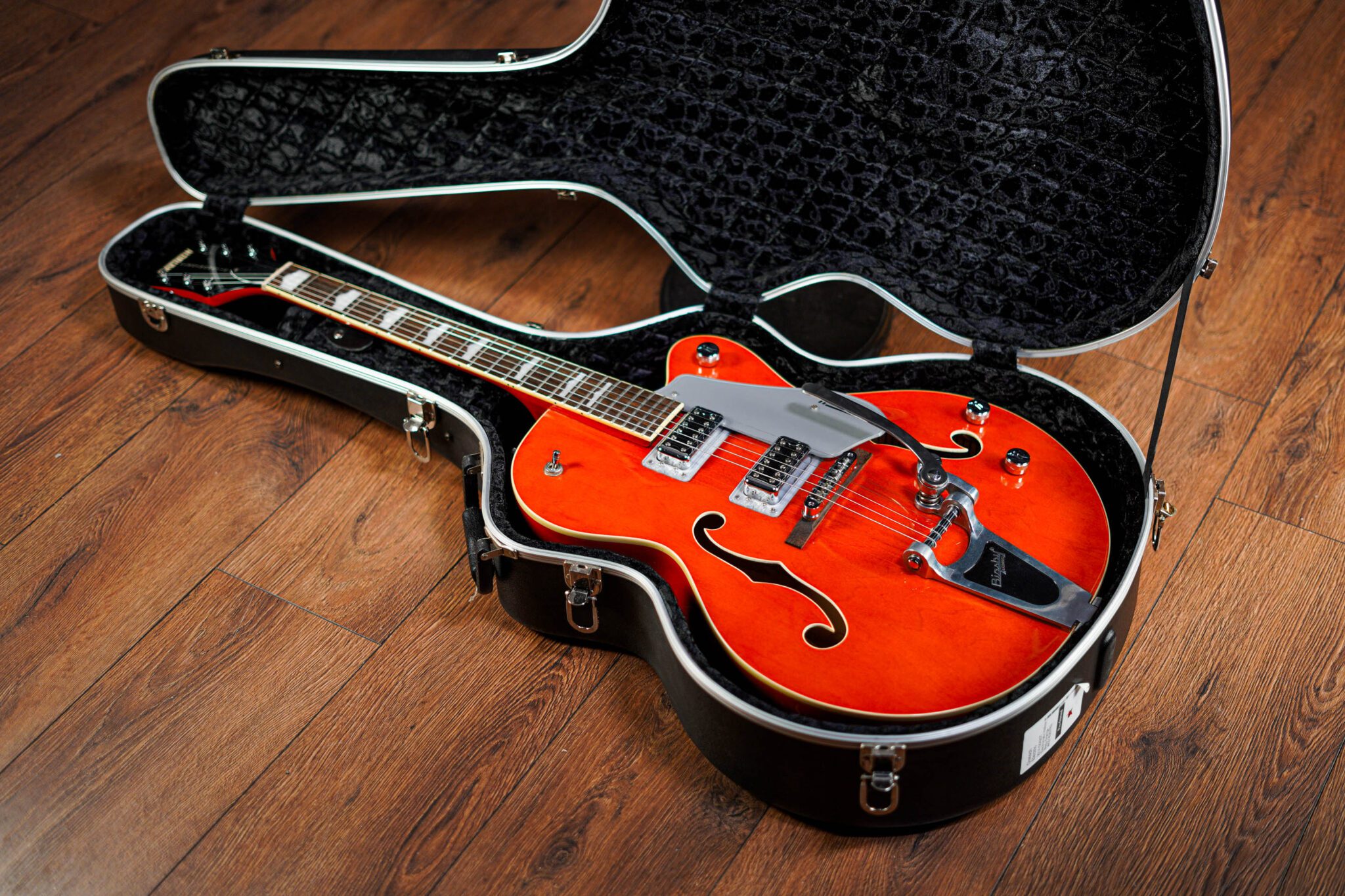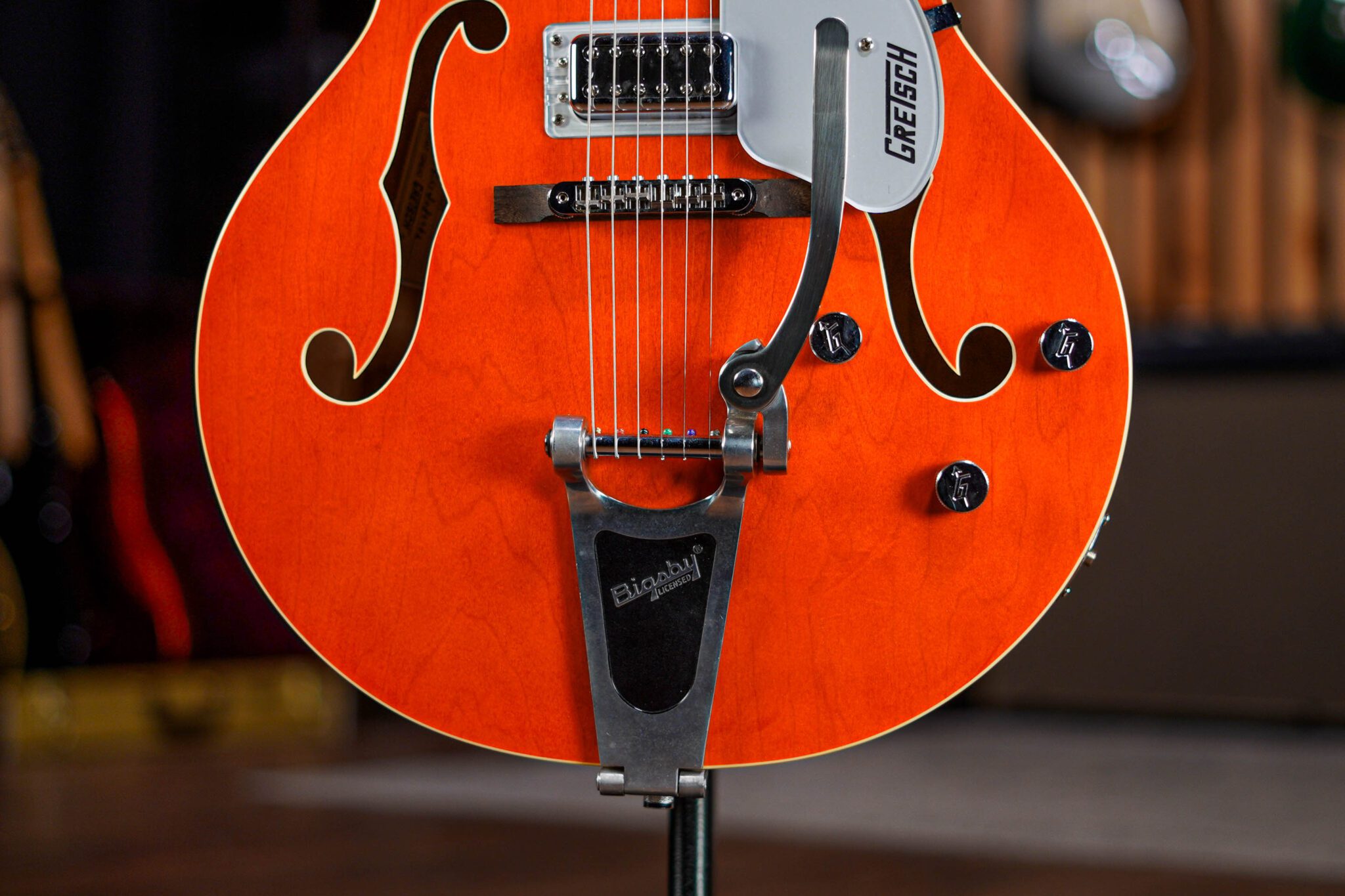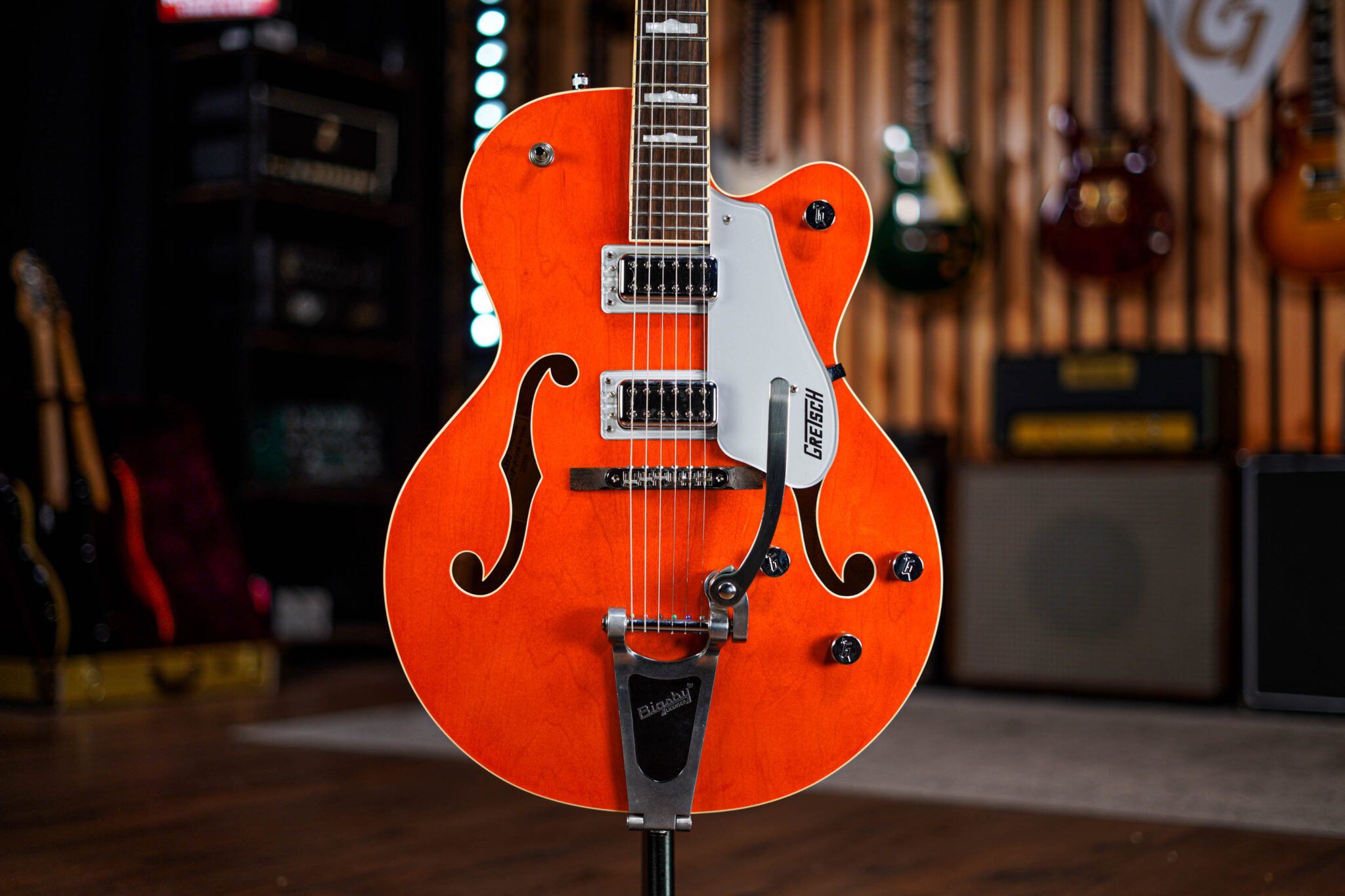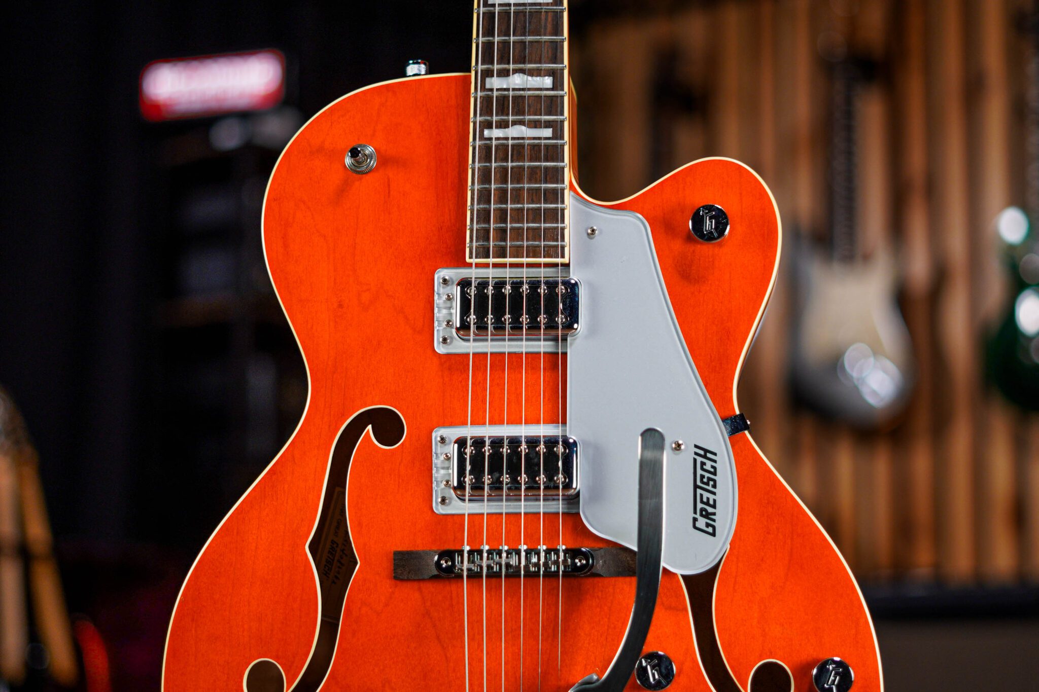 The G5420T is crafted with the essential semi-acoustic sound, style, playability and charm that guitarists adore about ’50s and ’60s-inspired Gretsch instruments. While traditional aesthetically, the Gretsch G5420T boasts a few modern appointments that bring it up to the standards of today’s demanding guitarist.