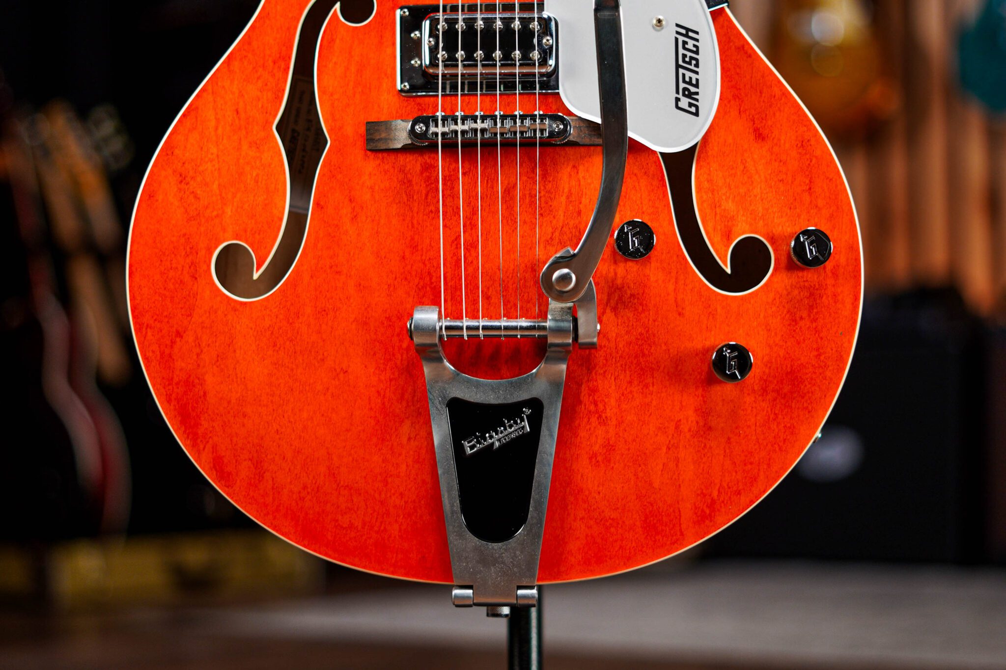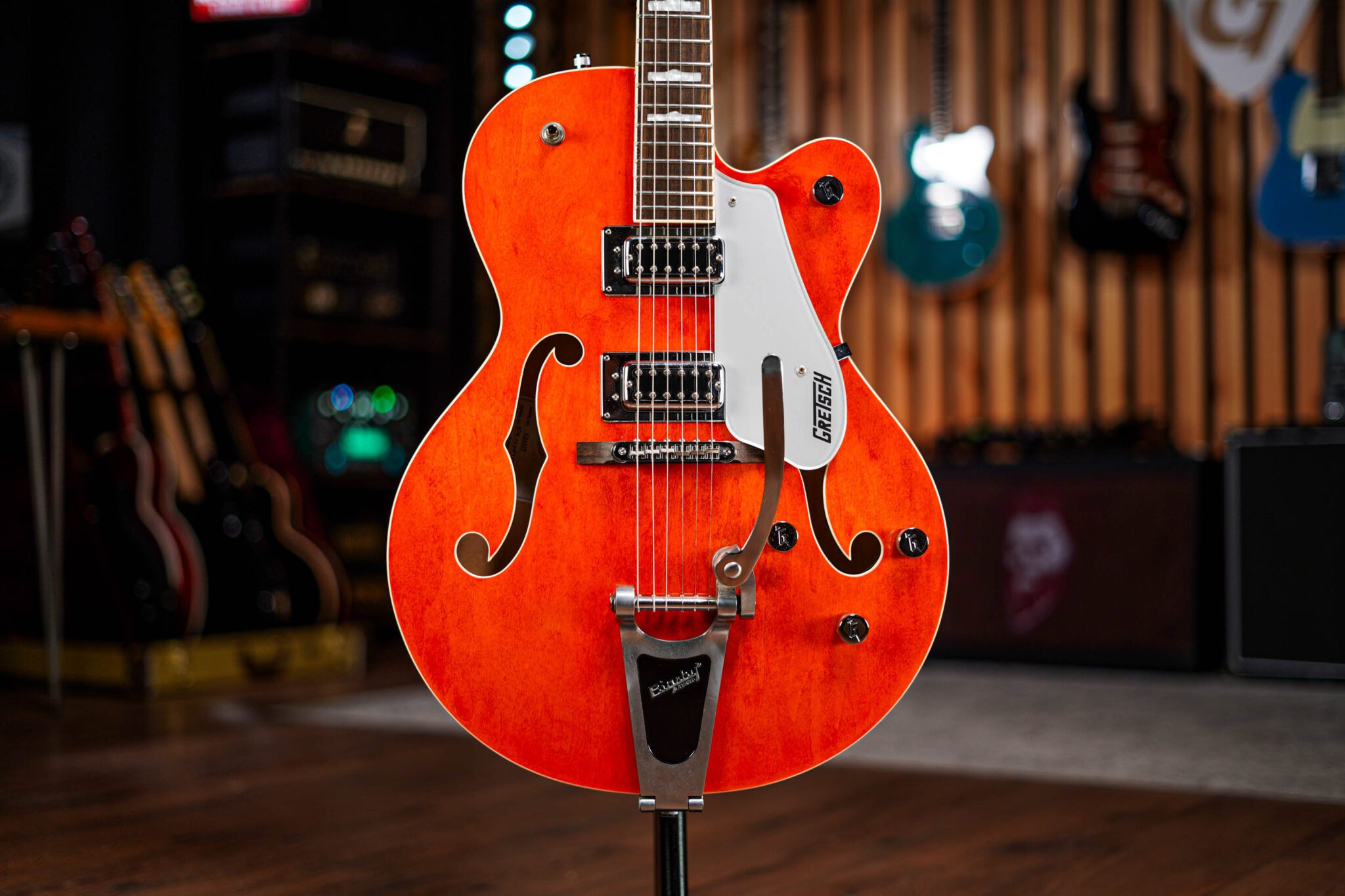 This tasty hollow body pays tribute to the legendary Gretsch guitars of old. Featuring premium hollow body construction and design, the Electromatic has a thick and complex resonant tone that screams classic Gretsch, in every position of the pickup switch this is a guitar filled with inspirational tones and we absolutely love it!