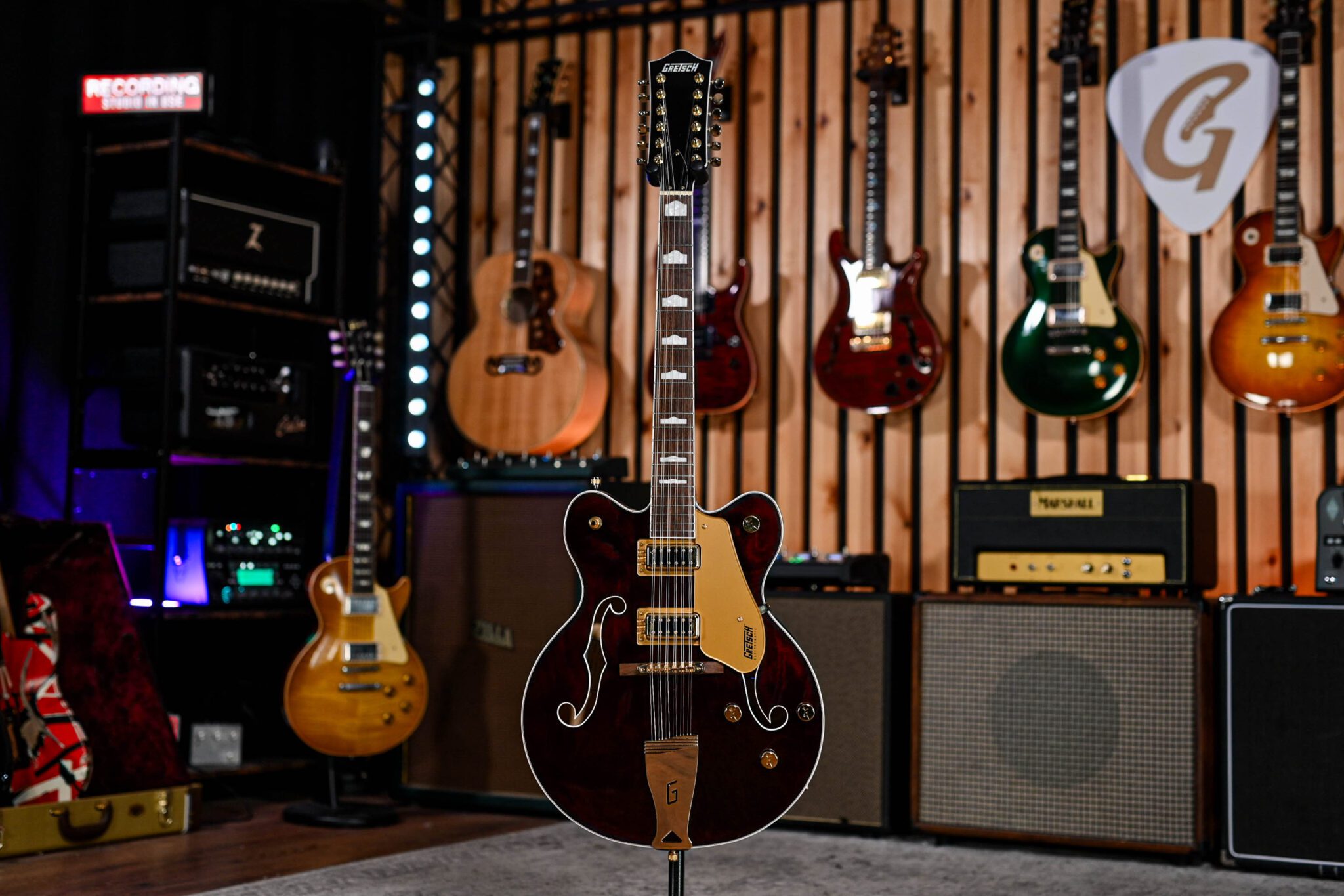 The Gretsch G5422G-12 Electromatic Classic Hollow Body Double-Cut 12-String in Walnut Stain is a visually striking and sonically rich guitar, ideal for players seeking the lush, jangly tones that a true inspiration.