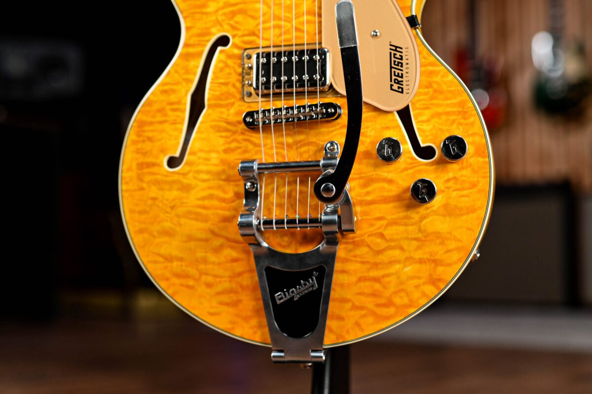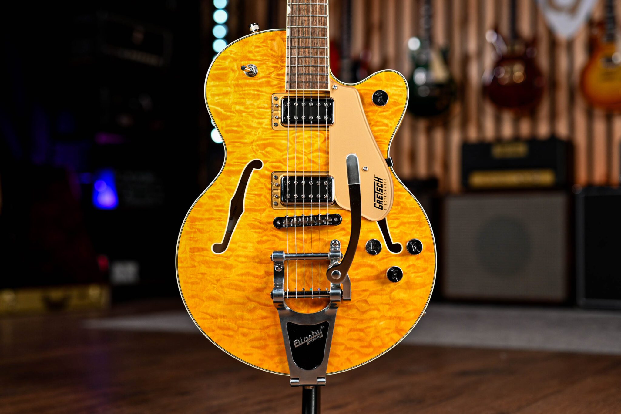 Gretsch equip the G5655TQM Electromatic Center Block Jr. with an authentic Bigsby bridge, which allows you to introduce lush vibrato to your chords.