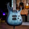 Every detail of this guitar is designed to delight players of hard and heavy genres. Seen from the front, the pleasing, fluid contours of the mahogany body are highlighted by the Flame Burst transparent satin finish over the subtle ripples of a flame maple veneer. A luxurious ebony fretboard with stylish dot markers meets a black reverse headstock loaded with black locking Grover tuners. Turn this beast over to reveal the elegant neck-through construction, with a 5-ply neck crafted from mahogany and maple. Get ready to unleash the power of the active EMG hot 70 humbuckers via the stripped-back set of tone and volume controls. This is a beast of a guitar!