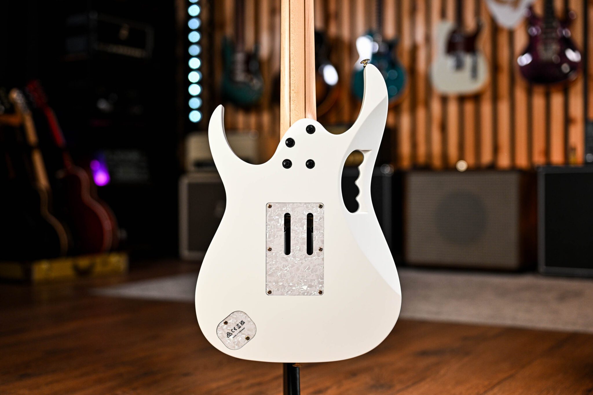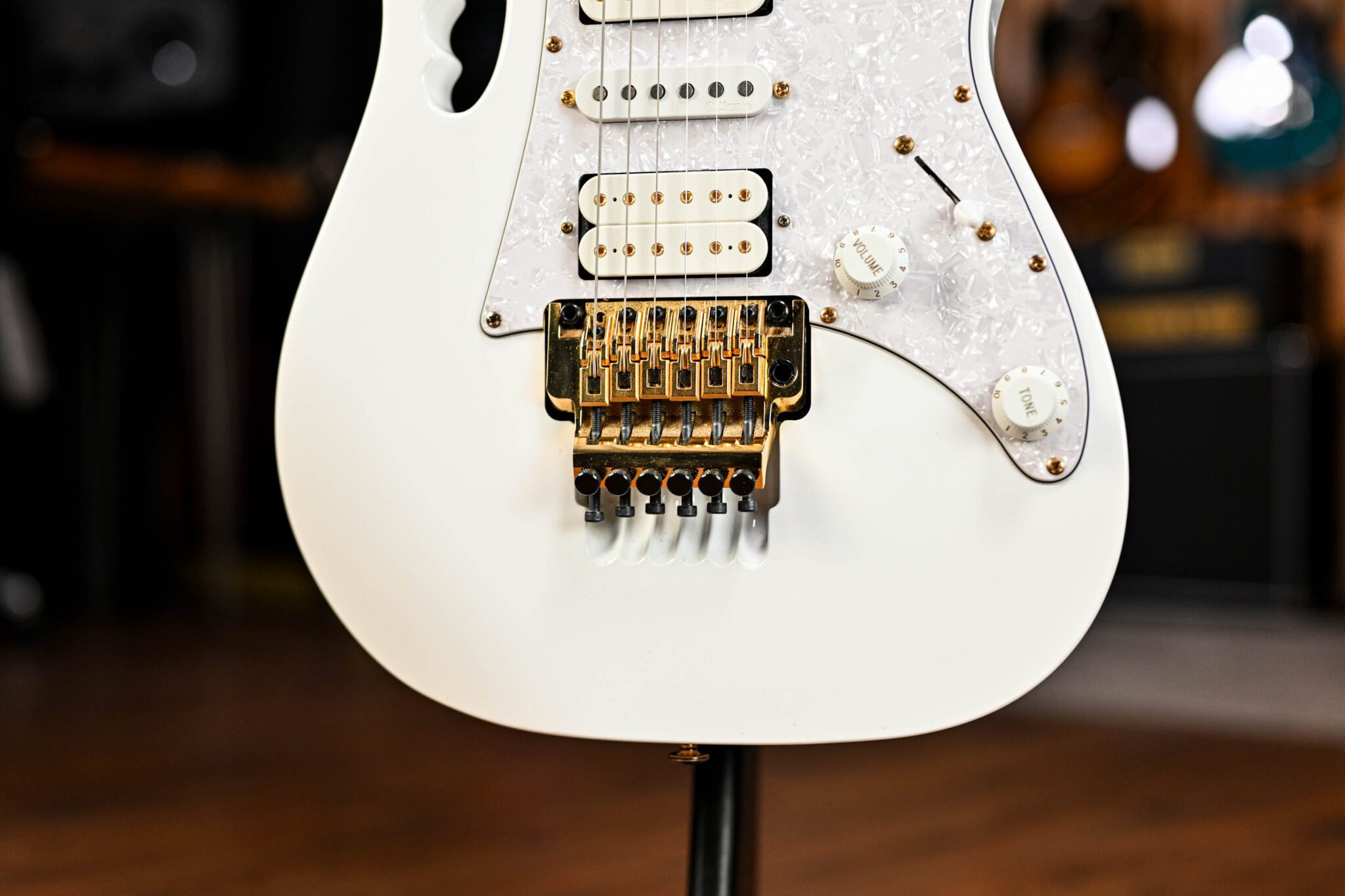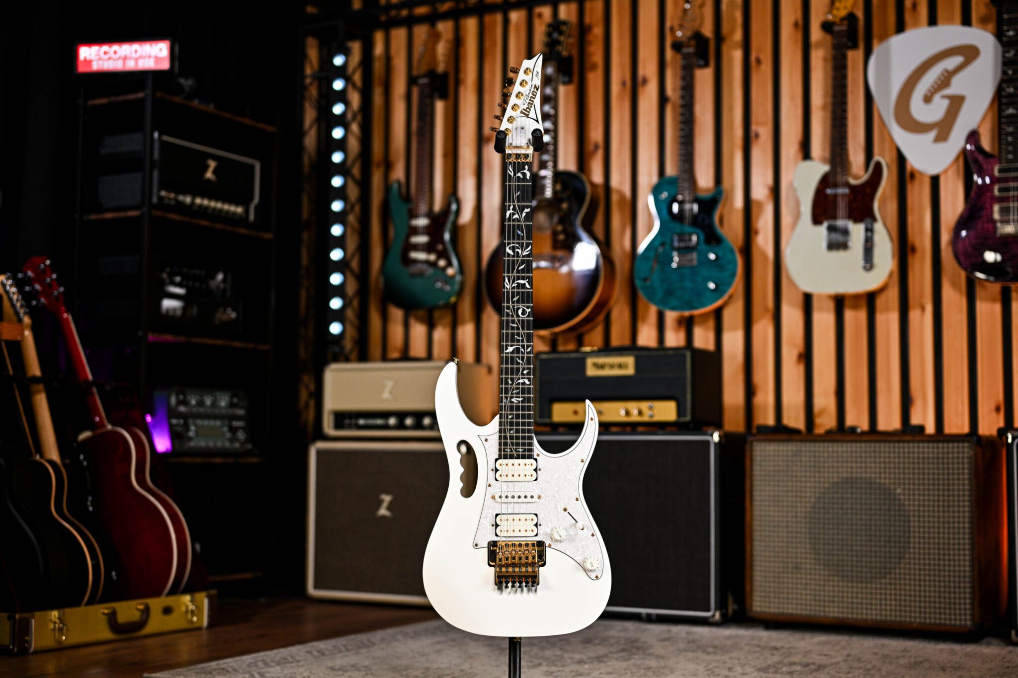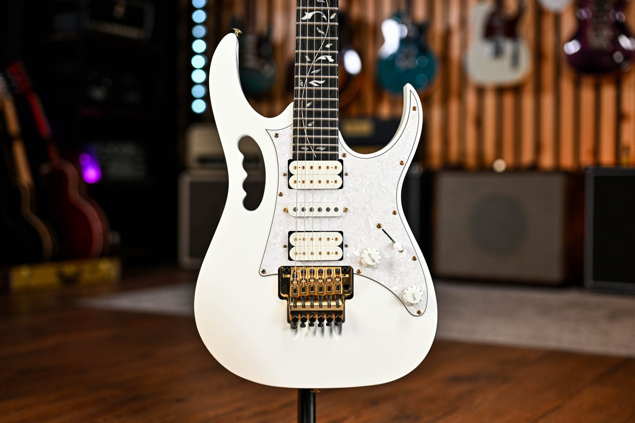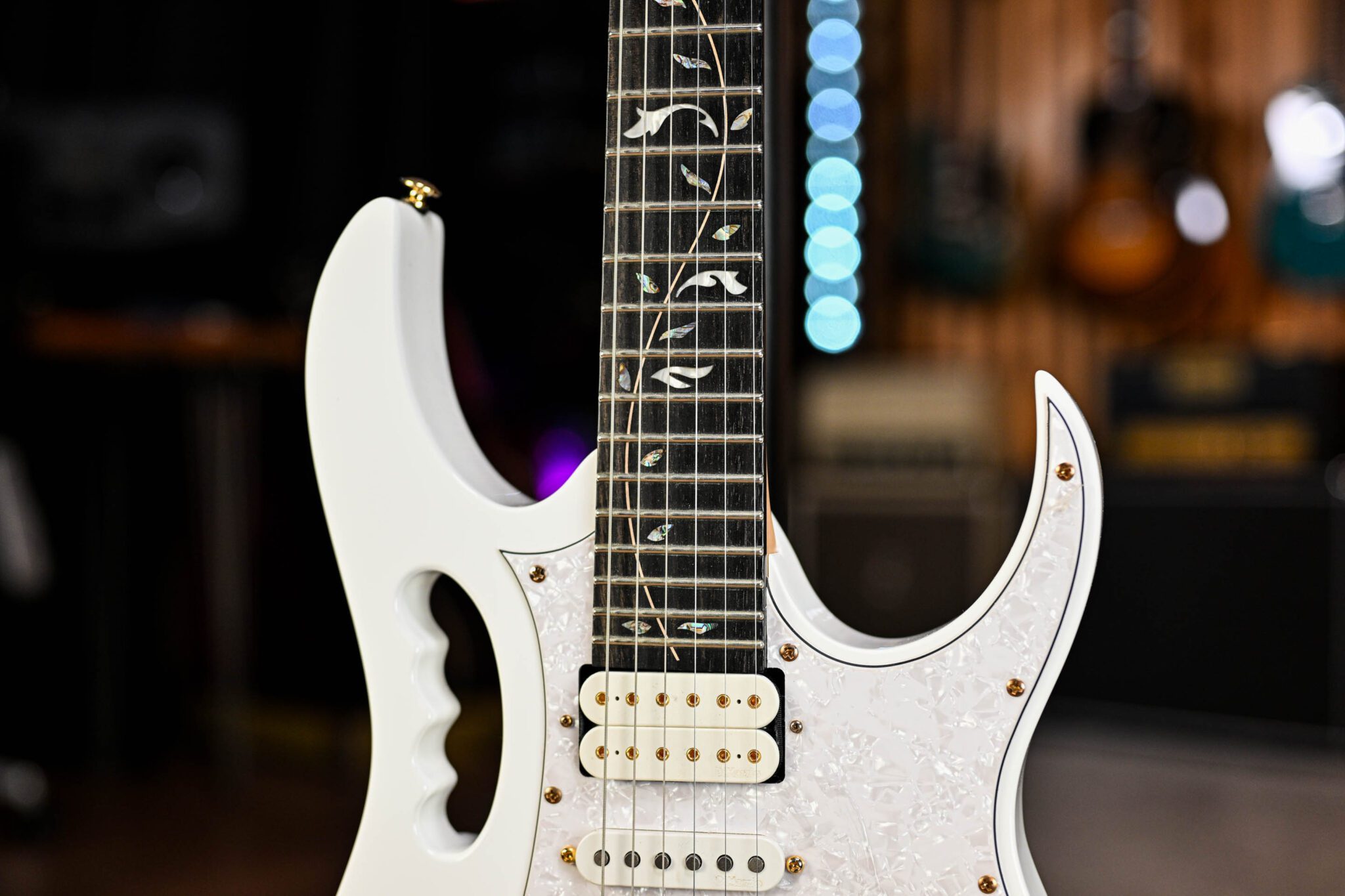 The Ibanez Steve Vai Signature Premium JEM7VP is a stunning example of the best of Ibanez craftsmanship. A high-end guitar crafted with fine materials and build to provide an incredibly comfortable playing experience with a wide-range of versatile and tasty tones at your disposal, the JEM7VP is a high performance guitar that is just waiting for pinched harmonics and divebombs while looking totally stunning while it does it!