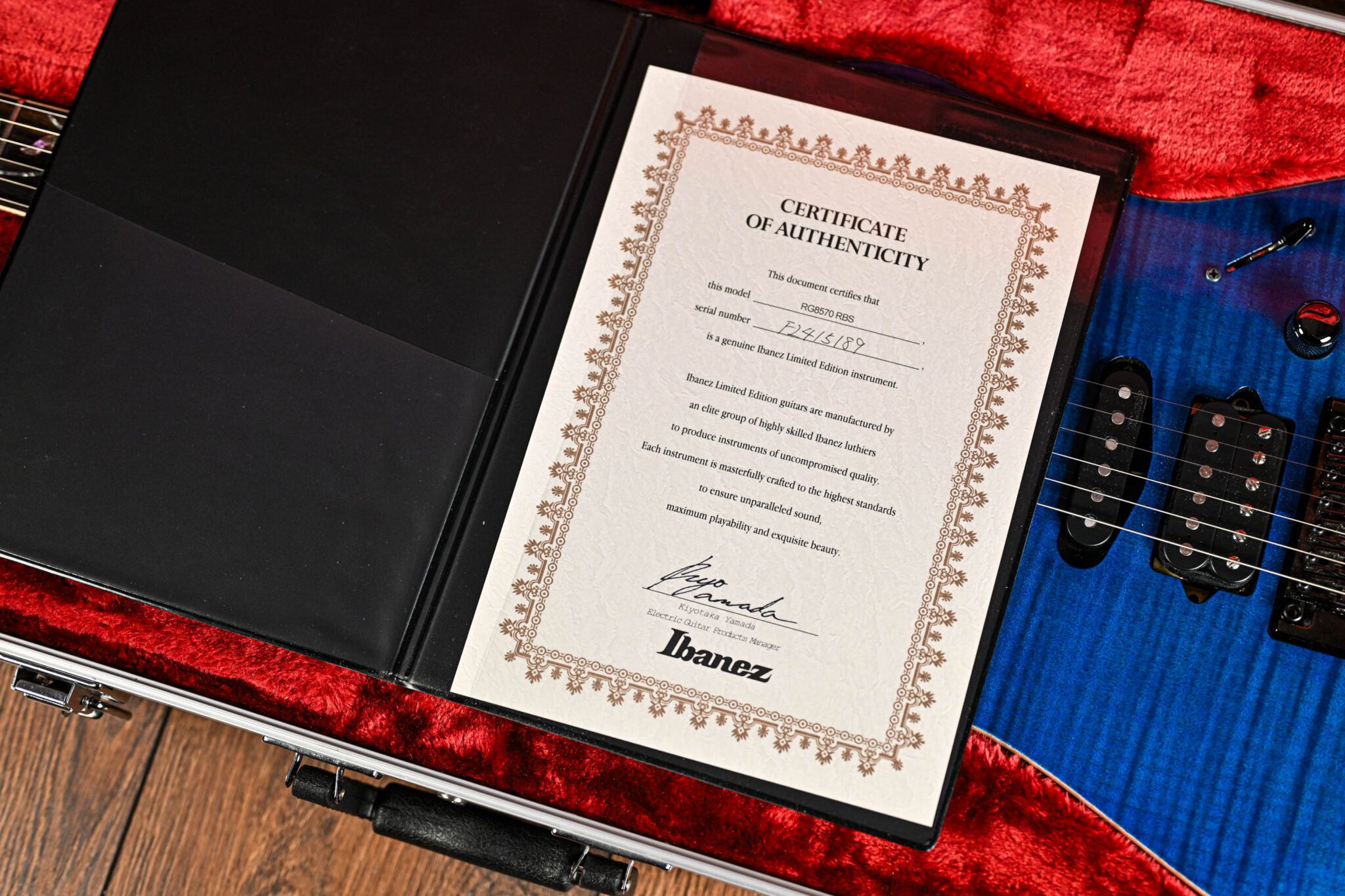 The J Custom designation represents every advance in design and technology Ibanez has developed over the decades: The best woods, neck/fret treatments, and top-quality hardware. Each is masterfully crafted to the highest standards to ensure an unparalleled powerful sound, slick playability, and exquisite beauty, resulting in one of the finest guitars ever built.