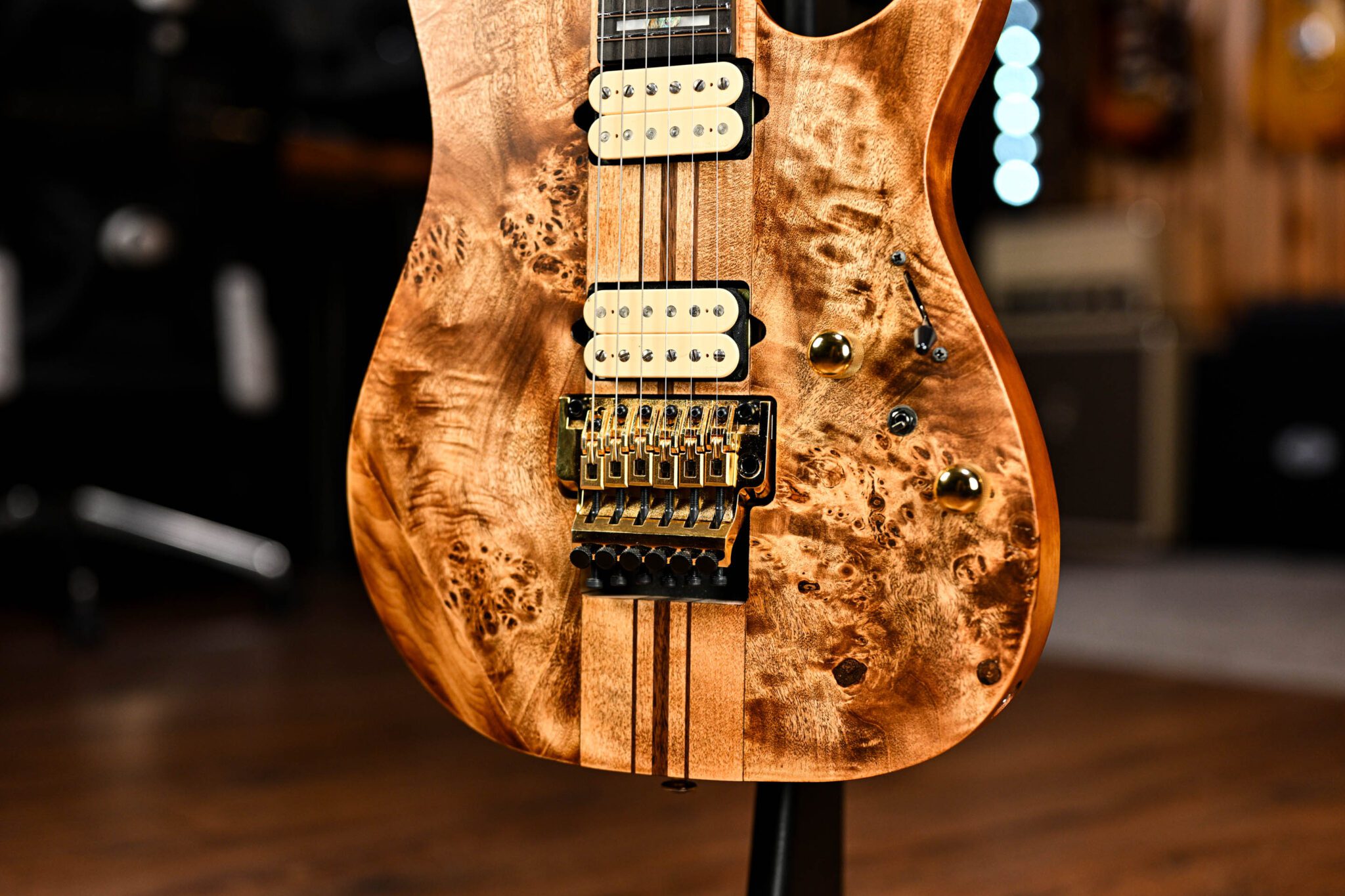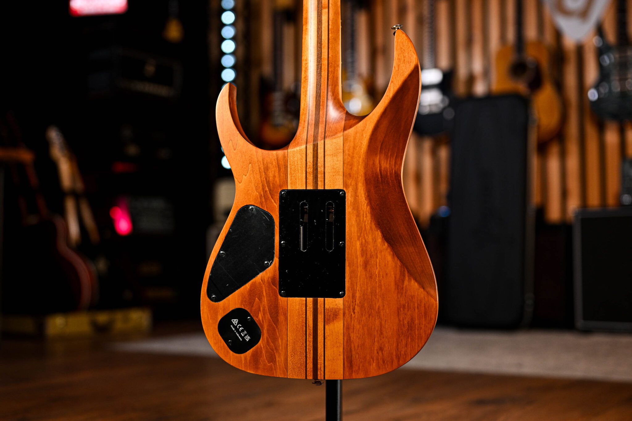 With a classy Antique Brown Stain finish over a poplar burl top, this RGT is all about sleek aggression and shred-ready playability. The neck-through construction delivers insane sustain and effortless upper fret access, while the Wizard III 7-piece maple/walnut neck is built for speed. Loaded with a set of DiMarzio pickups and equipped with the legendary Edge tremolo, the RGT1220PB is your ticket to expressive, high-octane playing with killer tone and stage-dominating looks.