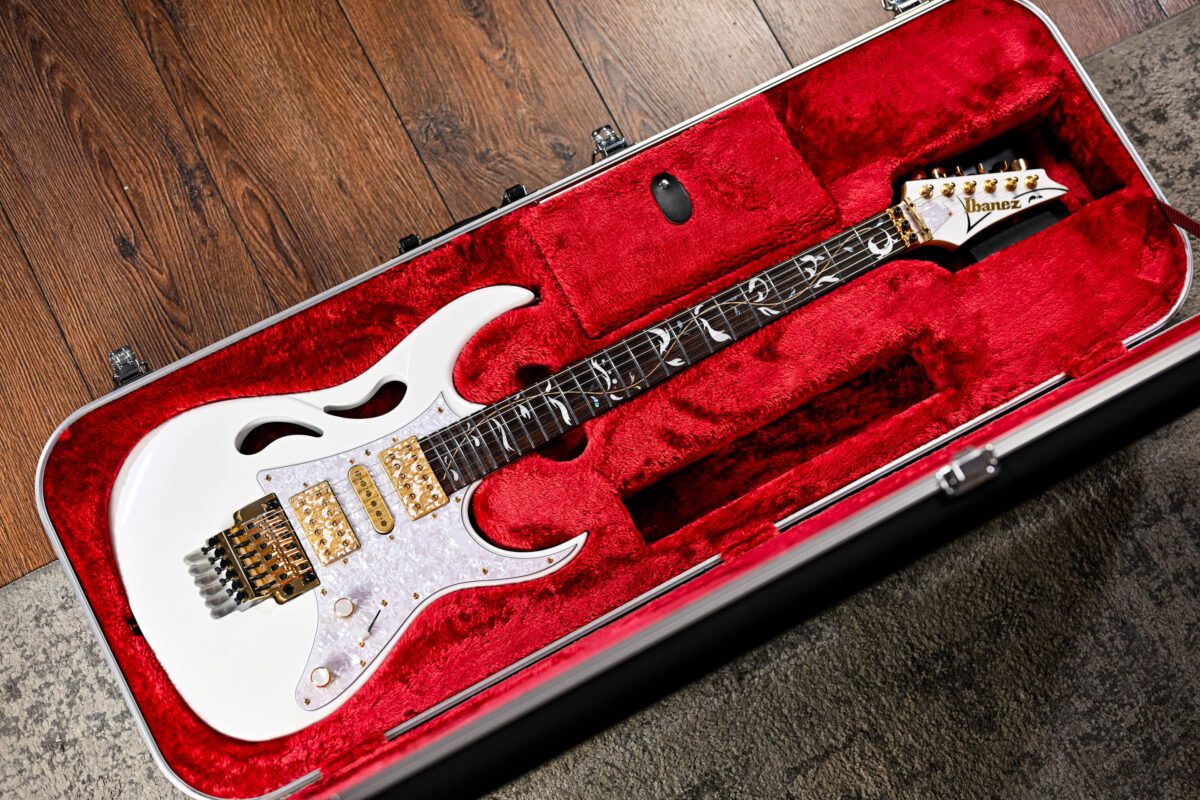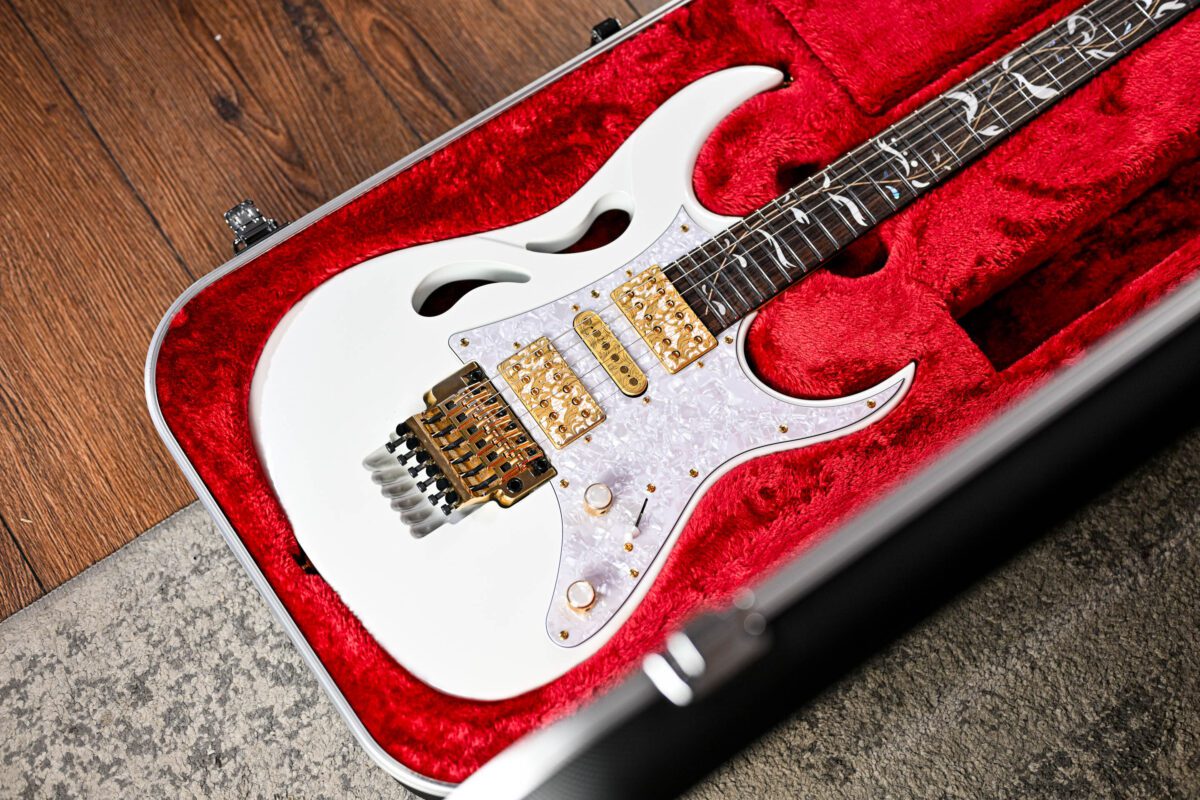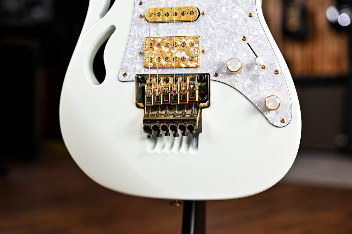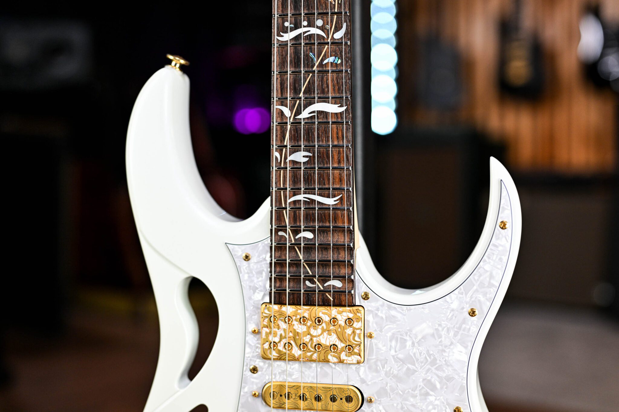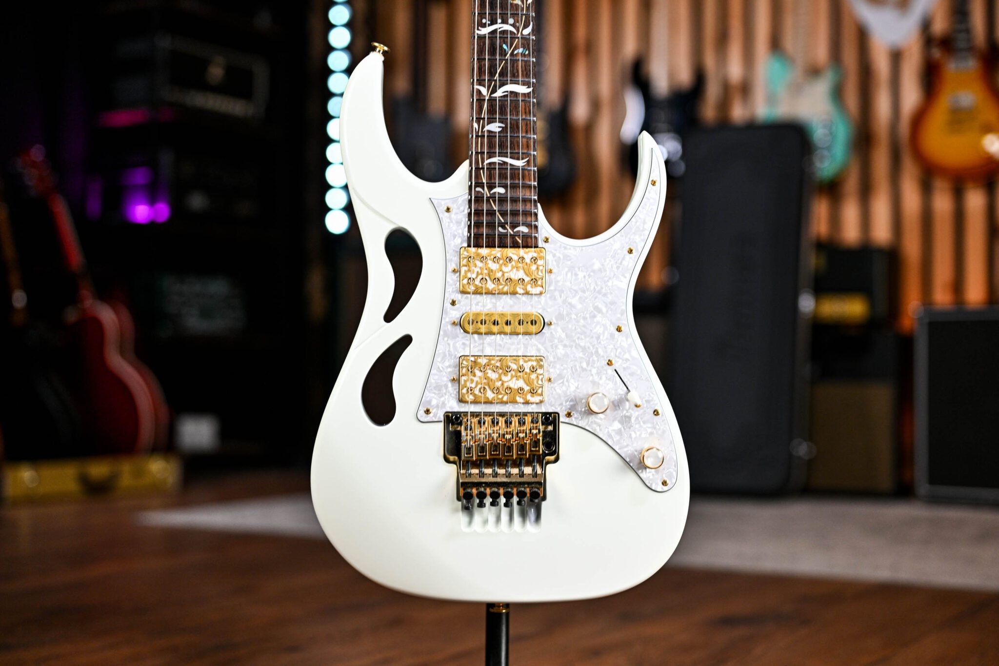Built for blistering solos and expressive playing, the PIA is Ibanez and Steve Vai’s latest evolution of the iconic JEM. The classy Stallion White finish is beautifully offset by the signature “Petal Grip” and elegantly scalloped body curves, while the DiMarzio UtoPIA pickups deliver rich, articulate tones with just the right bite. A slick five-piece maple/walnut neck and Ibanez’s fast-playing Edge tremolo system make this the ultimate guitar for high-performance players chasing precision and flair. It’s bold. It’s beautiful. It’s built to fly.