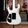 The SLX-M features an ergonomically curved poplar body, through-body maple neck with graphite reinforcement for rock-solid stability and tilt-back scarf joint headstock for reduced playing fatigue. Hosting 24 jumbo frets and black sharkfin inlays, its 12”-16” compound radius bound maple fingerboard makes for low-action bends without fretting out.With the high output Duncan Designed pickups this is one powerhouse of a rock guitar and we absolutely love it!