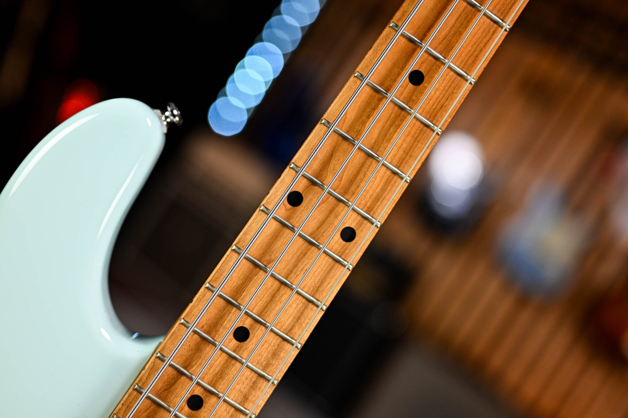 One of the most admired bass guitar designs in the world, this Music Man Sterling Ray 34 represents a stunning example of this legendary bass! With a maple neck, 9.5″ radius fingerboard, active Humbucking pickups with creative 3 band EQ this not only looks amazing but has all those super punchy low-end tones we love about a Stingray!