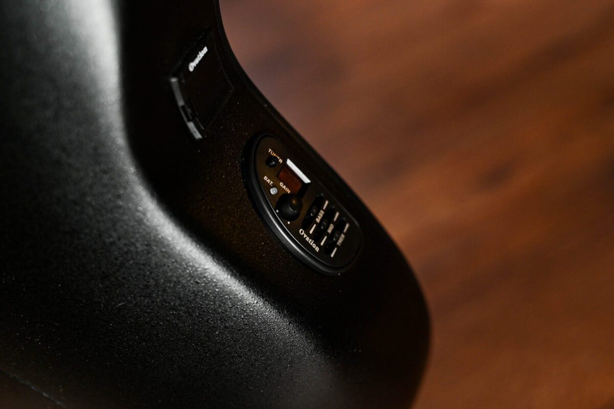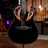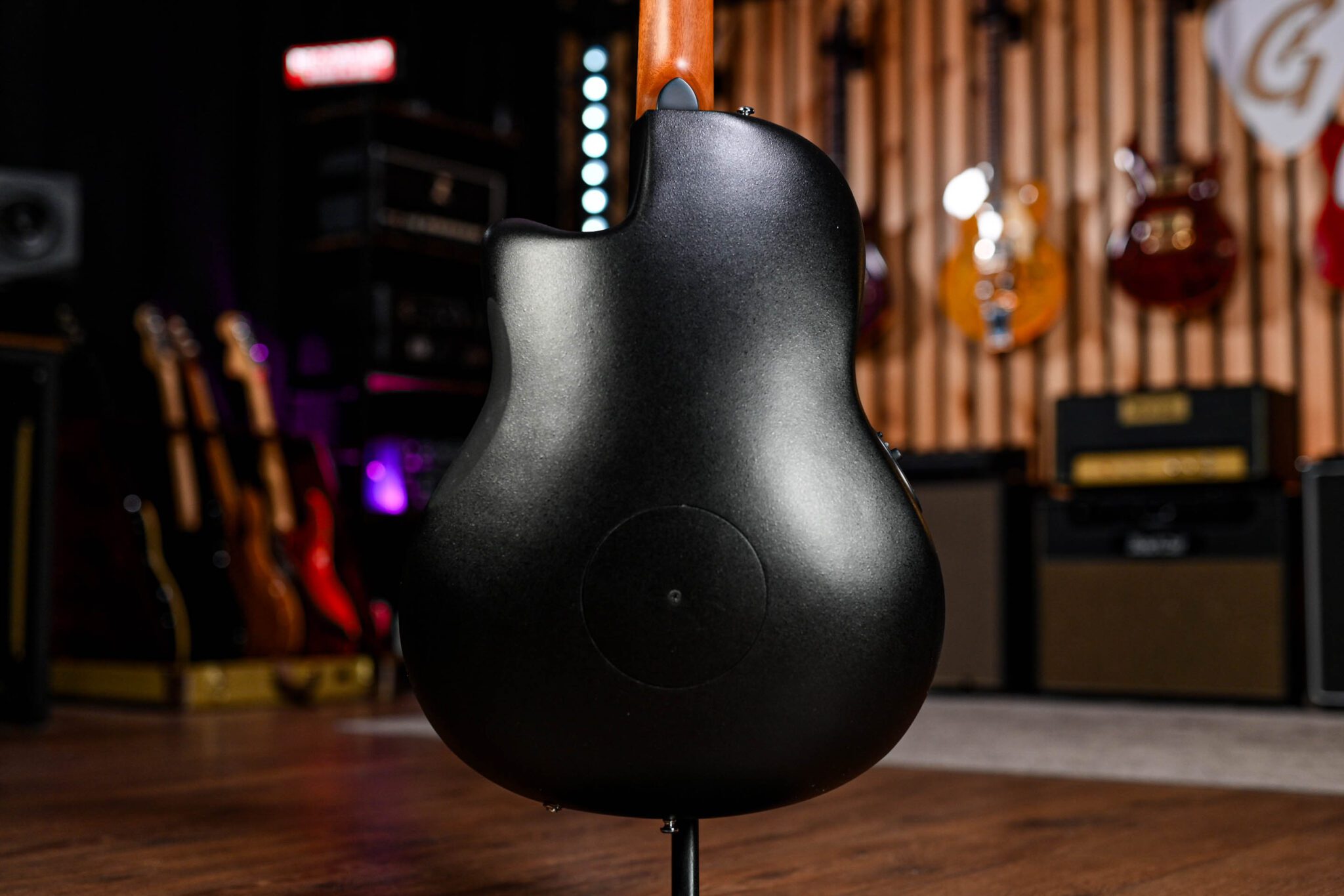 The Lyrachord® composite, mid depth body is comfortable standing or sitting and provides excellent projection. A satin-finished neck, Ovangkol fretboard and bridge all combine to make playing effortless and responsive. The Celebrity Elite is equipped with the Ovation Slimline pickup and OP-4CT preamp system with a three-band EQ, volume/gain control, onboard tuner and low-battery light that make it easy to dial in your sound.