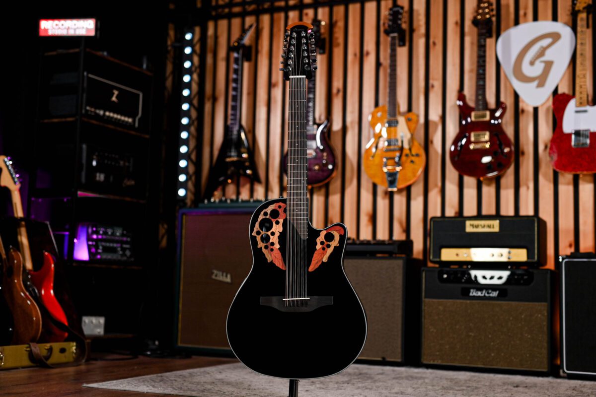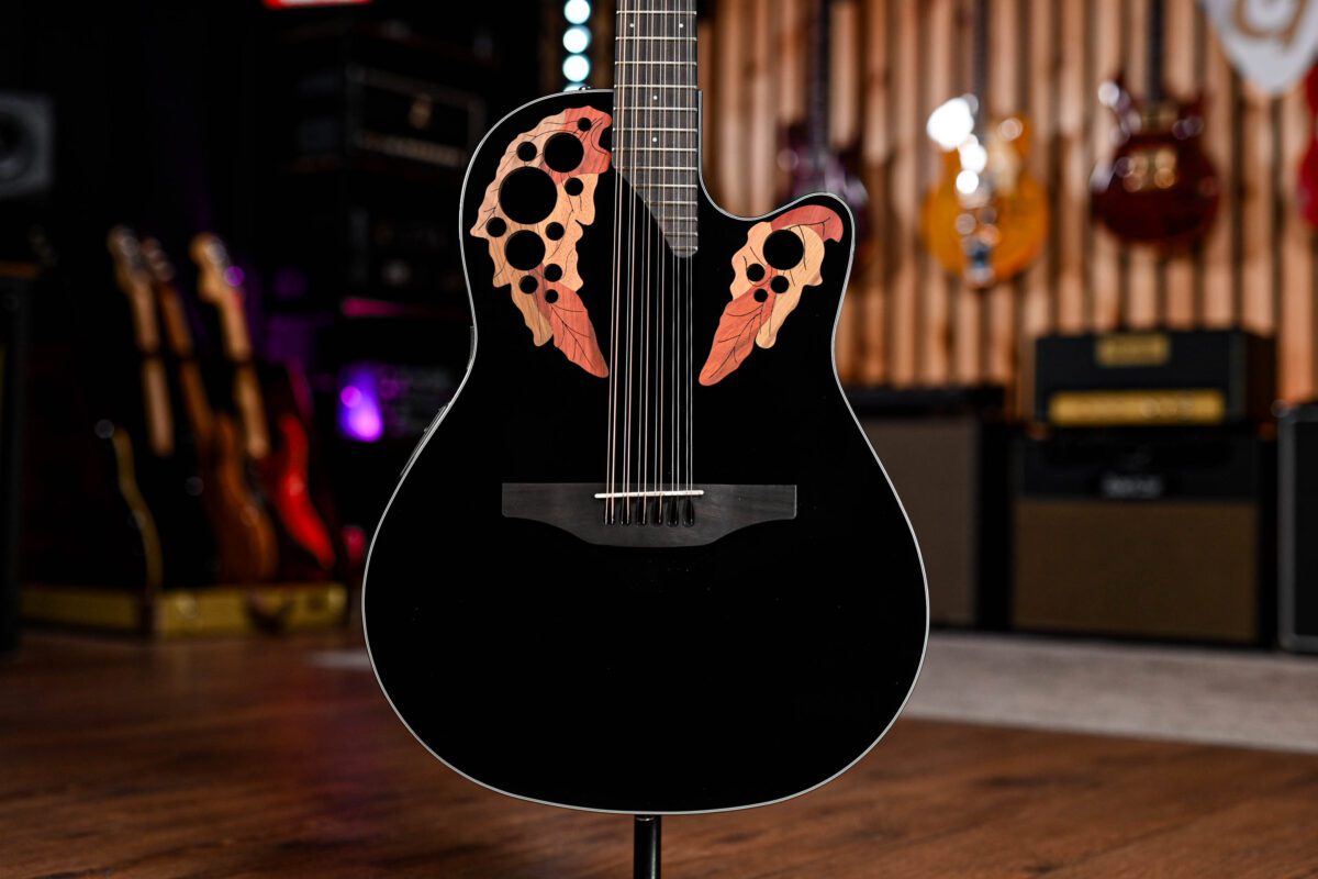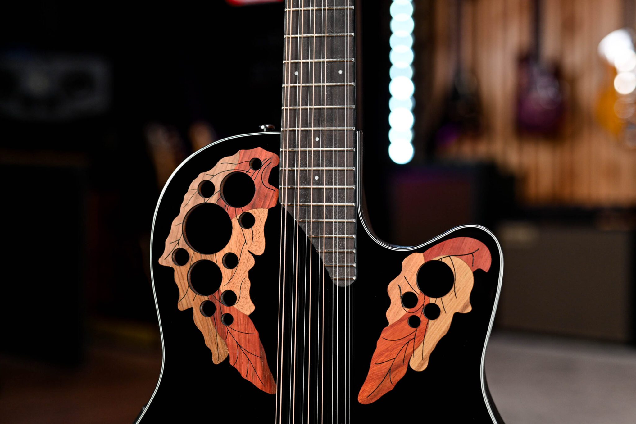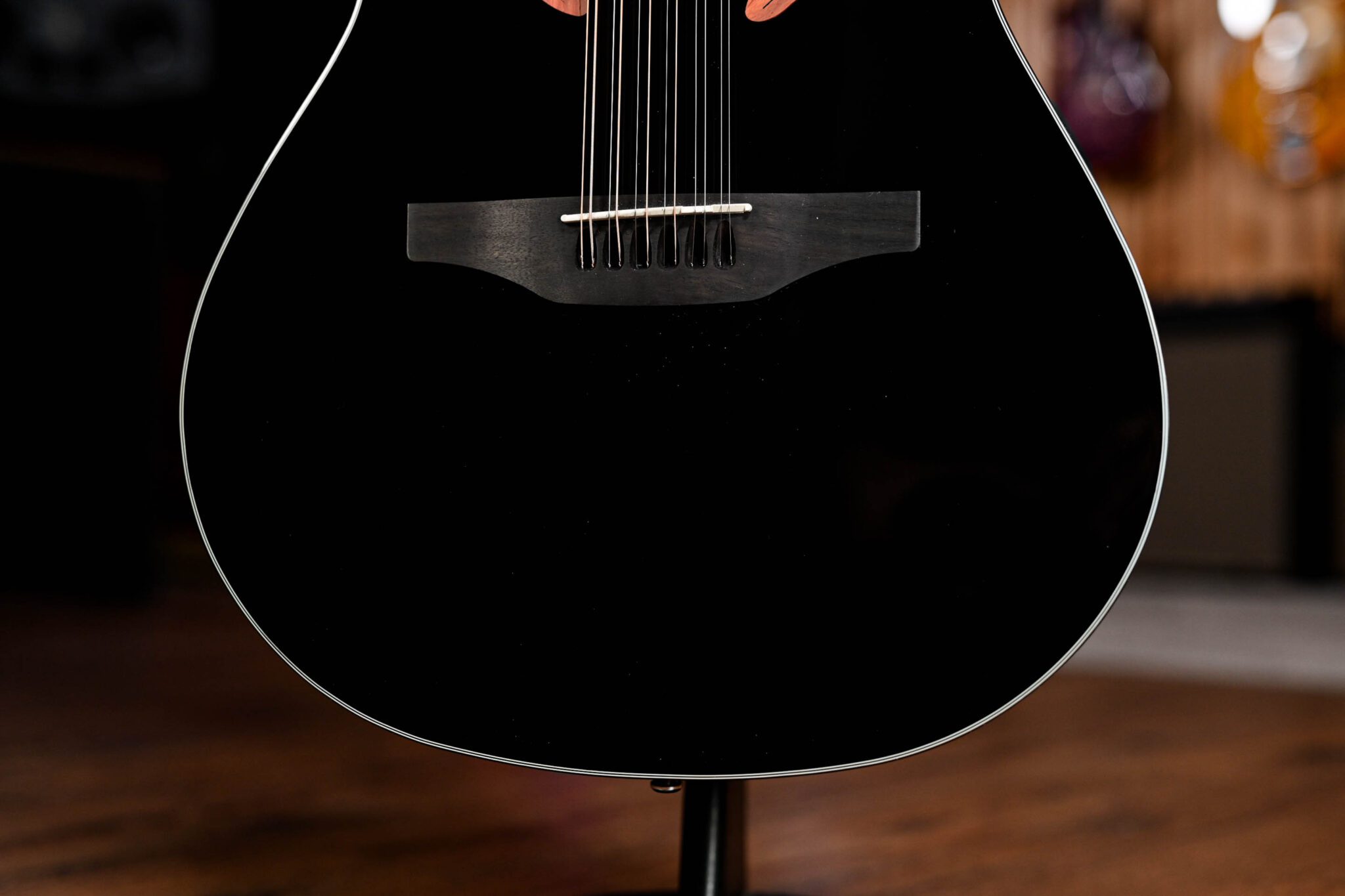 The Ovation Celebrity Collection Elite 12-string is a performance ready guitar offering striking aesthetics and pristine live sound. Ovation’s unique multi-soundhole design provides clear highs and a focused, balanced bass response. The solid Sitka spruce top has laser-cut epaulets that set it apart from the rest, and the 12-string provides a literal fountain of remarkable octaves and harmonics with pristine clarity. It features a classic Ovation high gloss, black lacquer finish.