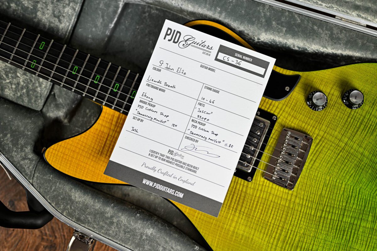 Crafted in the UK at the PJD Custom Shop for NAMM and bursting with character, this St John Elite is a showstopper in its striking Lizard’s Breath finish showing off some of the finest of what they have to offer. The offset body is lightweight and resonant, with boutique-level attention to detail that brings out the best in its tonewoods. Loaded with hand-wound PJD Democracy Manifest pickups and a silky satin neck carve, this guitar is a joy to play—whether you’re ripping lead lines or laying down punchy rhythm work. It’s a stunner that sounds just as good as it looks.