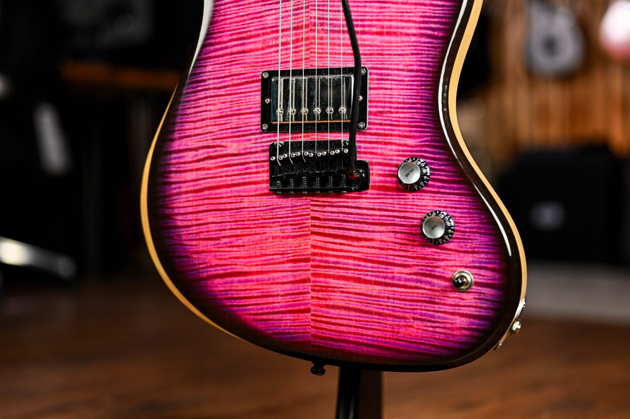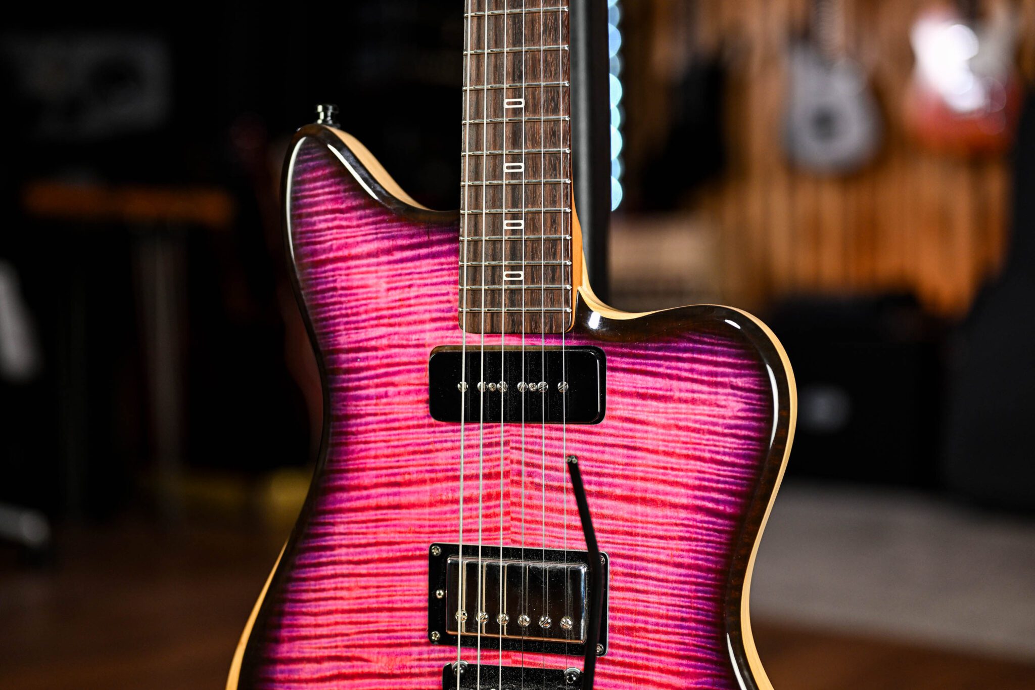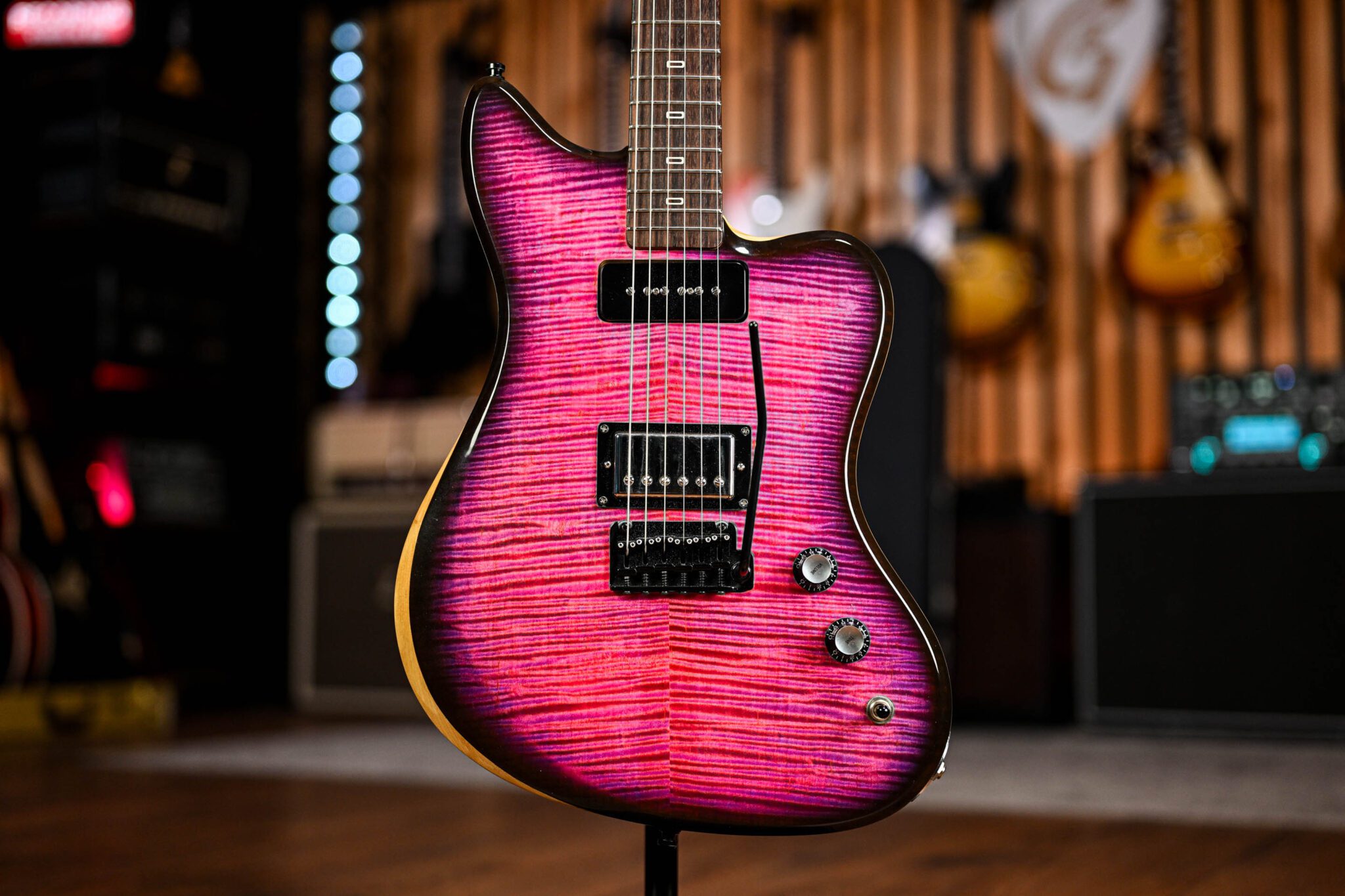 Crafted in the UK at the PJD Custom Shop and bursting with character, this St John Custom is a showstopper in its striking Neon Purple finish and flame maple neck showing off some of the finest of what they have to offer. The offset body is lightweight and resonant, with boutique-level attention to detail that brings out the best in its tonewoods. Loaded with Cream Tea pickups and a silky neck carve, this guitar is a joy to play—whether you’re ripping lead lines or laying down punchy rhythm work. It’s a stunner that sounds just as good as it looks.