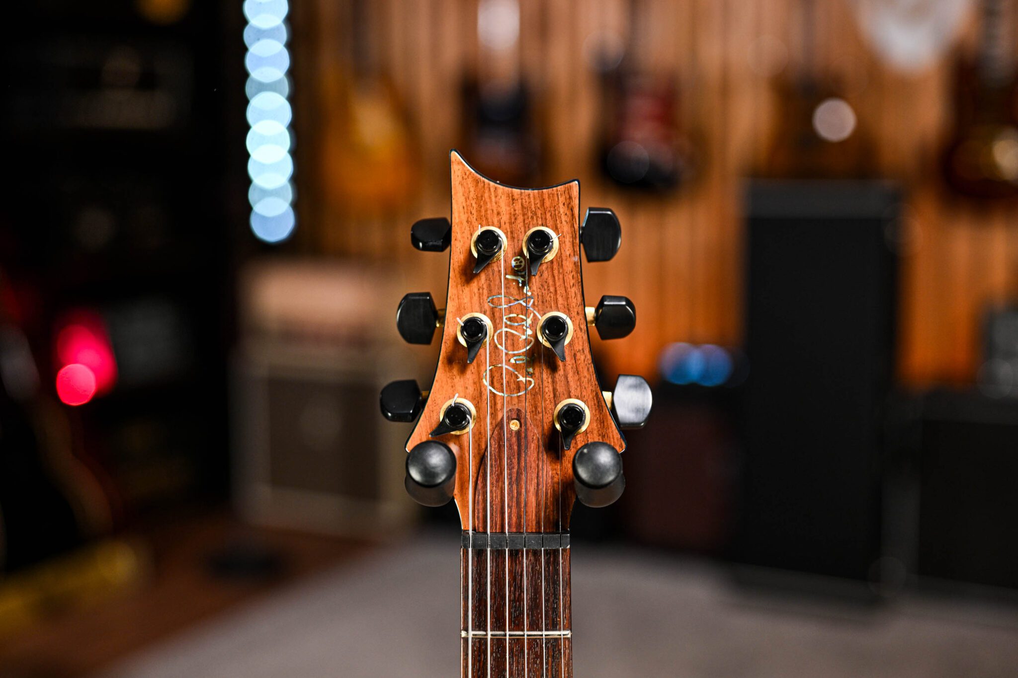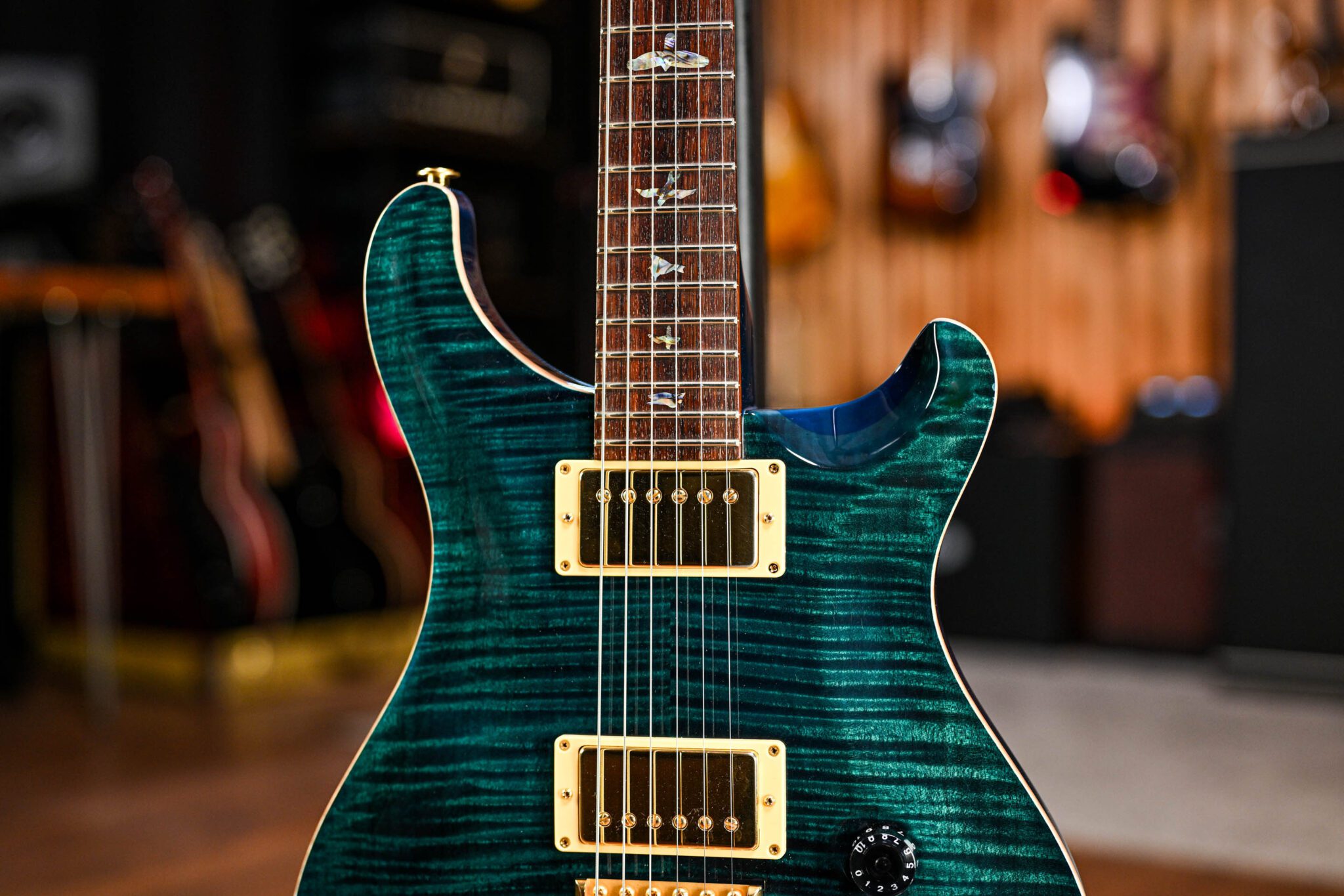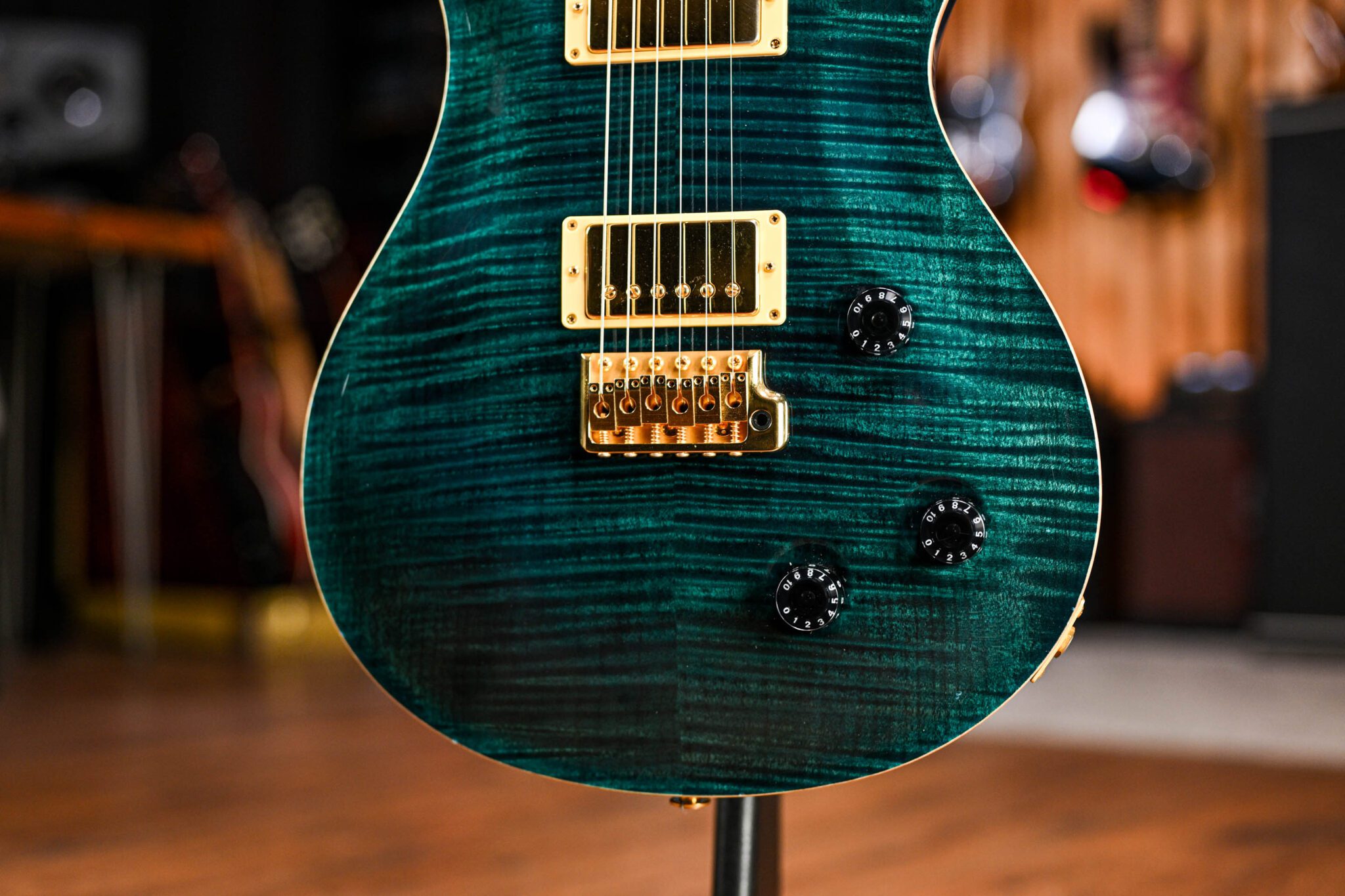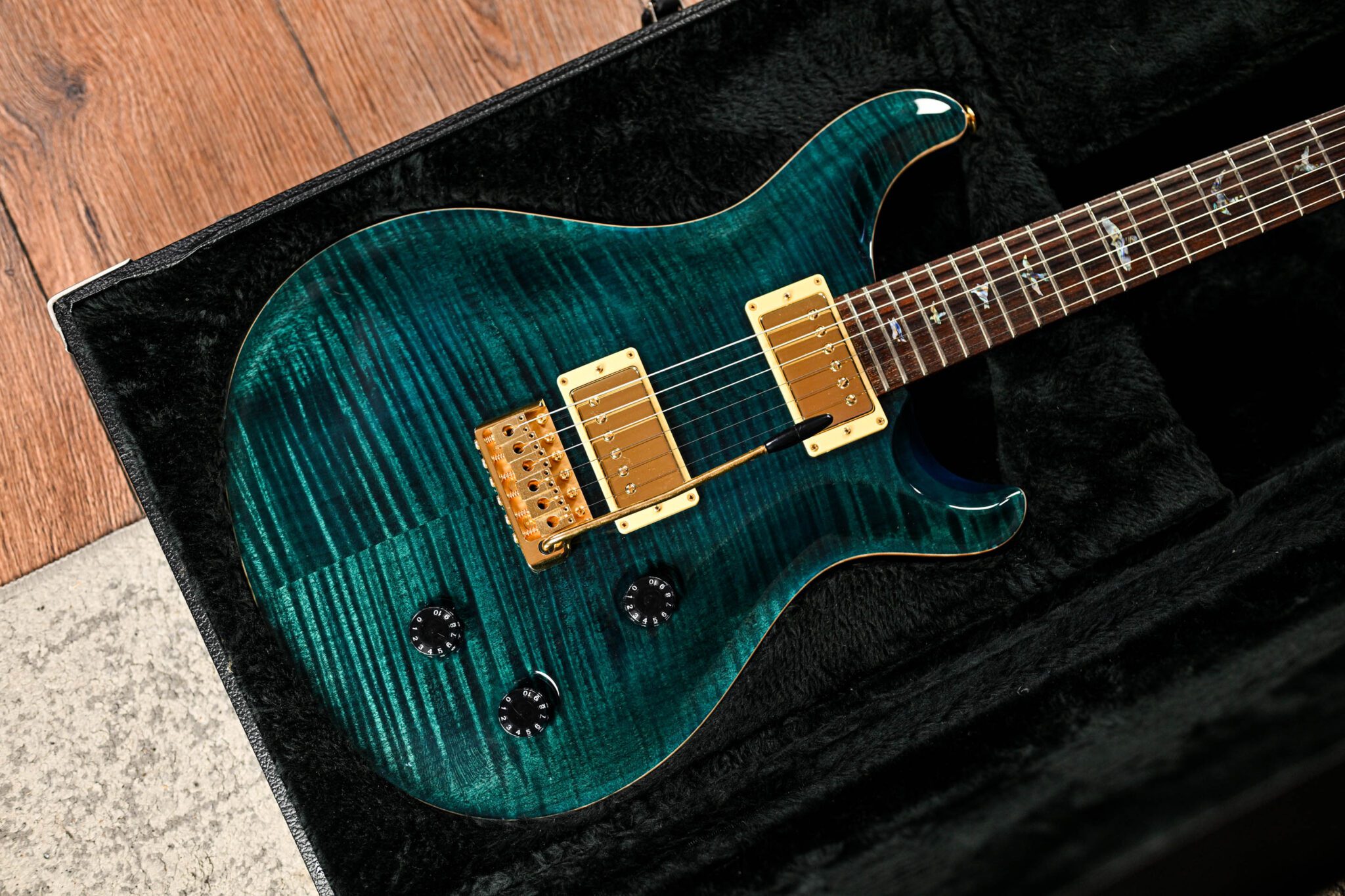 Hand crafted in the USA, this stunning PRS demonstrates how right this legendary guitar builder got it from the start! Featuring a seasoned mahogany body, stunning flame maple top and of course those full bird fretboard inlays and gold-plated hardware. The guitar doesn’t just look amazing it delivers in tone and playability like no other; the classic combination of mahogany, maple and rosewood, amazing Dragon II pickups and the world’s first non-locking trem you can divebomb and stay in tune and you have a powerful, versatile and tonefull guitar that has the playability that PRS top end guitars a legendary for!