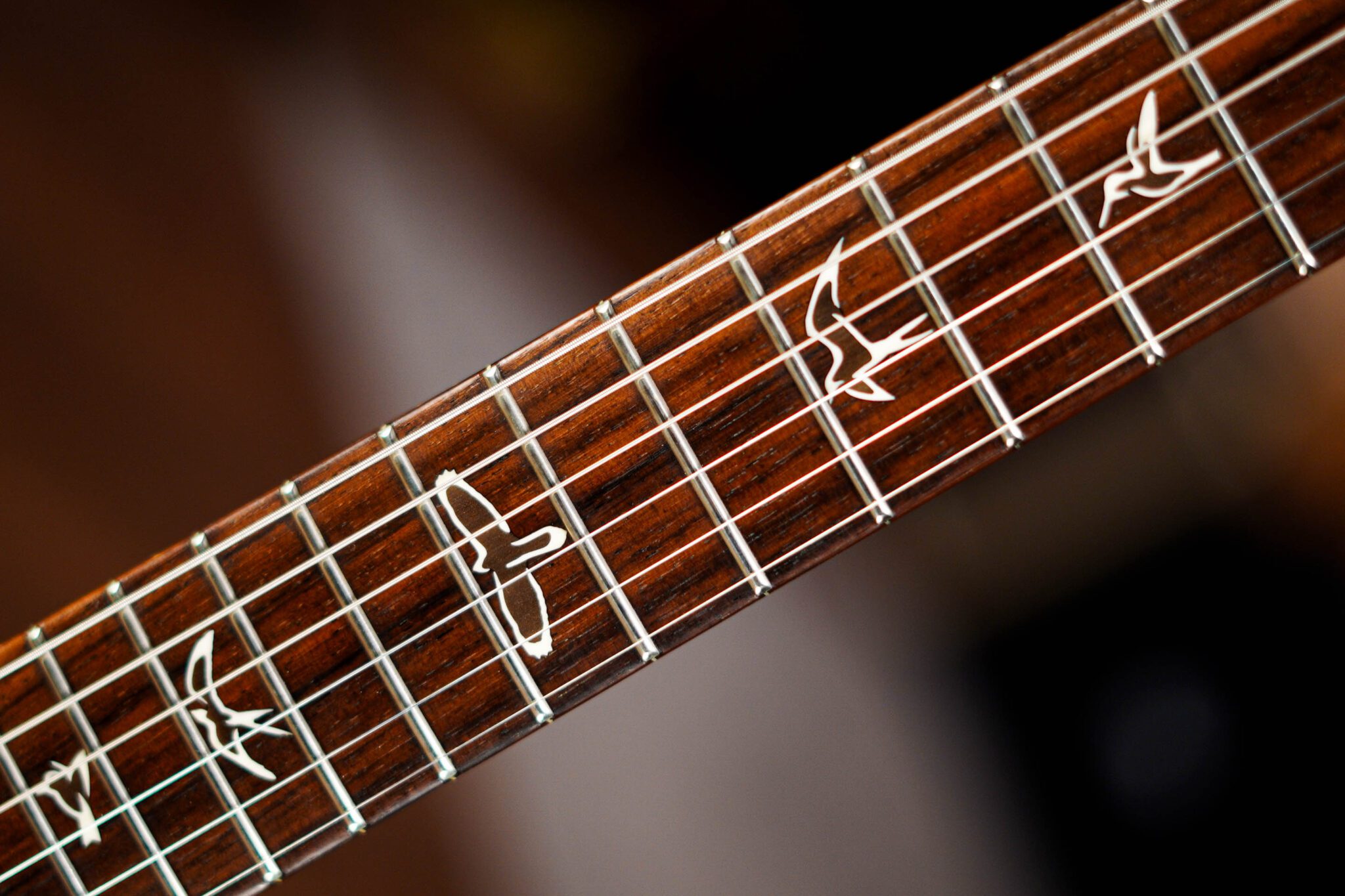 This stunning high end PRS features; bird inlays, stunning 10 top, hugely dynamic PRS humbuckers, amazing PRS tremolo system all put together by some of the finest craftsmen in the world. The guitar is totally stunning and represents what many consider the first ‘boutique’ guitar. With 24 frets and access to the highest frets this is a high-performance guitar that covers a huge tonal range with sustain, clarity and a huge array of sounds ensuring it gets the most out of any player.