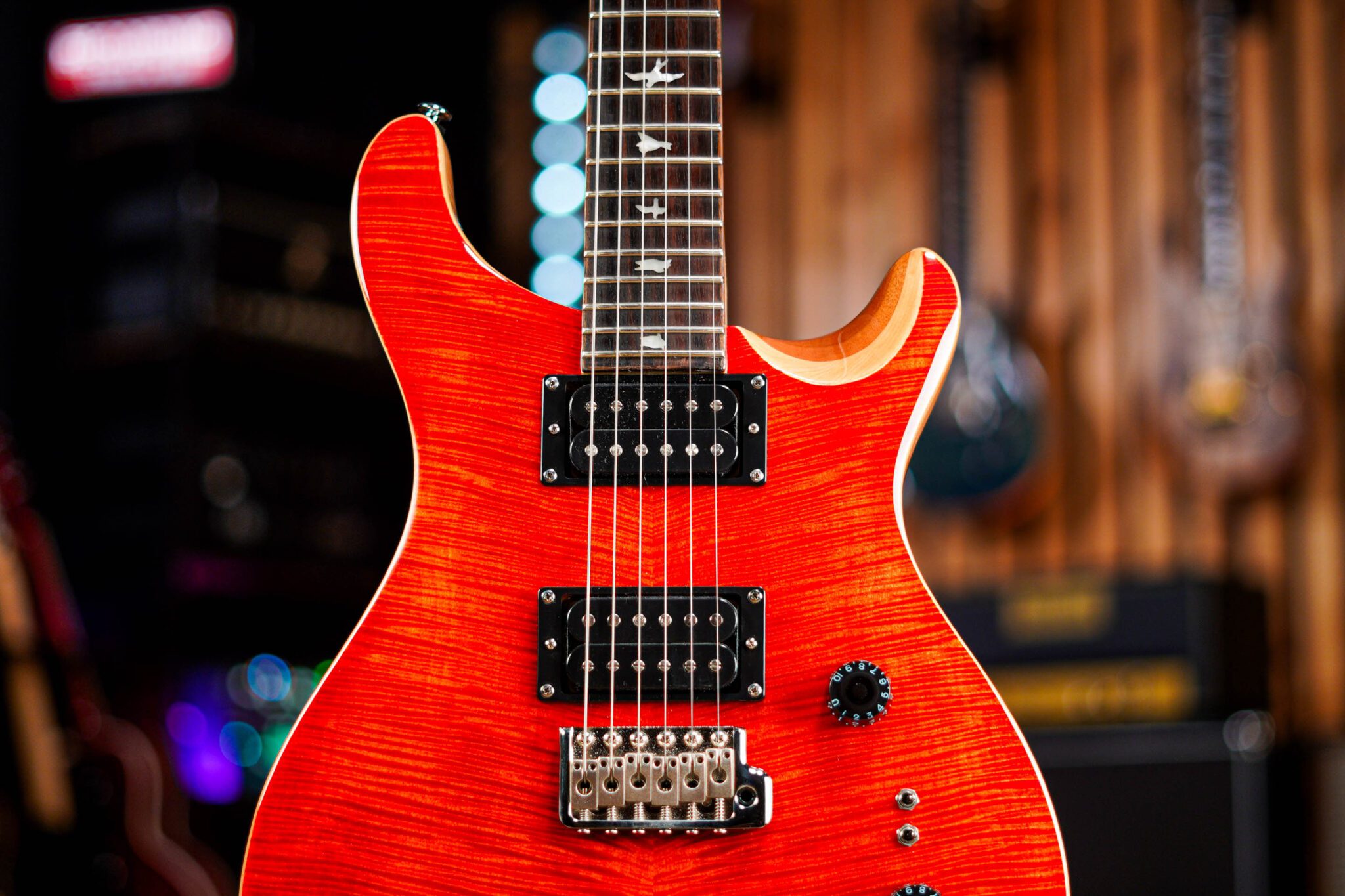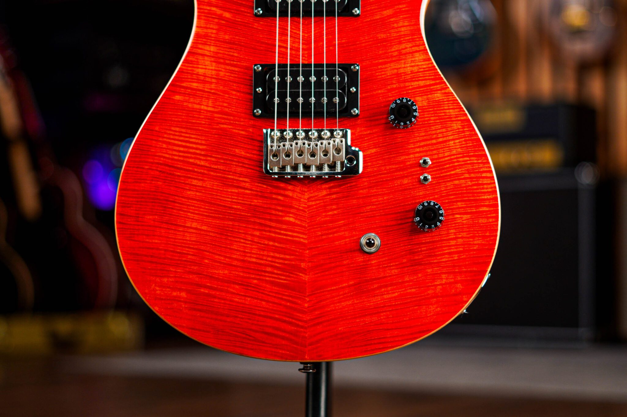 The Custom 24 is the quintessential PRS guitar and the one that started it all for PRS back in 1985. The SE Custom 24-08 keeps all the foundational specs of that instrument, while taking the Custom platform to new sonic territories. Just like the Core Series instrument, the SE Custom 24-08 features two mini-toggle coil tap switches that individually split the humbuckers into true single coils for a total of eight pickups configurations. Classic design elements include a maple top, mahogany back, rosewood fretboard, 24 frets, 25” scale length, bird inlays, signature headstock logo, and PRS patented tremolo.