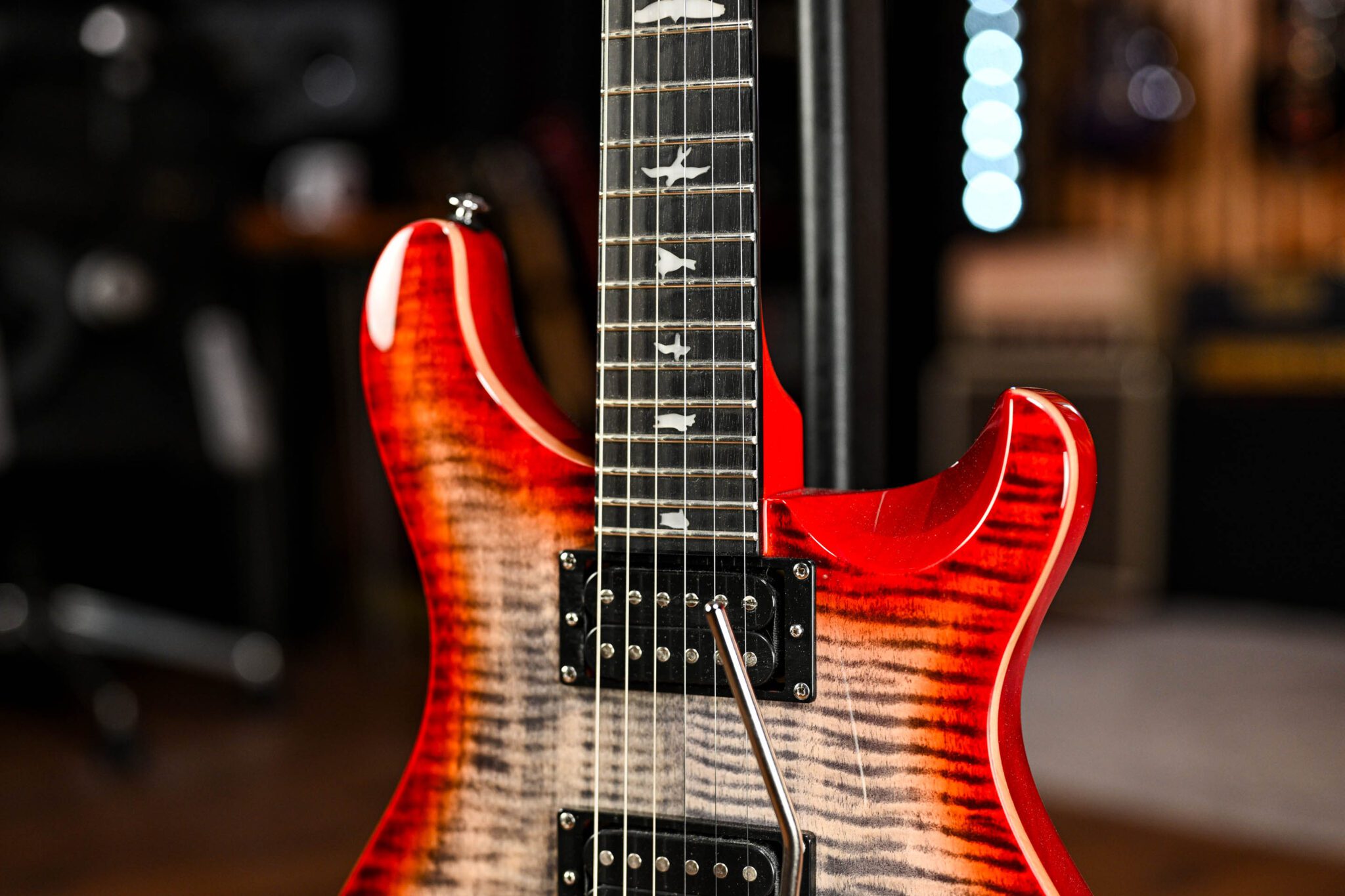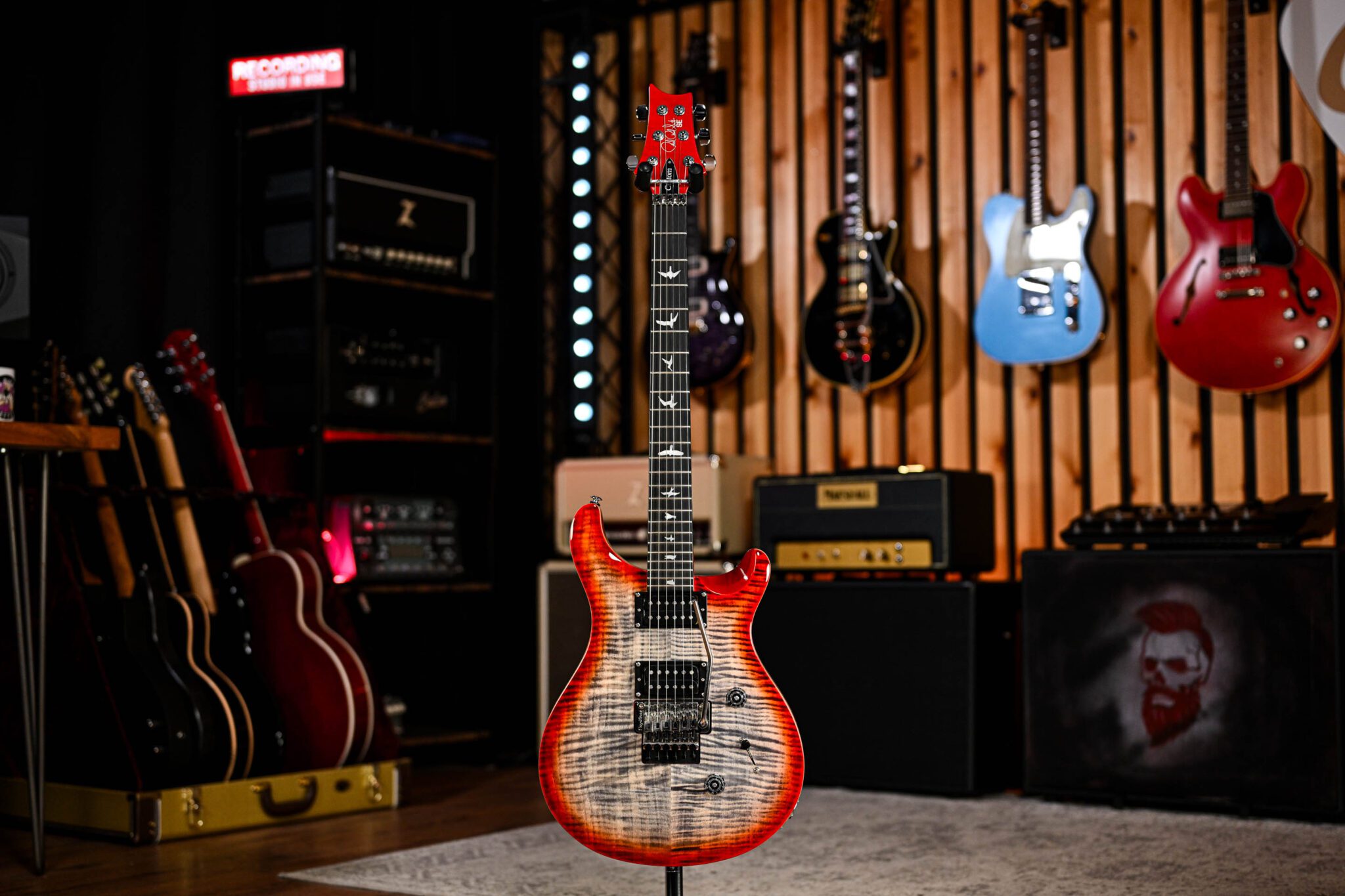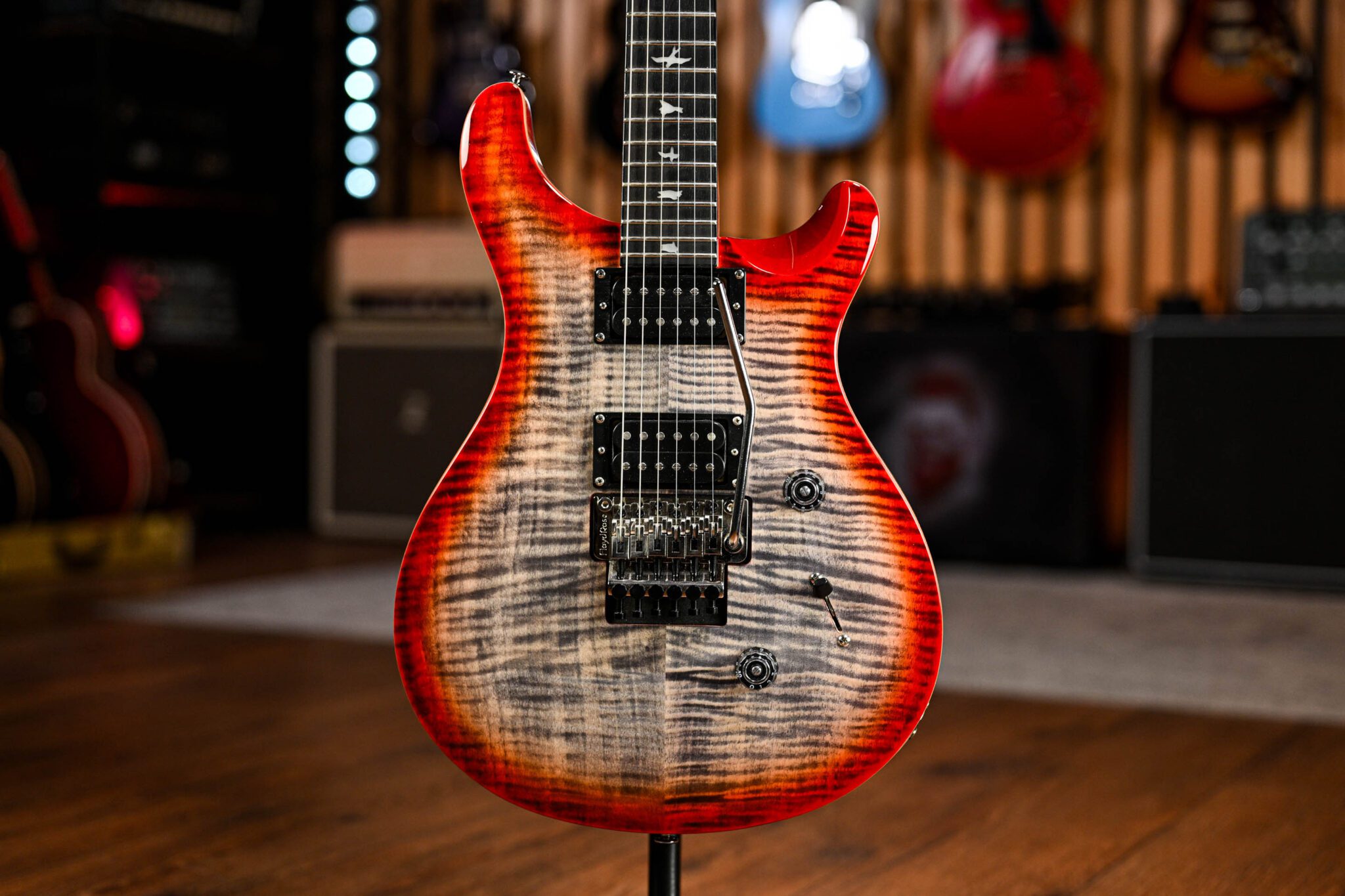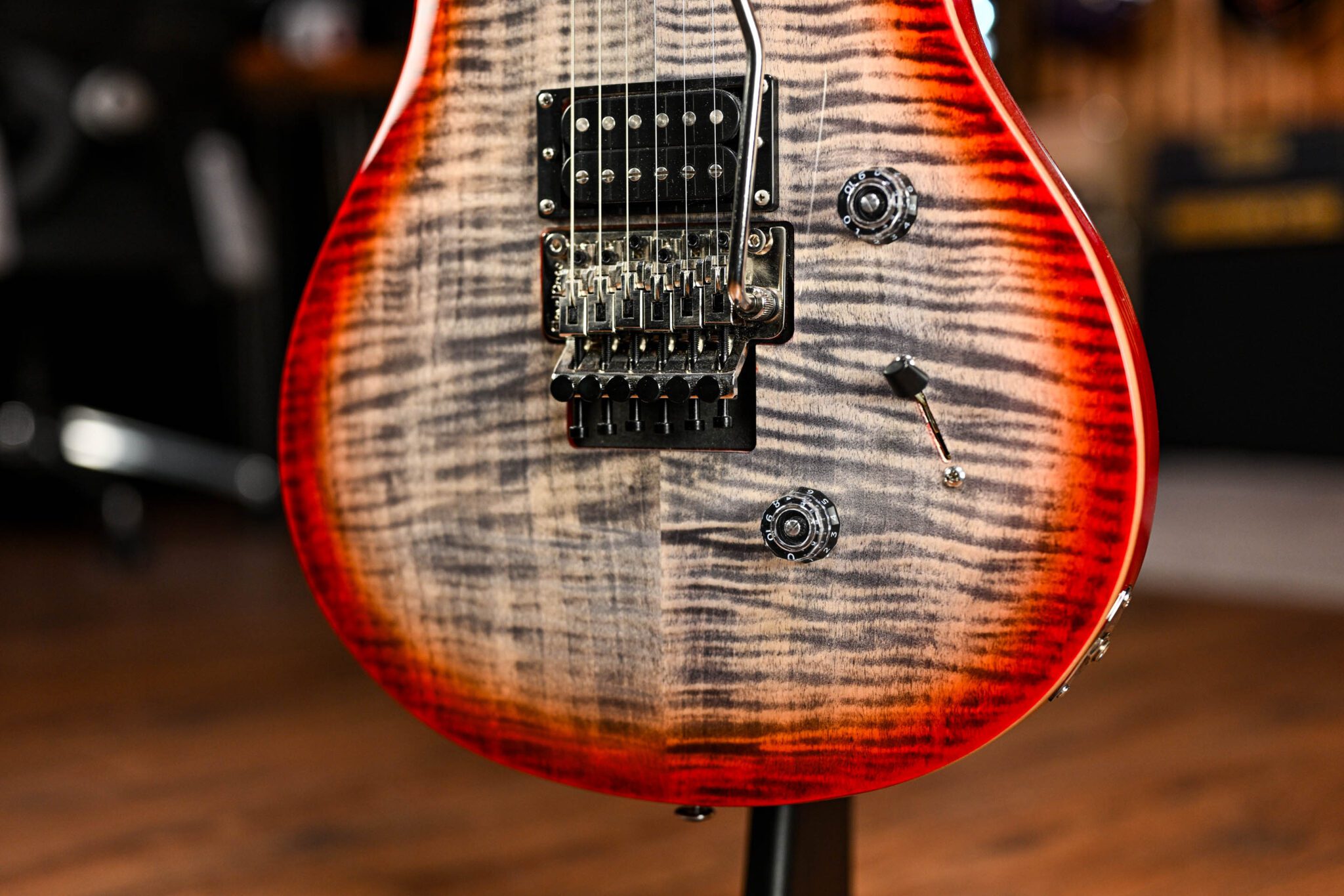 PRS make some of the most beautiful guitars in the world and they have continued that with this SE Custom 24 in Charcoal Cherry Burst. The SE Custom 24 is based on its now legendary American brother, with 24 frets, humbucking pickups with coil taps, and this time with a Floyd Rose locking tremolo system for your out of control divebombs! topped off with a set of powerful and dynamic PRS 85/15 S humbucking pickups this guitar is a rock machine with huge versatility, power and dynamics.