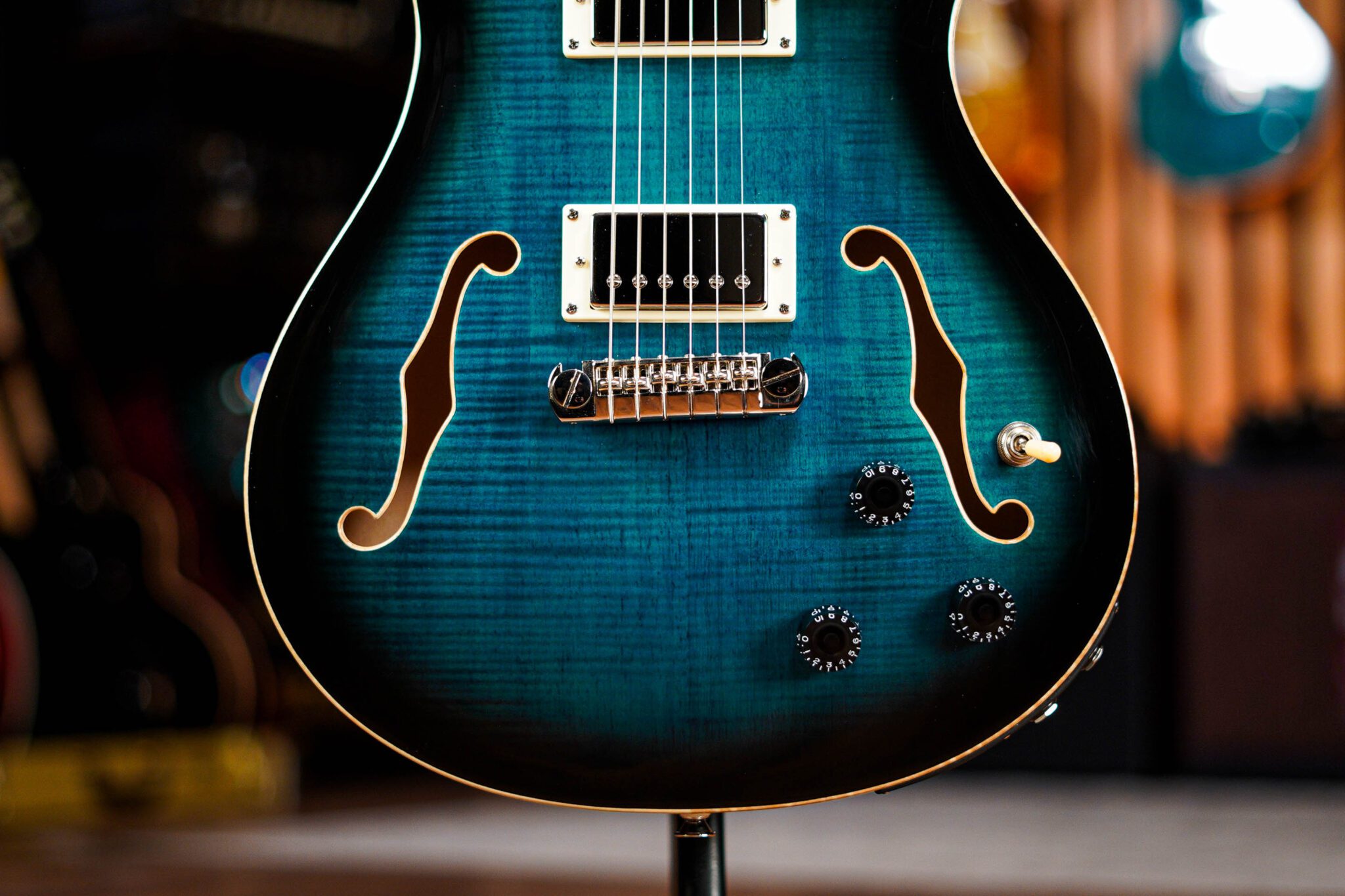 Drawing on the magic from the legendary original PRS hollowbody and putting it together in one stunning and hugely versatile package, this is one cool guitar! With its maple top, and back with a solid mahogany centre this guitar is perfectly weighted while the hollowbody design offers incredible resonance and sustain. Utilising two 58/15 “S” pickups and the LR Baggs piezo pickup system allowing players to plug into the “Mix/Piezo” jack and use the individual volume controls to blend the magnetic and piezo’s acoustic tones for a spectacular array of sounds, add in some upgraded locking tuners and this one awesome guitar!