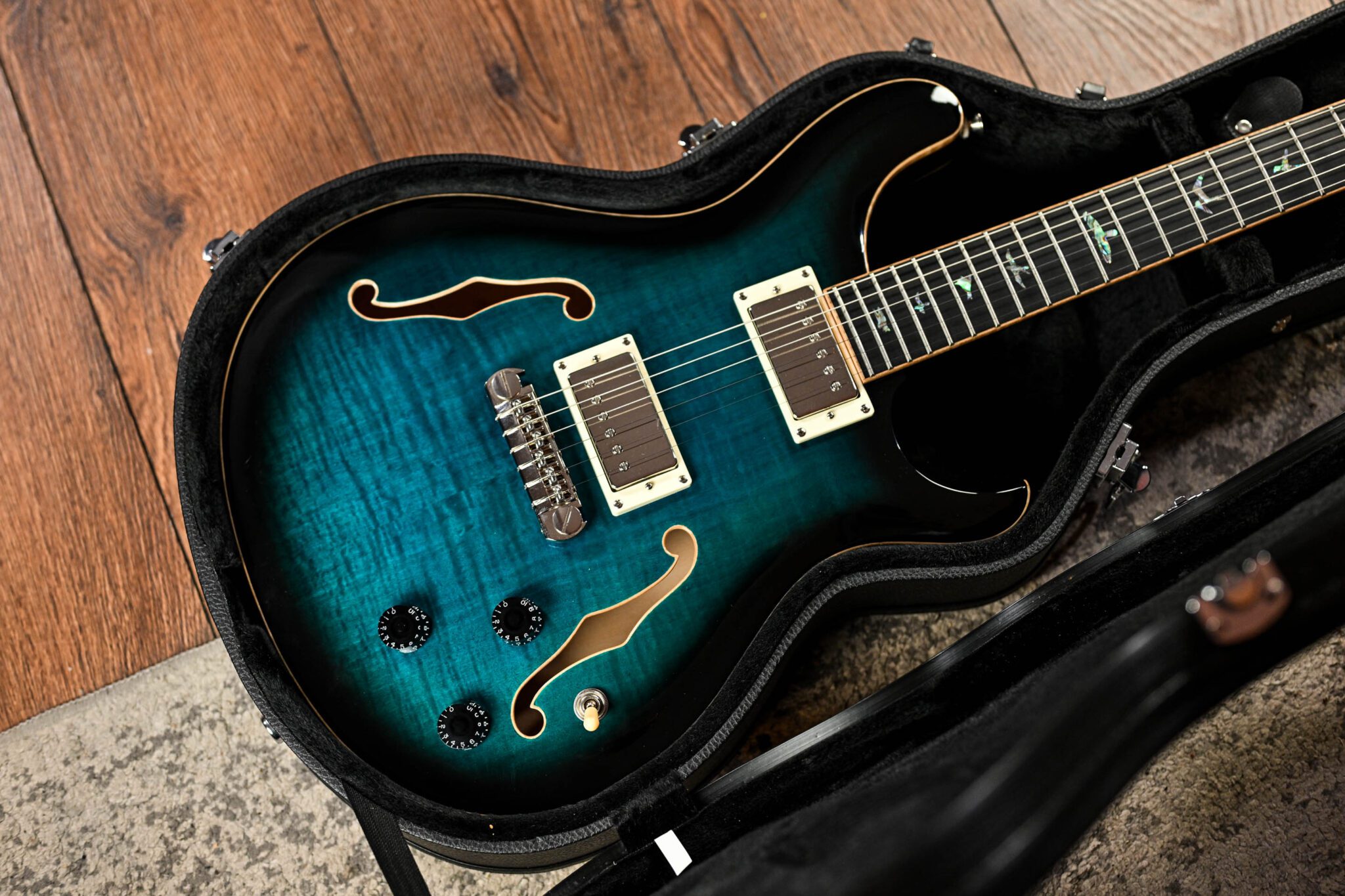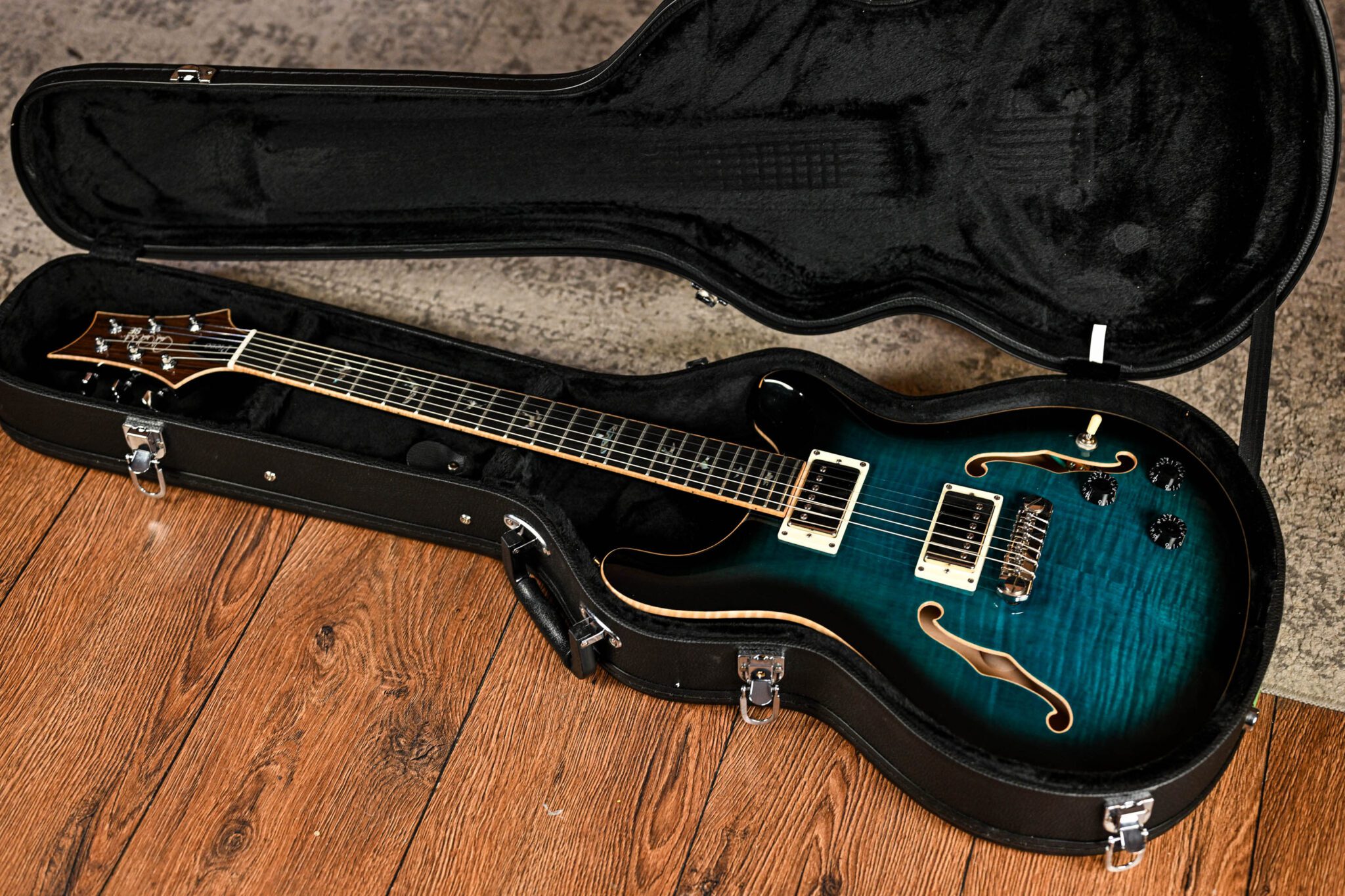 Drawing on the magic from the legendary original PRS hollowbody and putting it together in one stunning and hugely versatile package, this is one cool guitar! With its maple top, and back with a solid mahogany centre this guitar is perfectly weighted while the hollowbody design offers incredible resonance and sustain. Utilising two 58/15 “S” pickups and the LR Baggs piezo pickup system allowing players to plug into the “Mix/Piezo” jack and use the individual volume controls to blend the magnetic and piezo’s acoustic tones for a spectacular array of sounds.