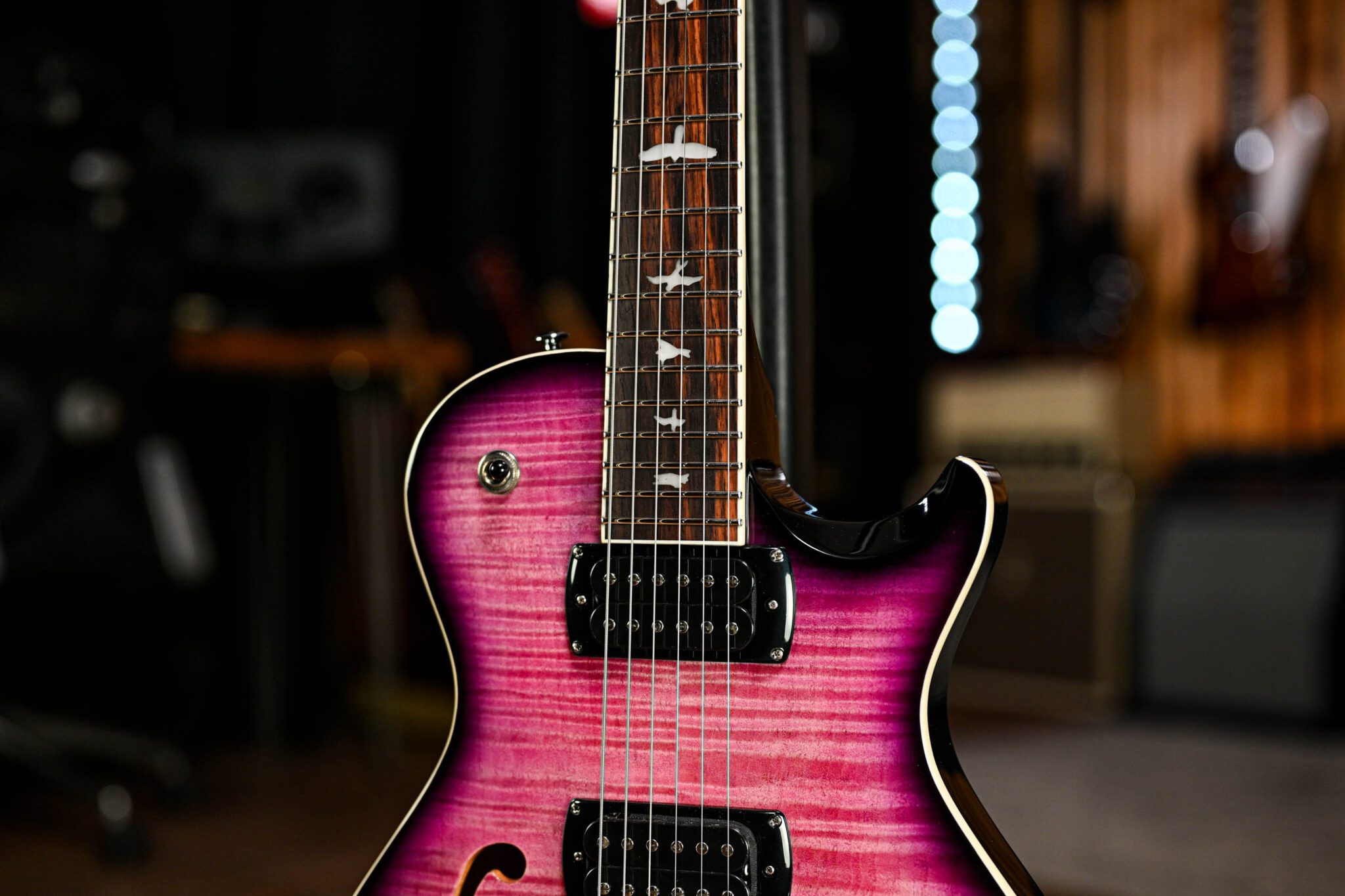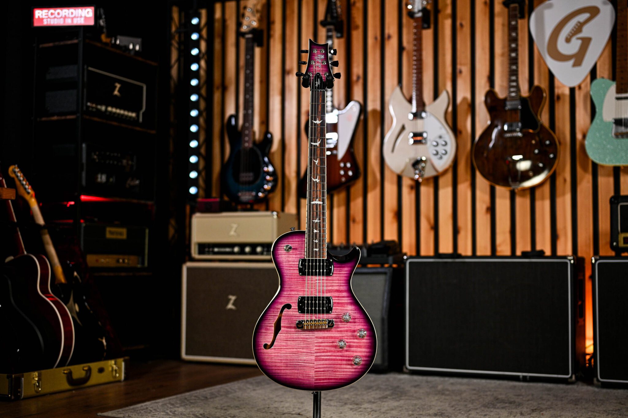 The PRS SE Zach Myers is packed with features that will satisfy the most demanding musicians. Featuring a chambered body, maple top with flame maple veneer, tone is delivered via the quality build and excellent PRS 245 pickups serving up smooth mid-range tones highlighted with a natural internal reverb and resonance.