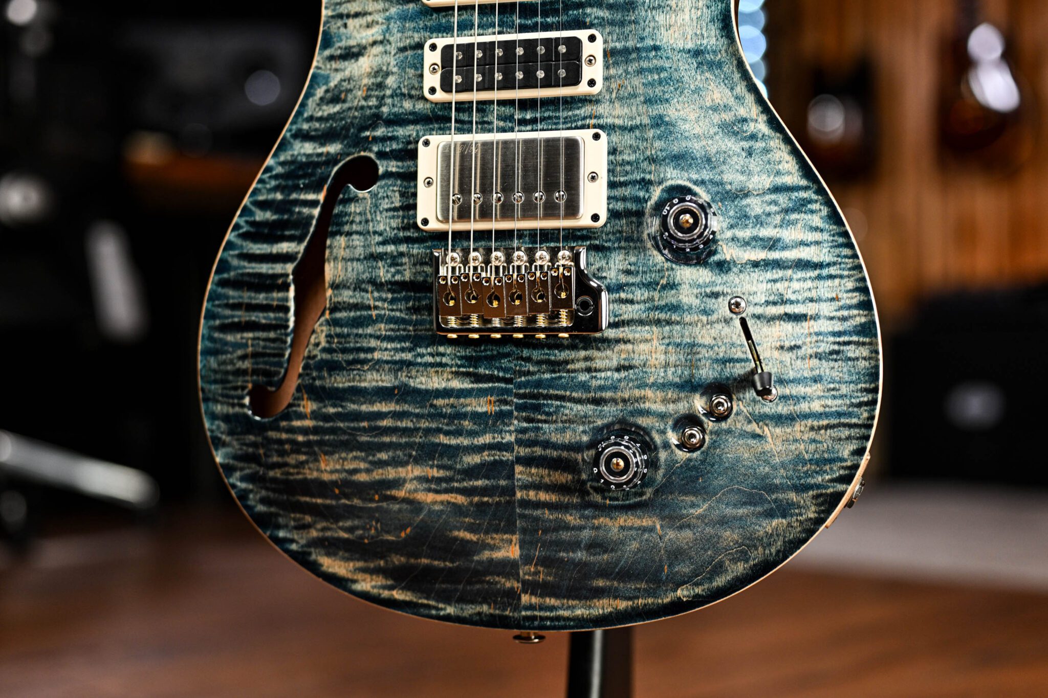 Featuring a stunning flame maple Faded Whale Blue top, the Special Semi-Hollow is an inspiration to play from the first strum. Intonated the entire length of the neck, feeling like a guitar you’ve played forever; from rich, authentic humbucking tones or nuanced, sweet single-coil sounds. The Special Semi-Hollow can seamlessly master huge sonic territories thanks to its 58/15 LT humcbuckers & PRS Narrowfield pickup mixed with the 5 way switch and mini toggle controls making this an ultimate tone machine. Faultless build, and perfect design!