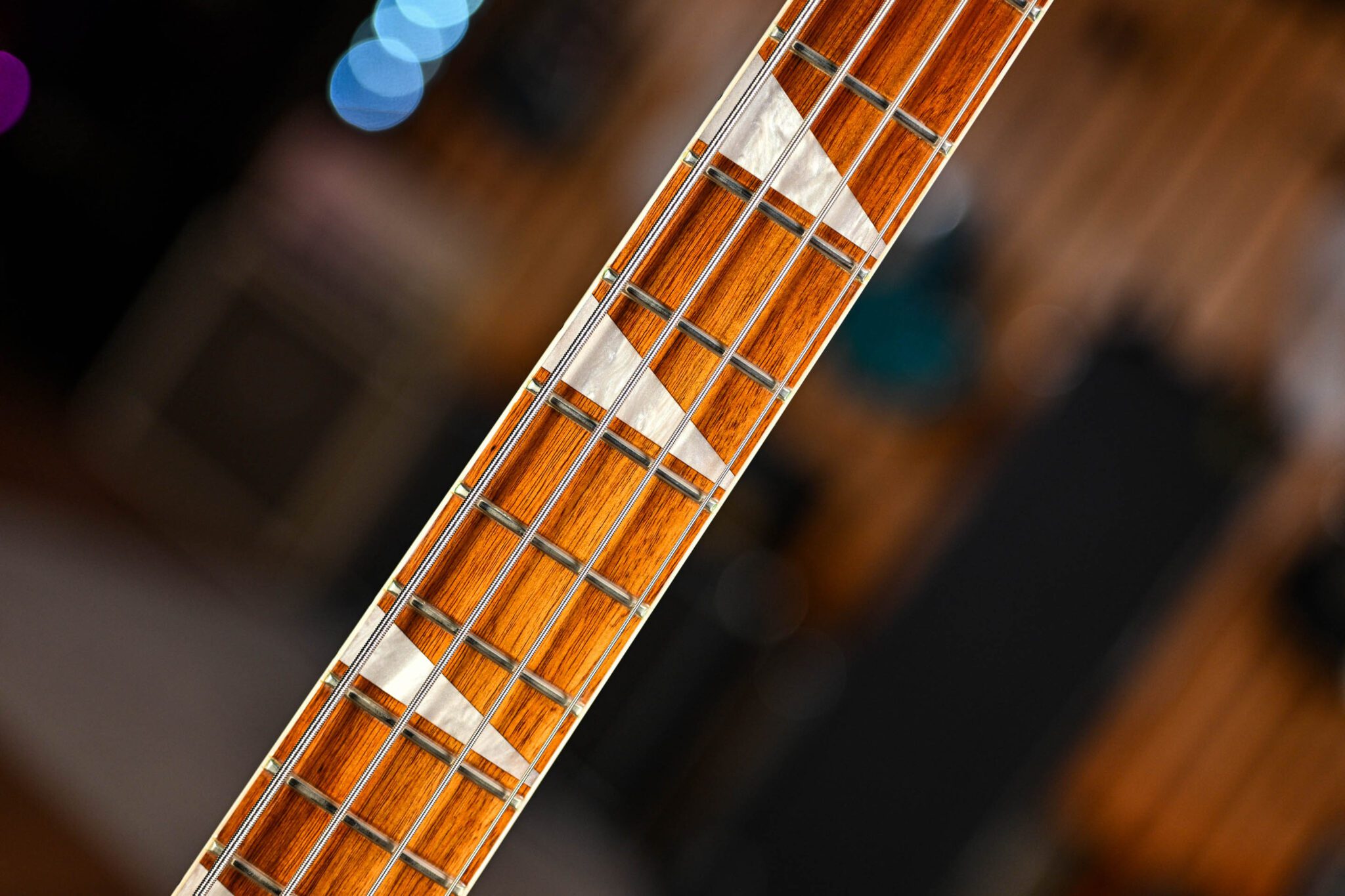 Famous for its ringing sustain, treble punch and solid underlying bass tones. Stunning unmistakable looks, set this bass aside, with subtle binding, elegantly curved body, and the rosewood fingerboard with triangle inlays, this is a very special bass in a league of its own!