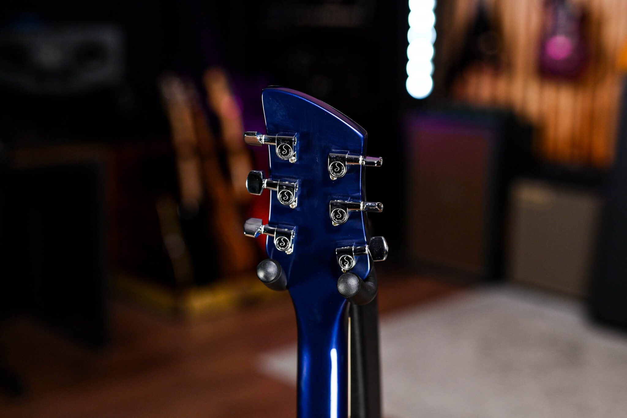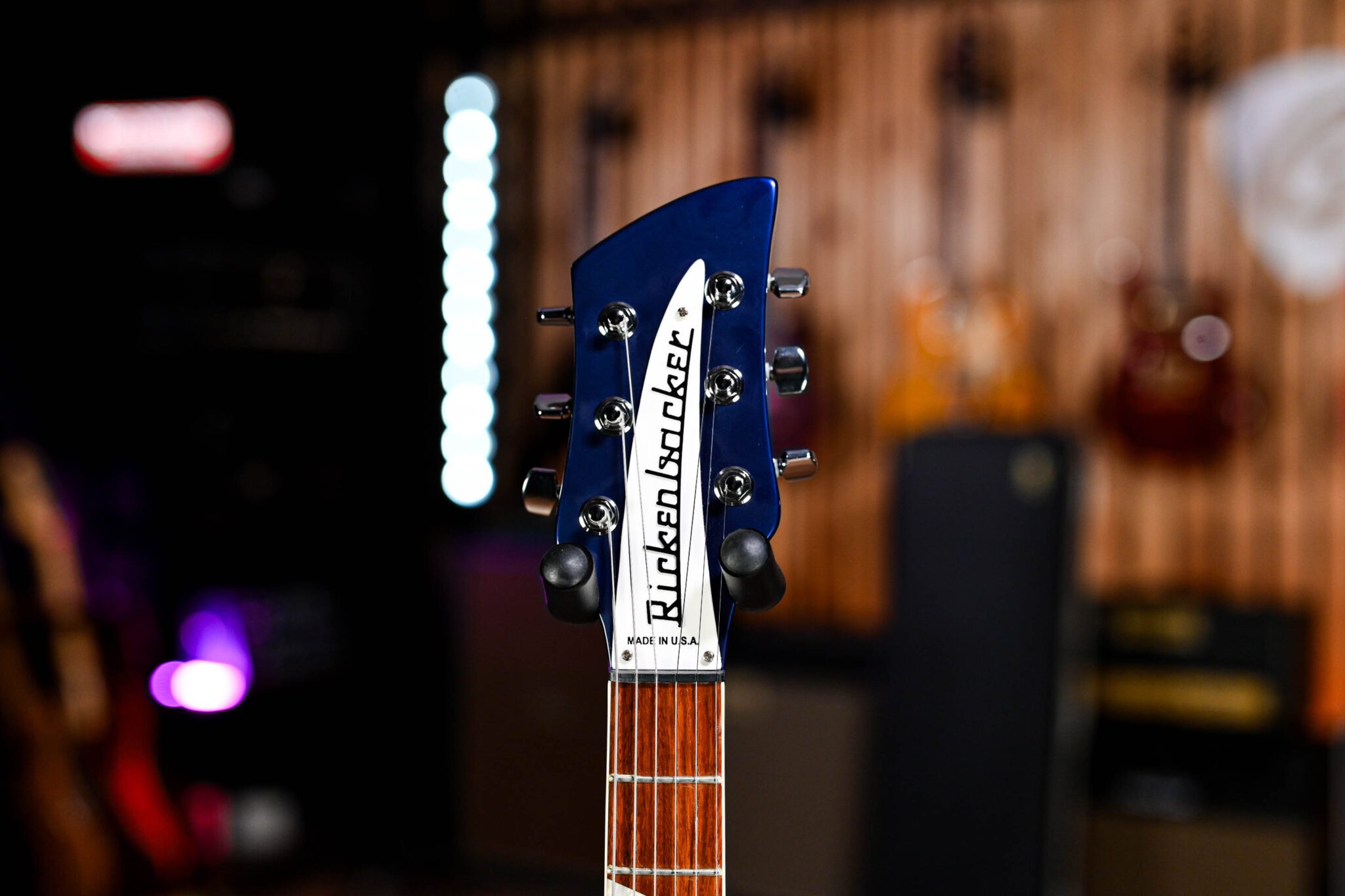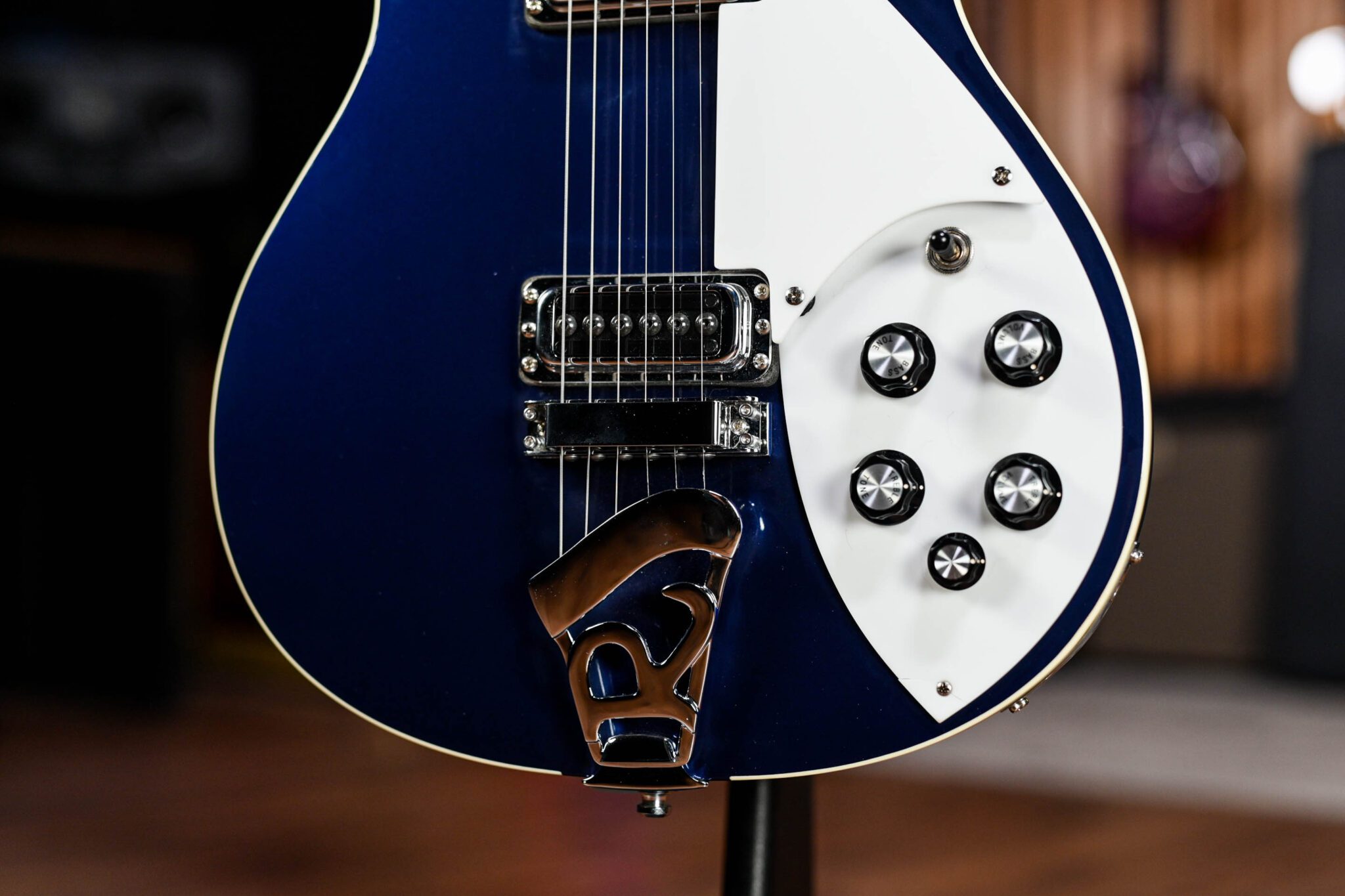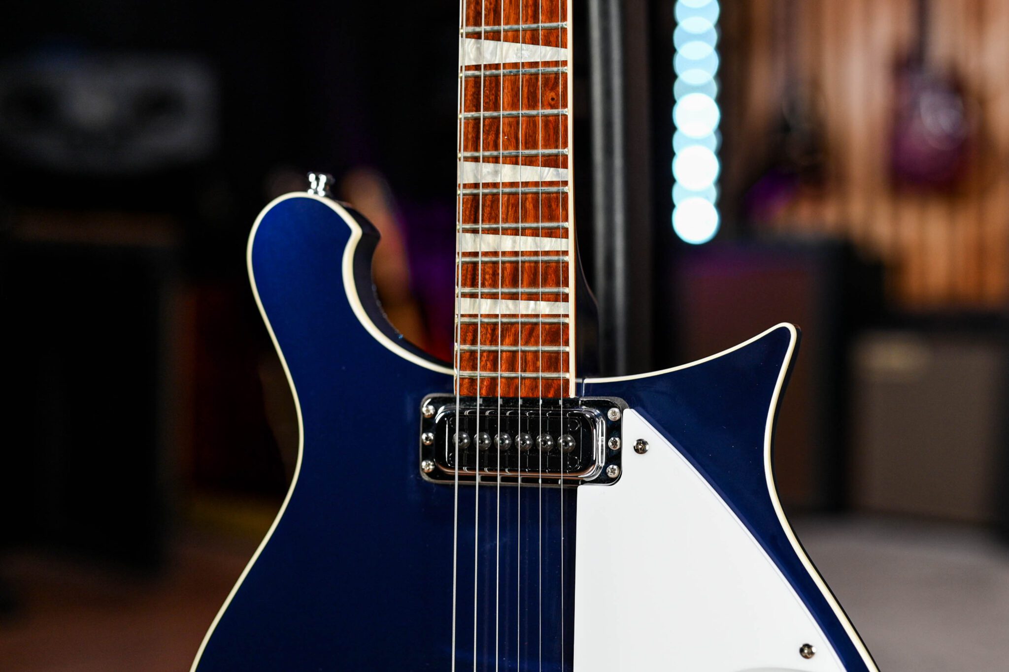Featuring a maple through neck maple body construction and two Rickenbacker high gain single coil pickups this guitar has an extremely impressive snappy attack with sizzling highs and firm lows the brand is known for and with the stereo outputs can drive two amps at once for a full 3D stereo sound. Presented in stunning Midnight Blue with the contrasting Rickenbacker tailpiece and pearliod triangle fretboard markers you’re in no doubt you are playing a unique and high-end Rickenbacker.