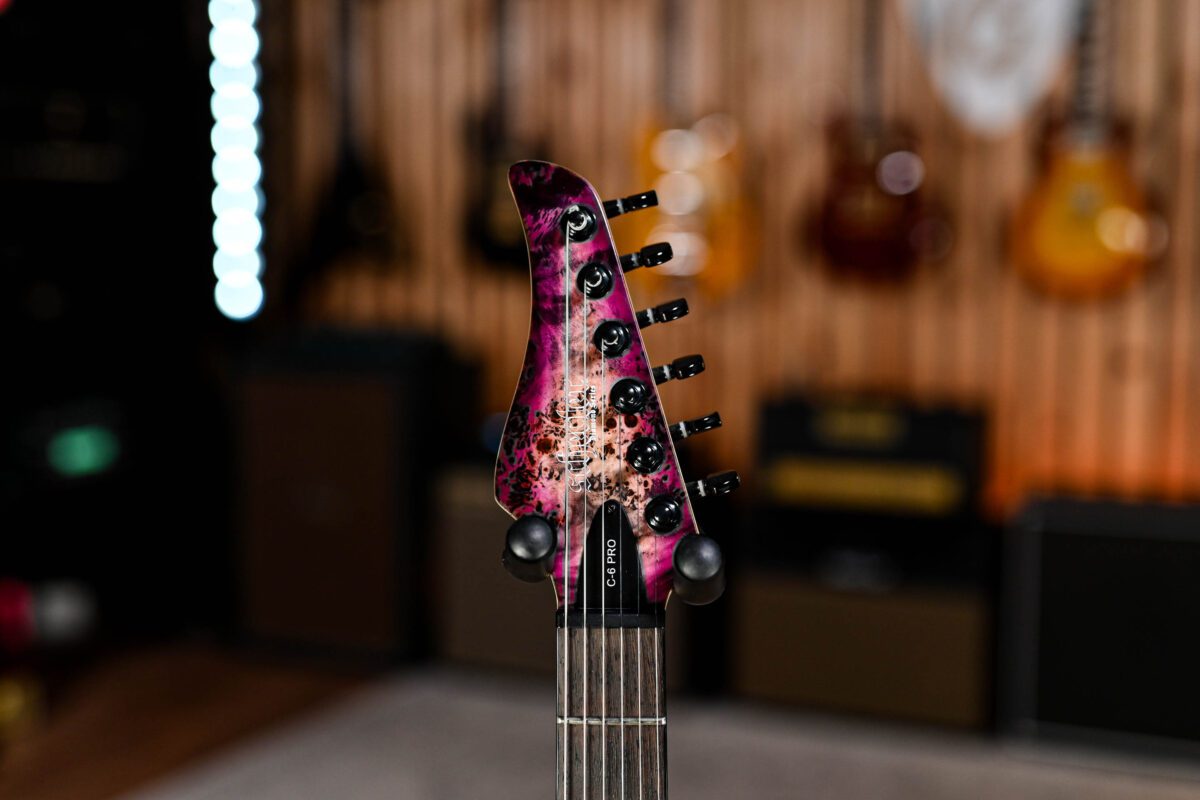 This guitar is all about sleek looks and powerful performance. The poplar burl top over a solid mahogany body gives you rich resonance and a sharp visual edge, while the Schecter Diamond pickups crank out everything from tight, aggressive riffs to smooth, searing leads. Whether you’re ripping solos or laying down heavy rhythm tracks, the C-6 Pro is built to perform.