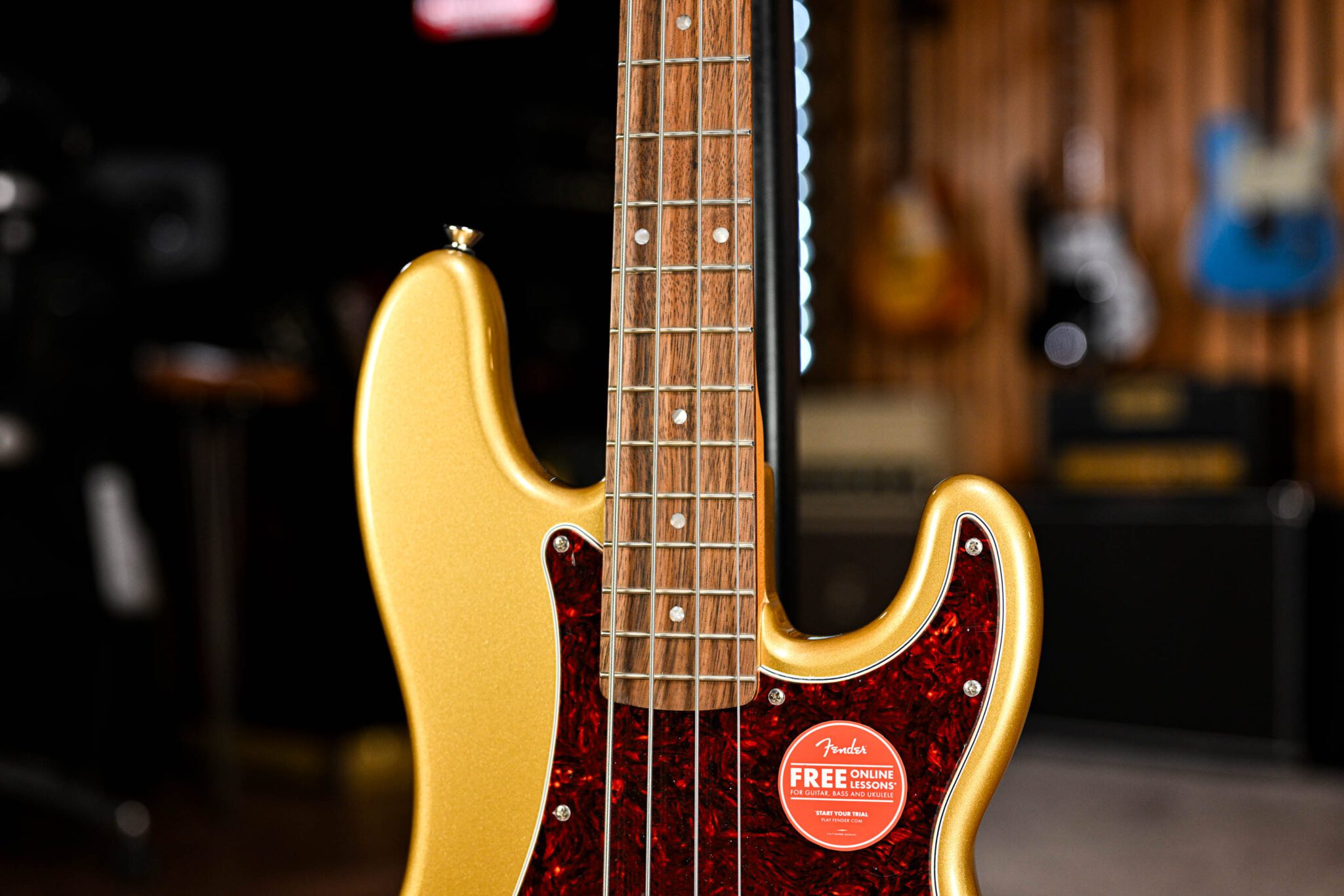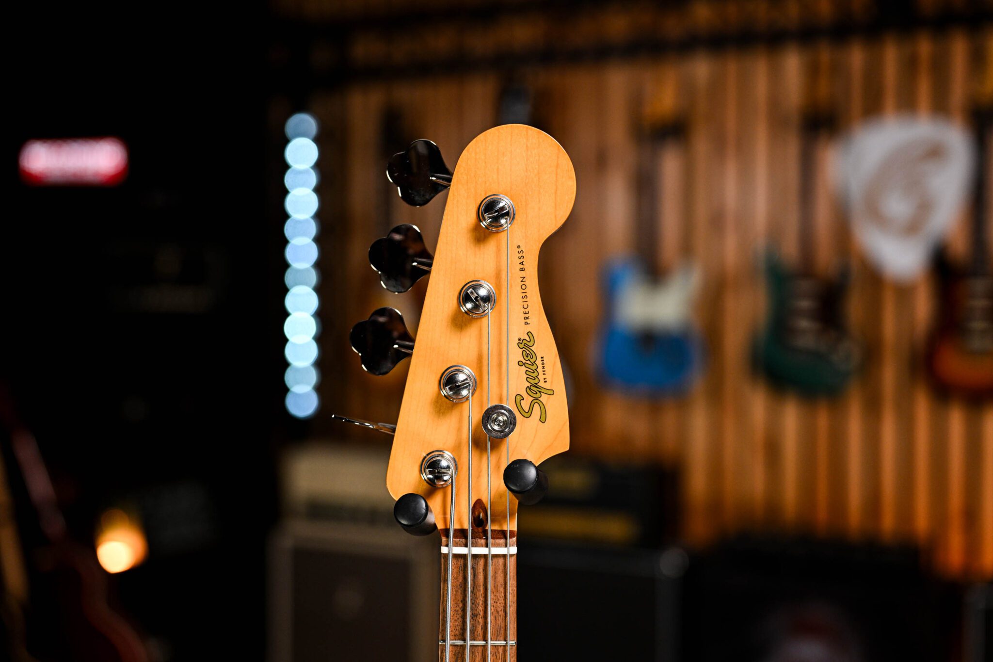 A tribute to the decade that made the P Bass an icon, the Classic Vibe ’60s Precision Bass embodies the aesthetics of the original and produces massive tone courtesy of its Fender-Designed alnico split-coil pickup. Player-friendly features include a slim, comfortable “C”-shaped neck profile with an easy-playing 9.5″-radius fingerboard and narrow-tall frets, as well as a vintage-style bridge with threaded saddles. This throwback Squier model also features 1960s-inspired headstock markings, rich-looking nickel-plated hardware and a slick vintage-tint gloss neck finish for an old-school vibe.