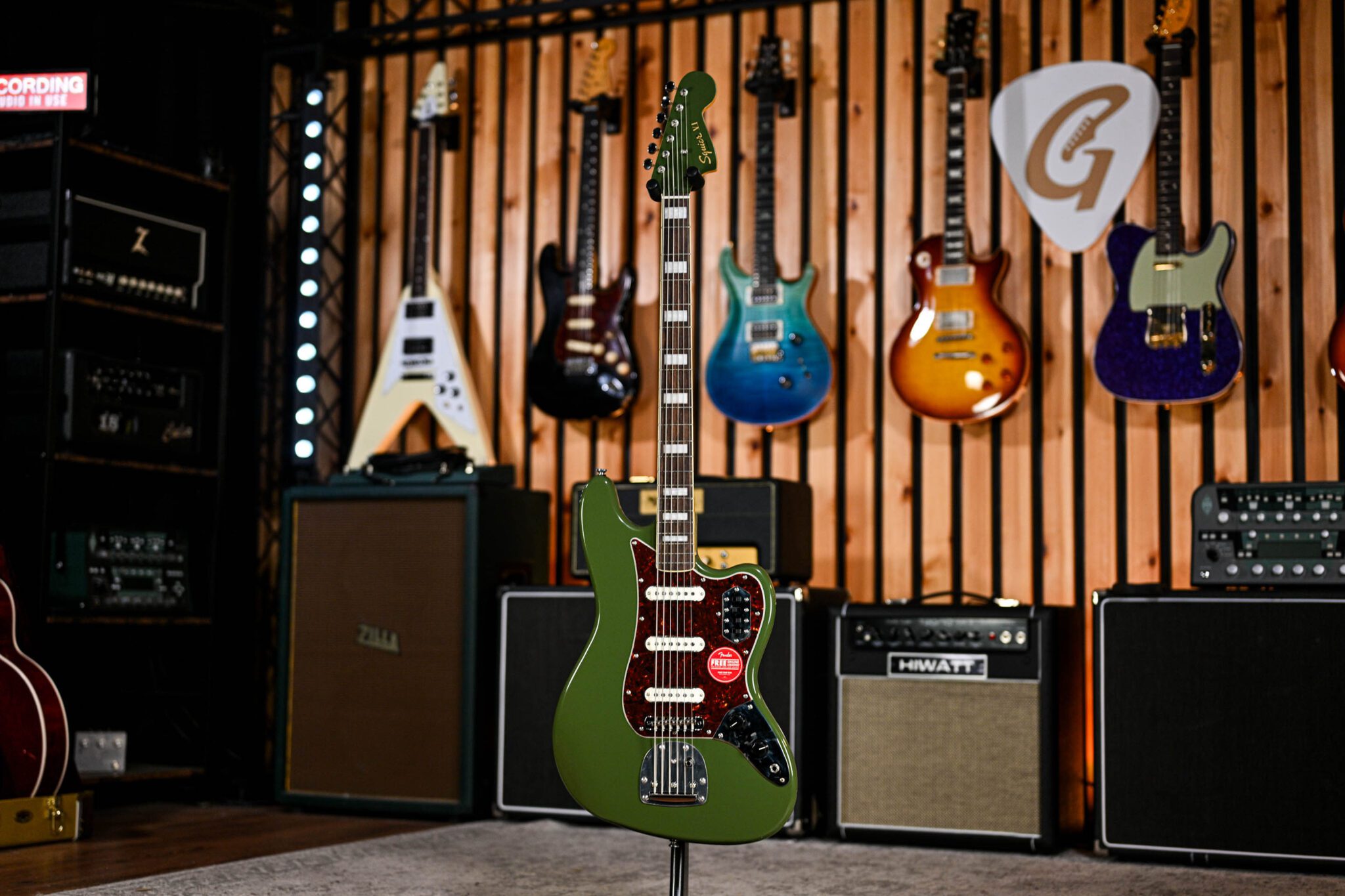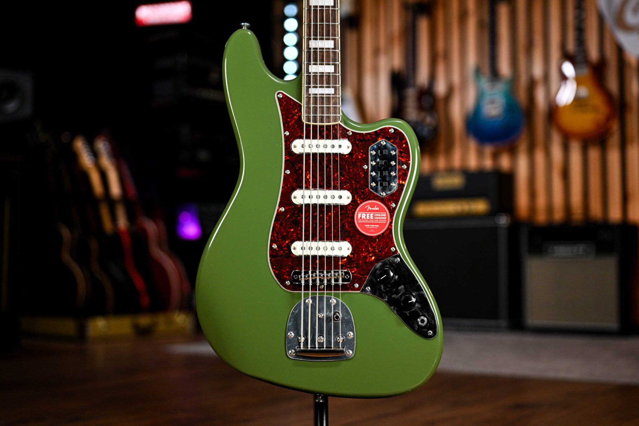 Back in the 60s when the Bass VI was first produced, it quickly found a home in studios and live settings. Being tuned an octave lower than a guitar, it does a great job at filling a particular audio space in the mix and therefore thickening up the overall sound. The Squier Classic Vibe model pays homage to the original and at a very attractive price point. Block inlays and a tortoiseshell pickguard keep with the retro vibes while a comfortable C shape neck makes playing a joy. The floating vibrato keeps things interesting and Fender Designed pickups create all the tone you need.
