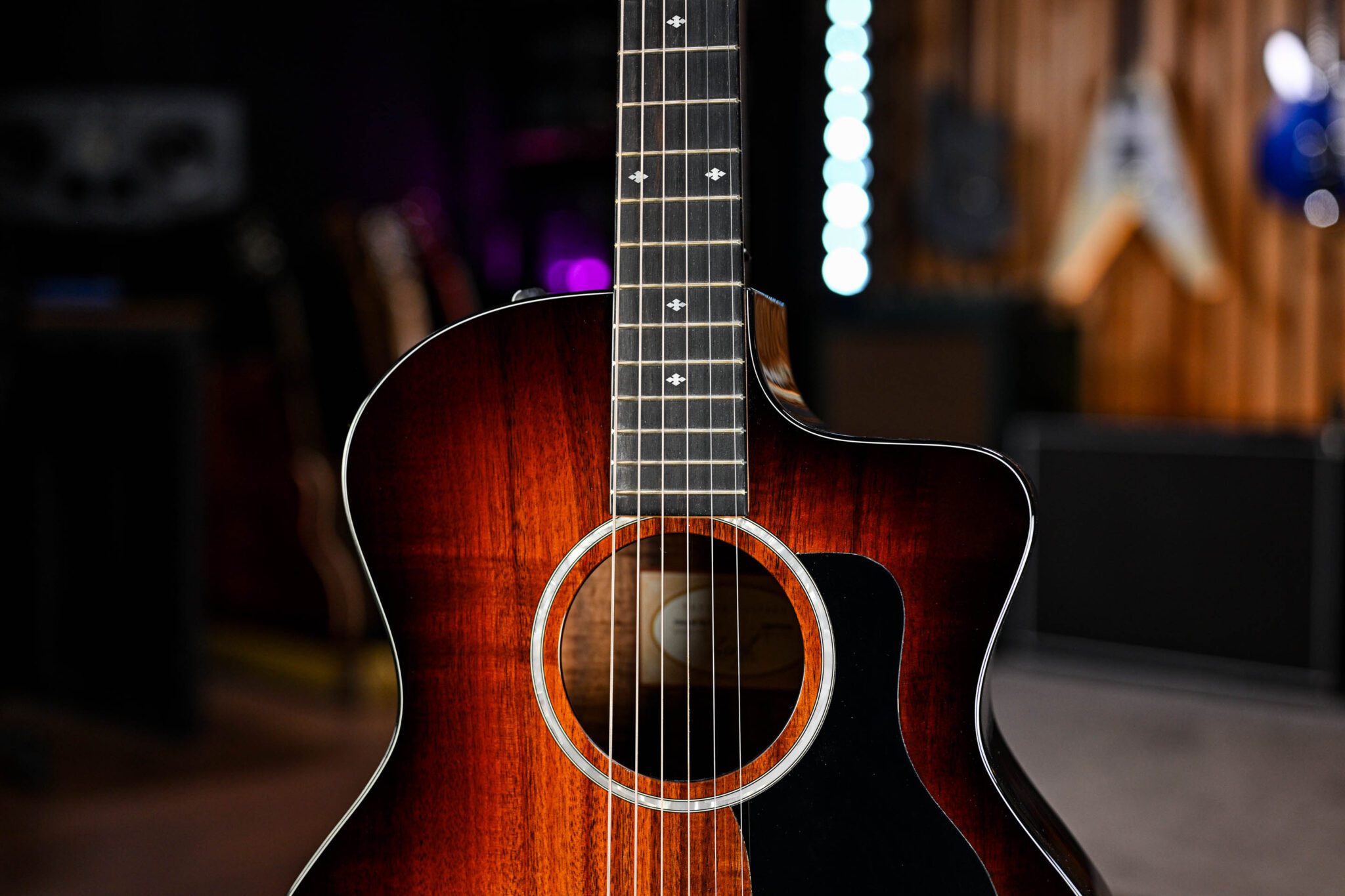 The Grand Auditorium design is one of Taylor’s most popular and versatile body shapes due to producing an original acoustic voice that is big enough to handle medium strength picking and heavier strumming. It features an impressive balance and clarity across the tonal spectrum, with the venetian cutaway creates not only a visually stunning look but access to the upper frets for acoustic guitar wizardry! Bring in the amazing individually calibrated Expression System preamp system and you have an amazing, amplified tone in any situation.