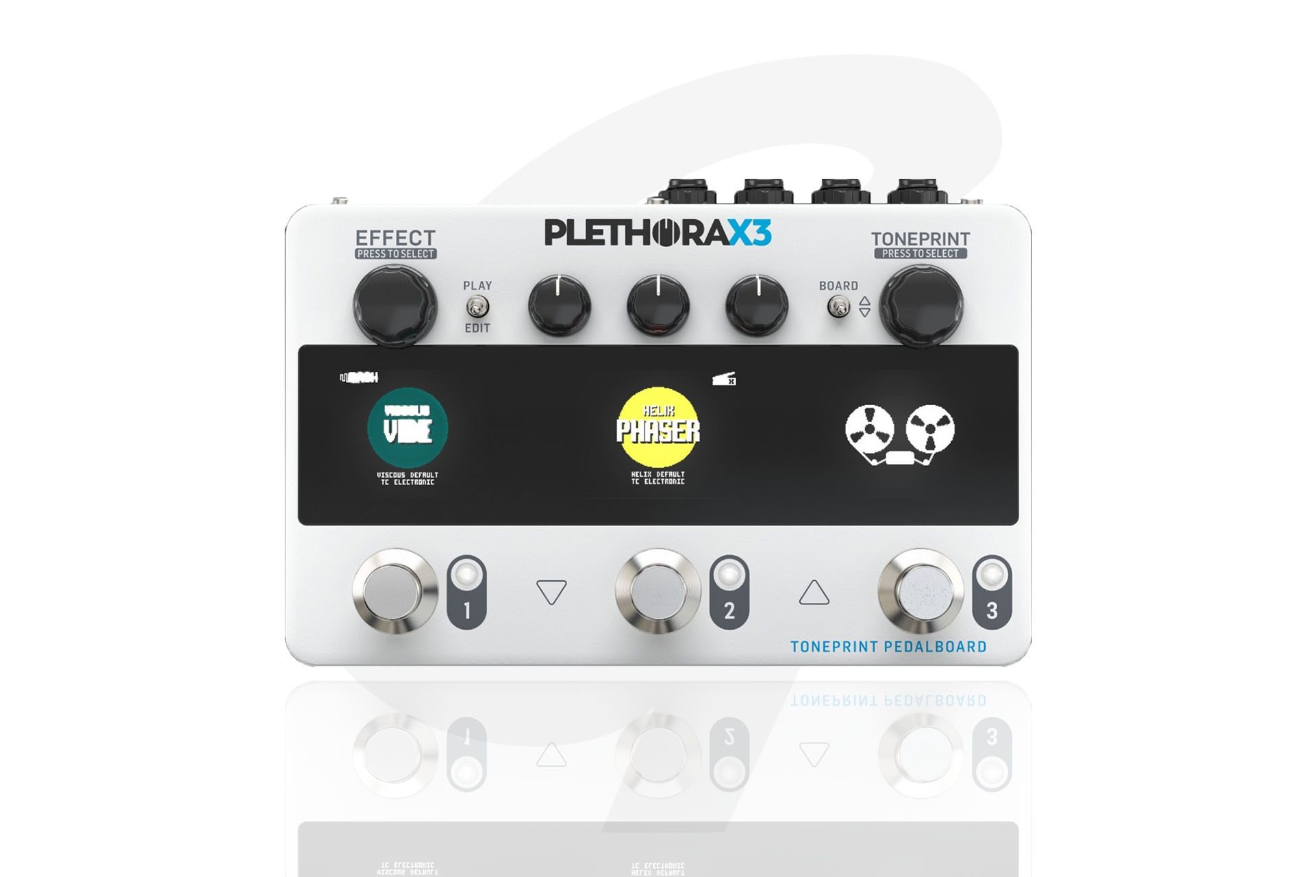 The TC Electronic Plethora X3 is a multi-effects pedal that allows you to create custom pedalboards with three slots for your favourite TC pedals. This digital all-in-one pedalboard simulator allows you to save and load up to 127 custom boards with three TonePrint pedals in any order you need. The TonePrint system provides deep customisation and preset loading/storage from your phone. Load presets designed by your favourite guitarists, or dive deeply into any pedal to create the exact effect you need on the Plethora X3.